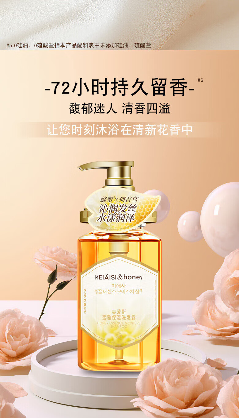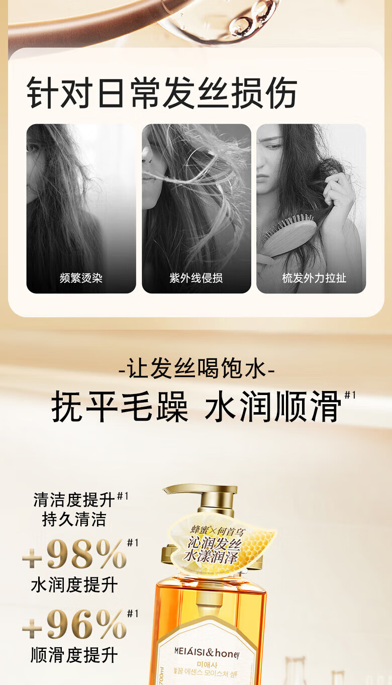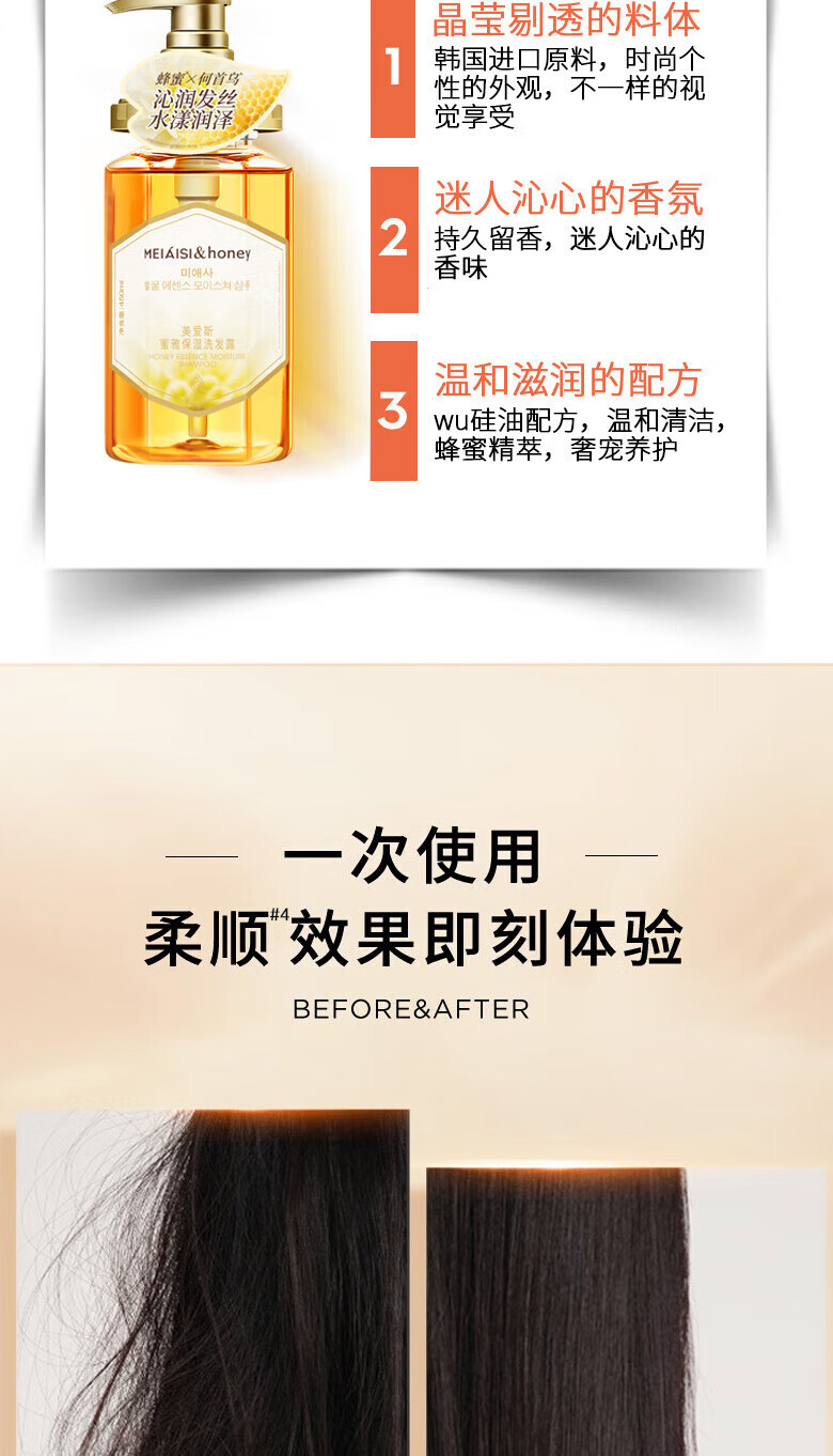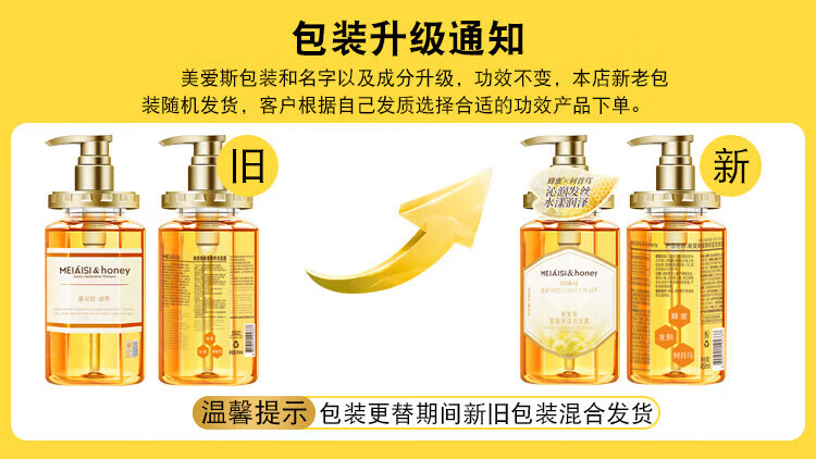 美爱斯蜂蜜洗发水氨基酸去屑蓬松洗头膏生姜滋养水润无硅油洗发露 蜜雅去屑洗发水+蜜雅保湿洗发水 两瓶共1400ml