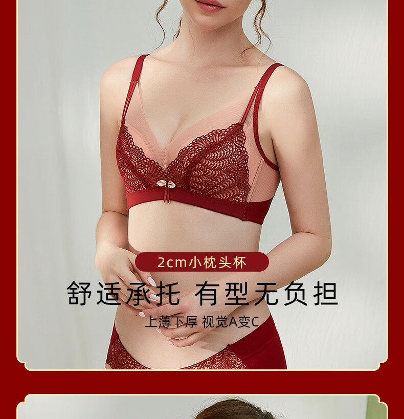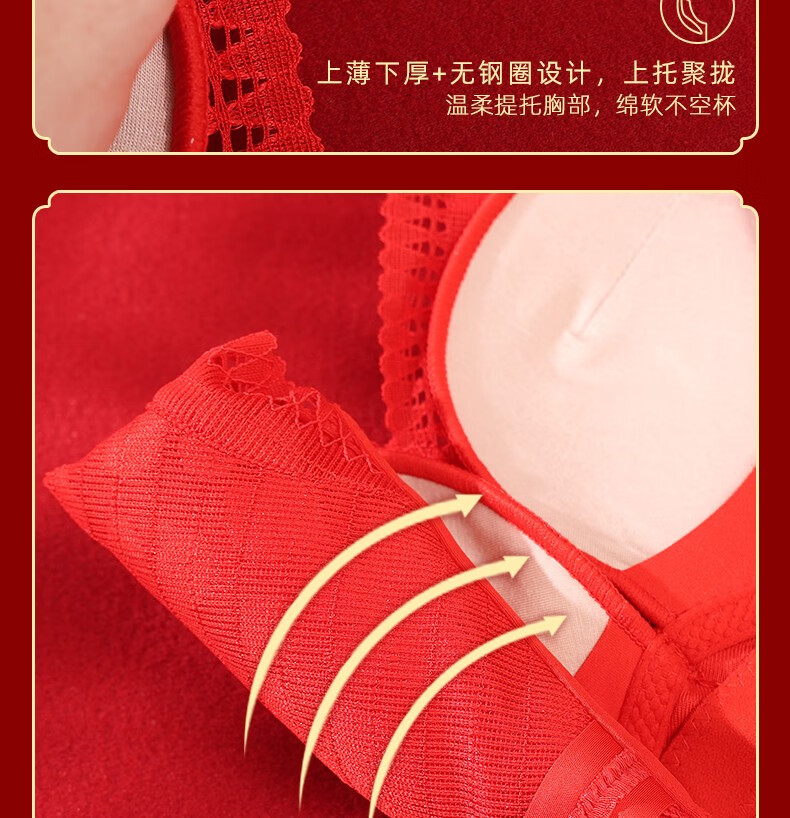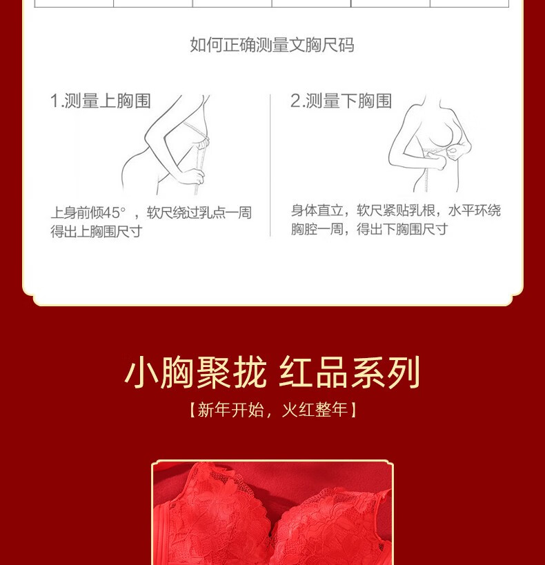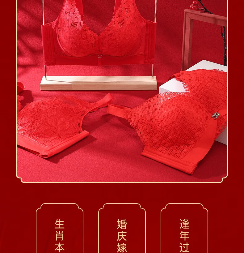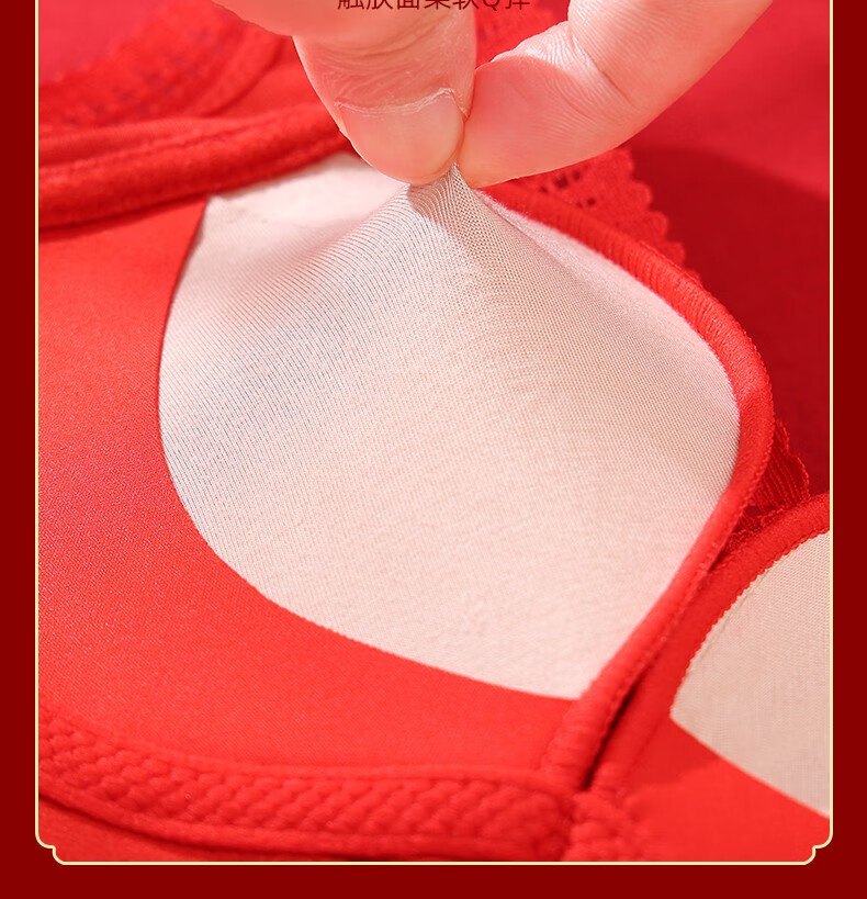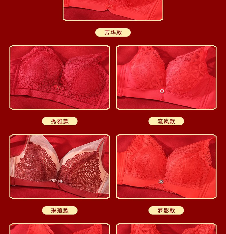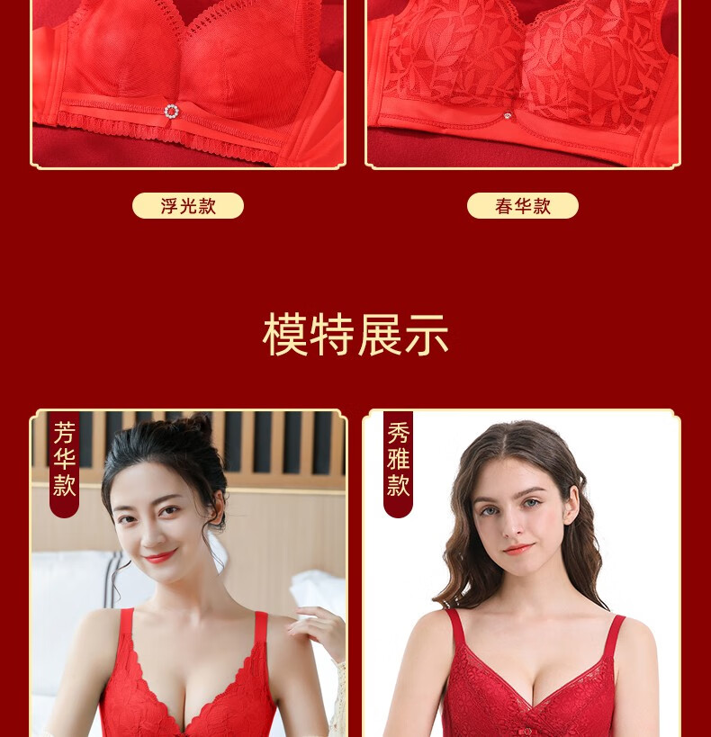 华婷露(Huatinglu)马年本命年内衣女无钢圈文胸小胸聚拢大红色内衣蕾丝调整型红色 浮光款 80A /36A