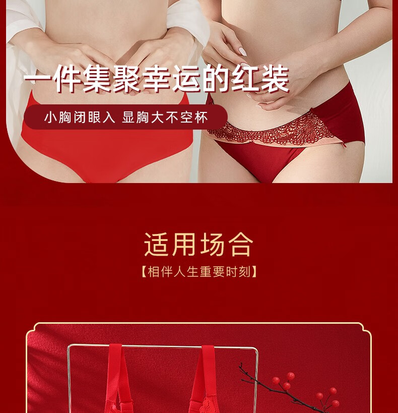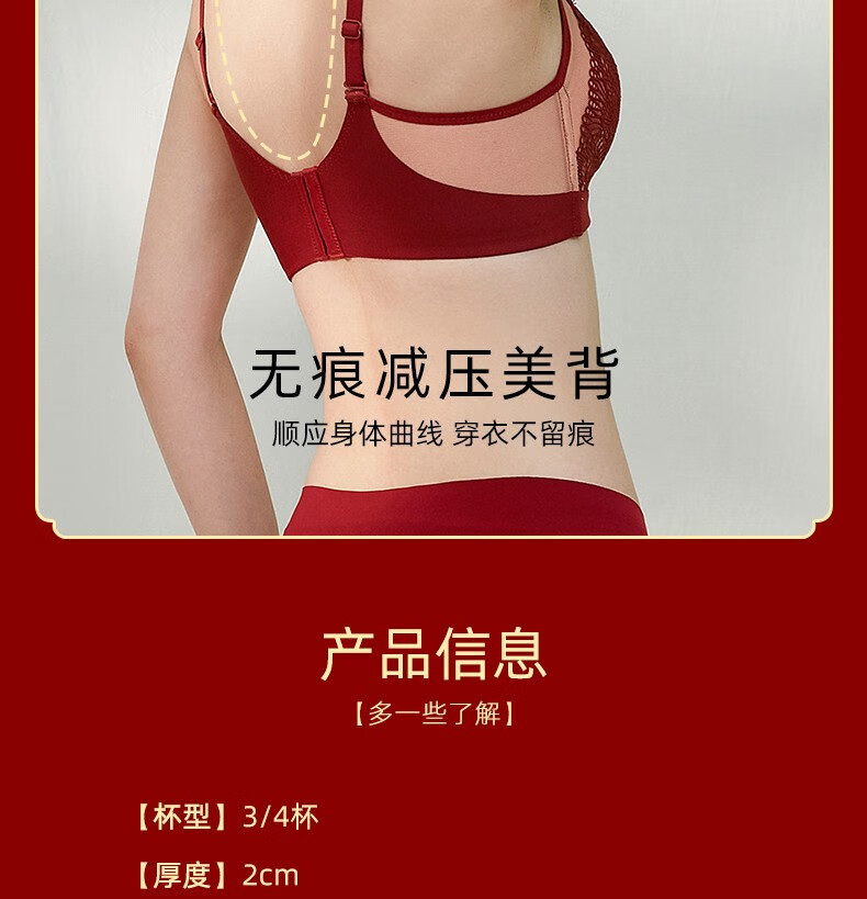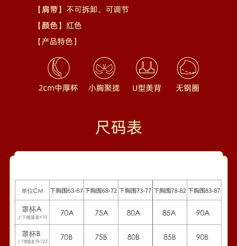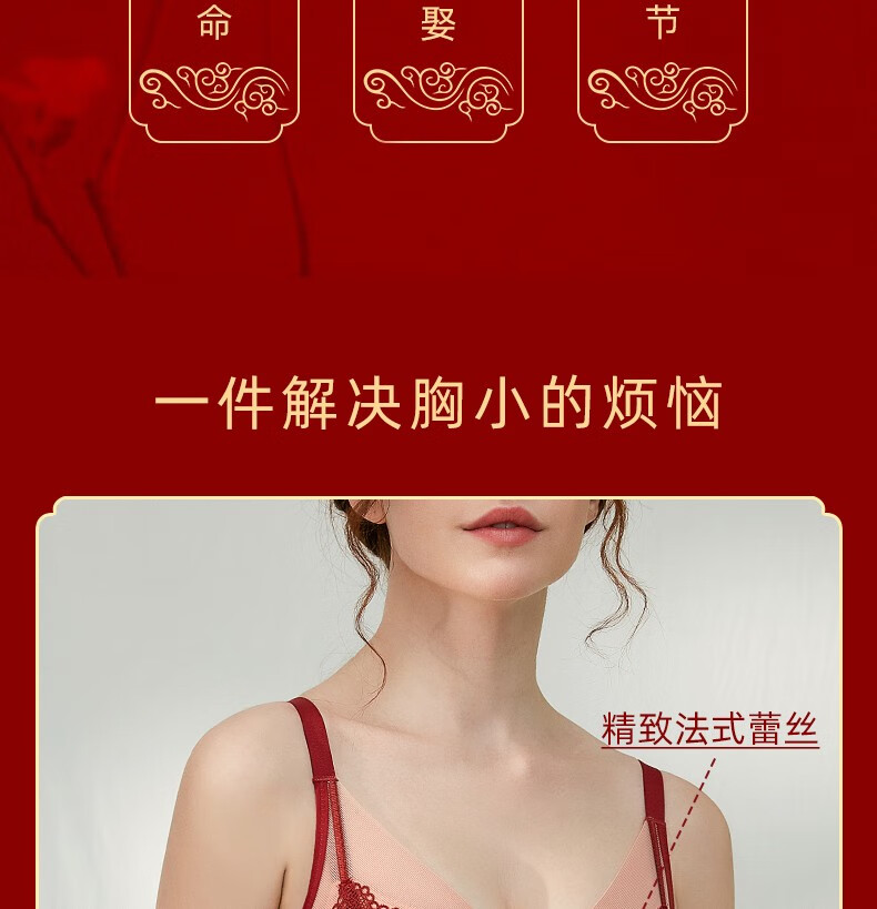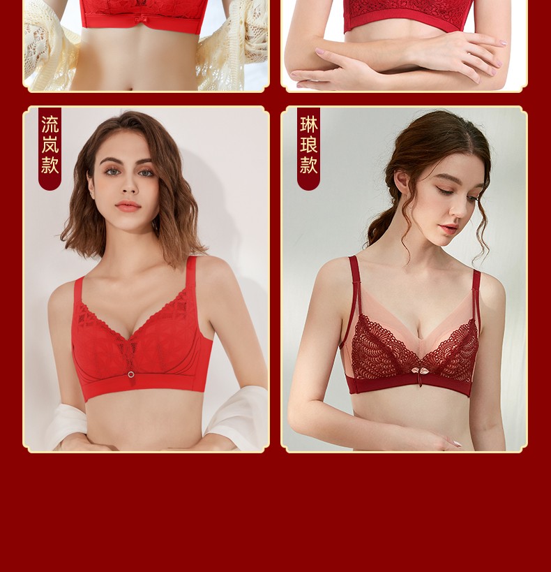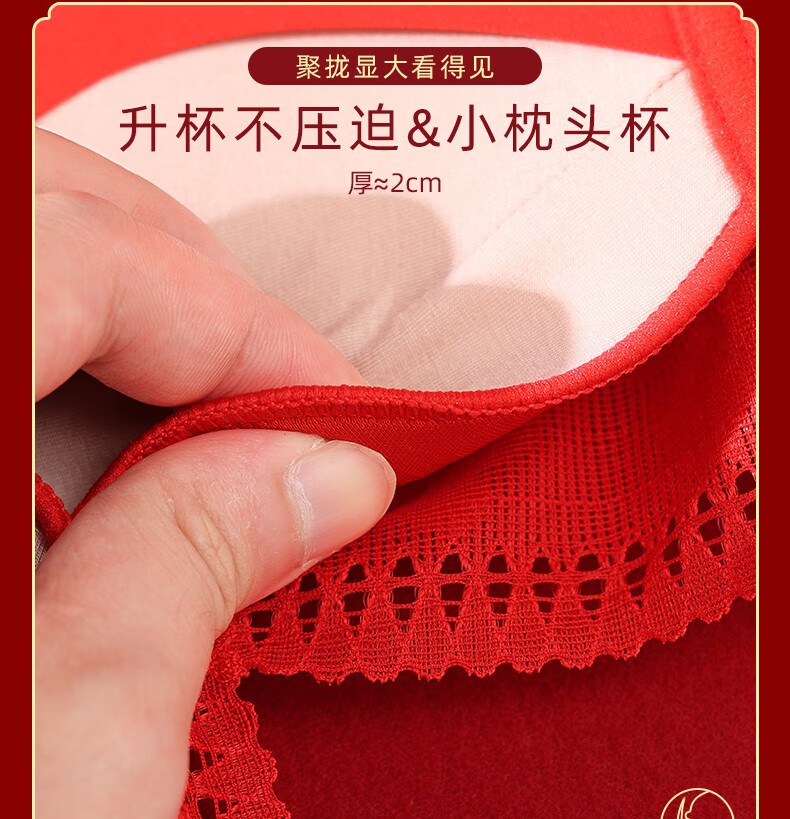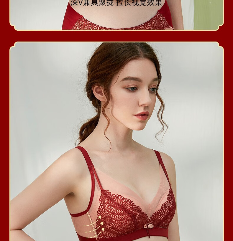 华婷露(Huatinglu)马年本命年内衣女无钢圈文胸小胸聚拢大红色内衣蕾丝调整型红色 浮光款 80A /36A
