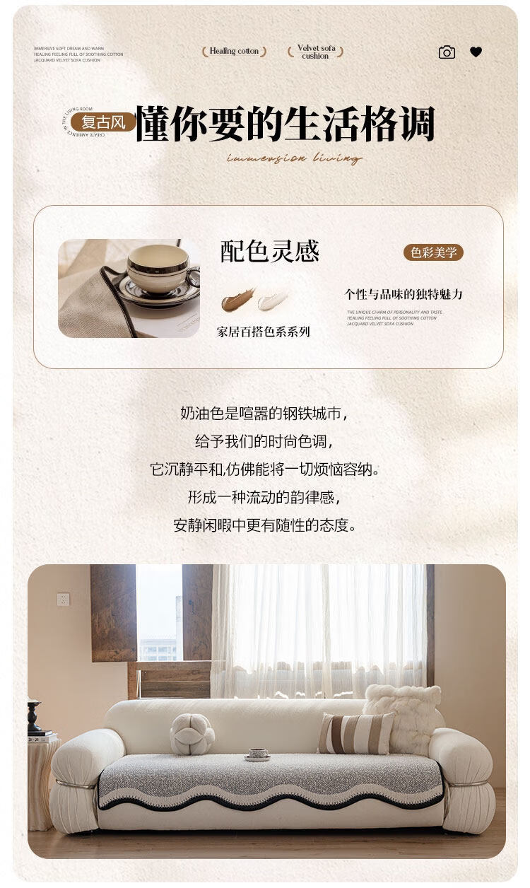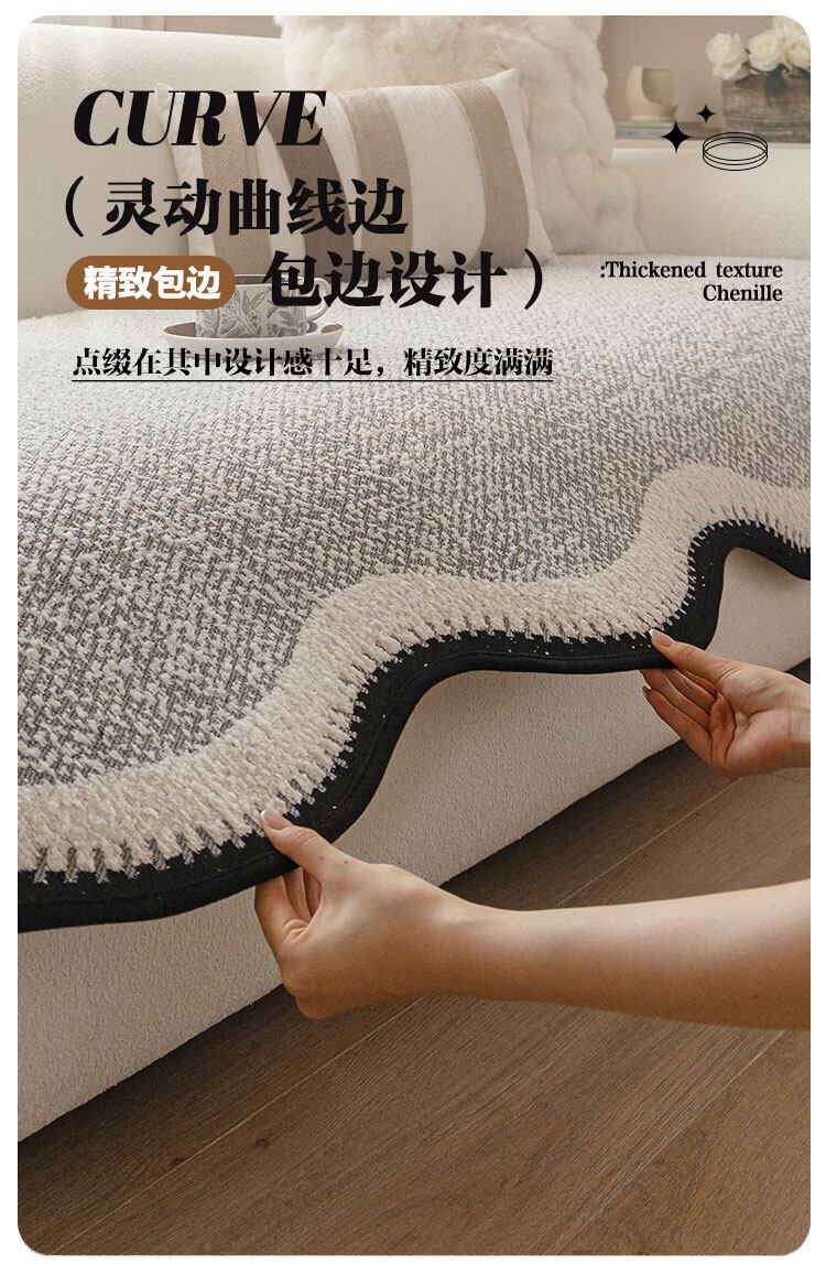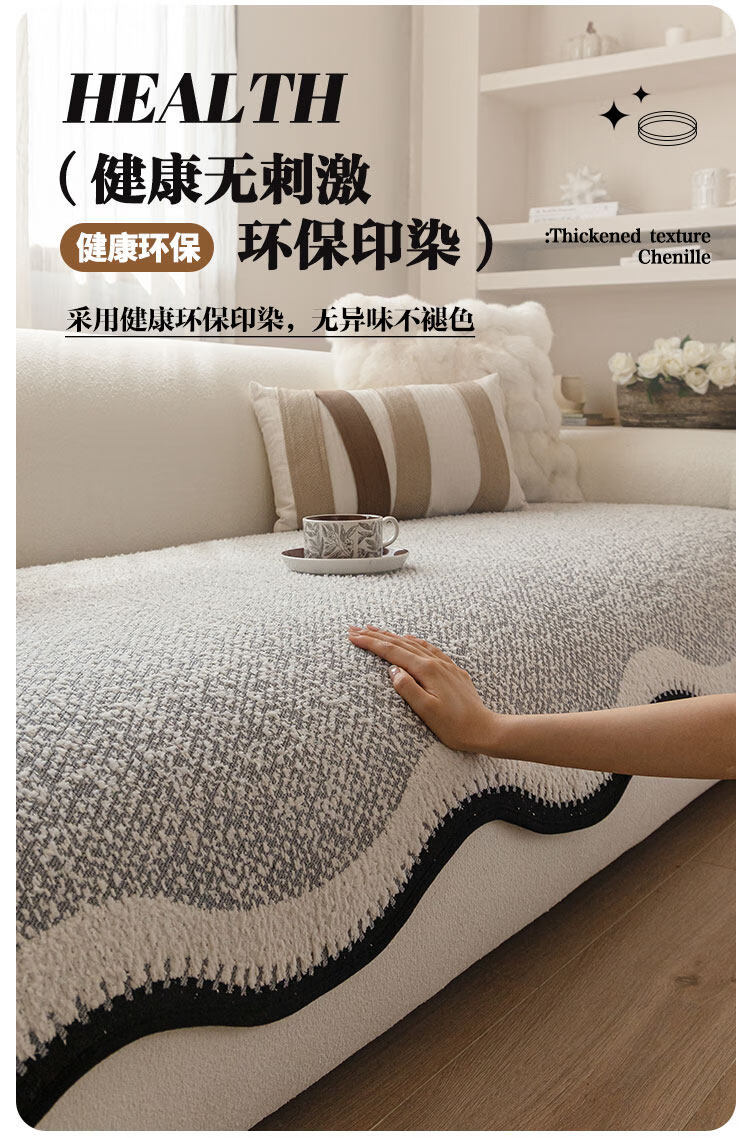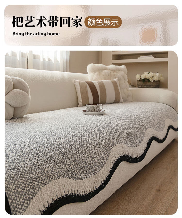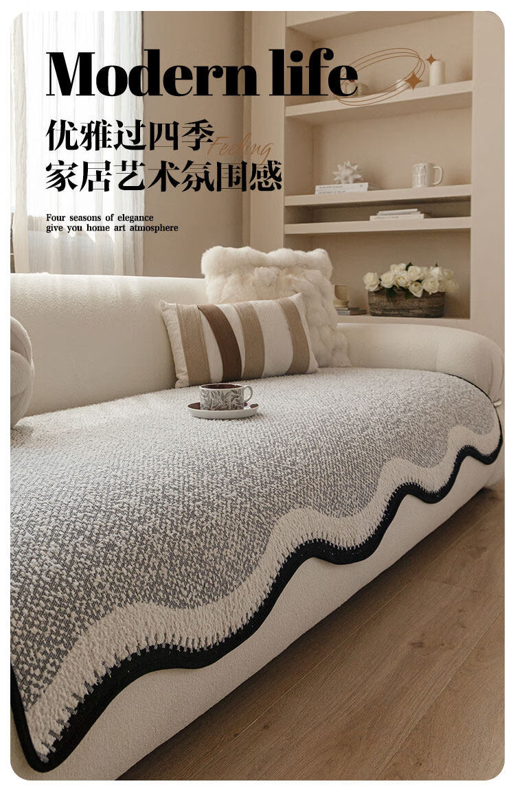 无印良品2025新款秋冬款薏米绒沙发盖布巾防滑沙发套罩加厚冬季毛绒沙发毯 山海-米咖色【加厚薏米绒软糯温暖不静电】 180*480cm【适合五人位】