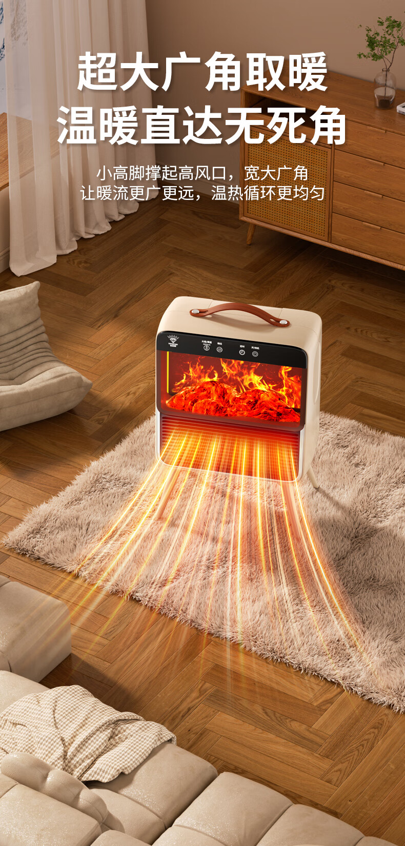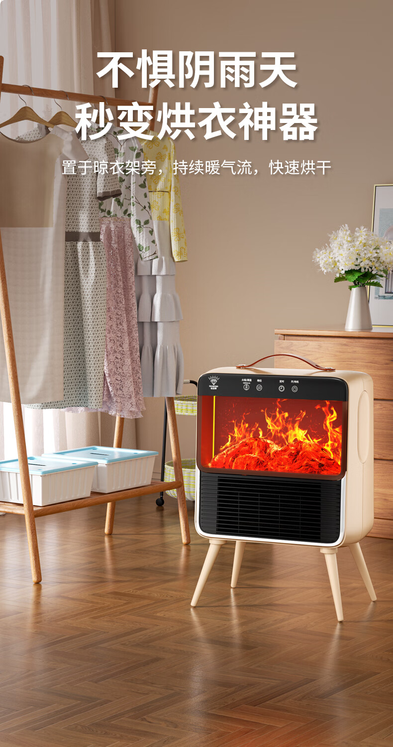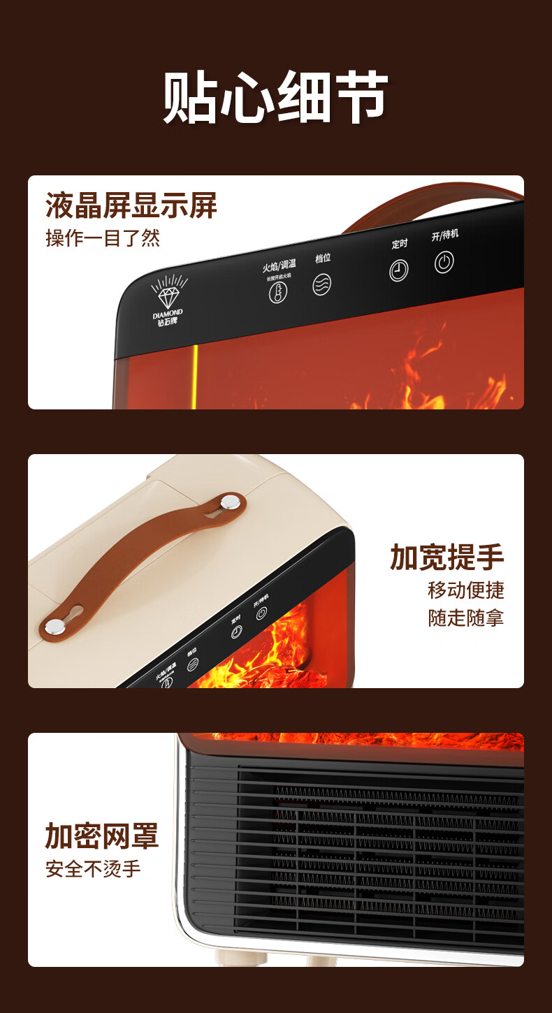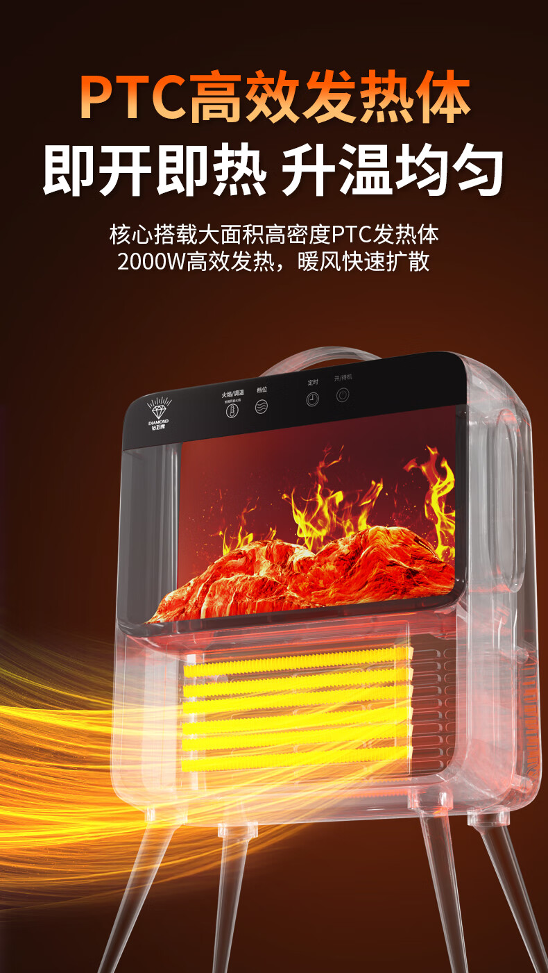 钻石牌壁炉暖风机取暖器家用电热电暖器仿真炭火焰电暖气办公室烤火炉节能热风机 机械款【仿真火焰】