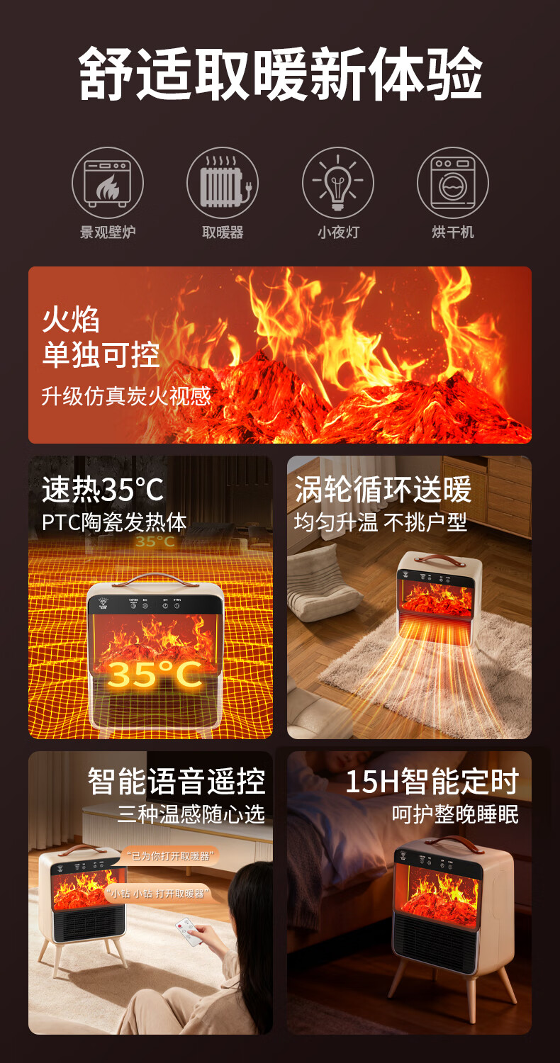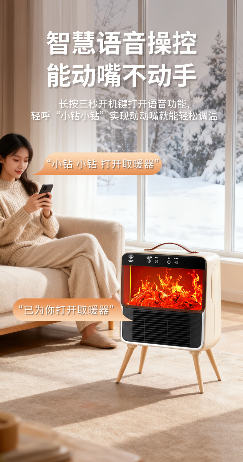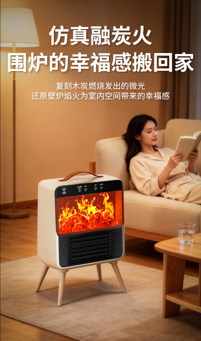 钻石牌壁炉暖风机取暖器家用电热电暖器仿真炭火焰电暖气办公室烤火炉节能热风机 机械款【仿真火焰】