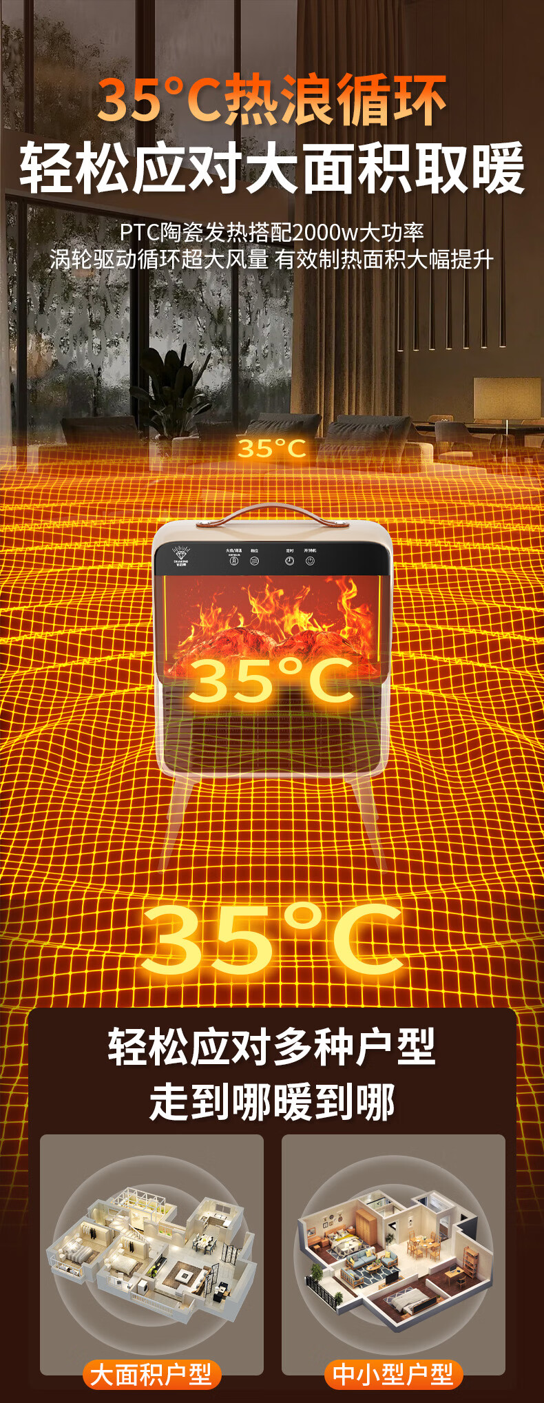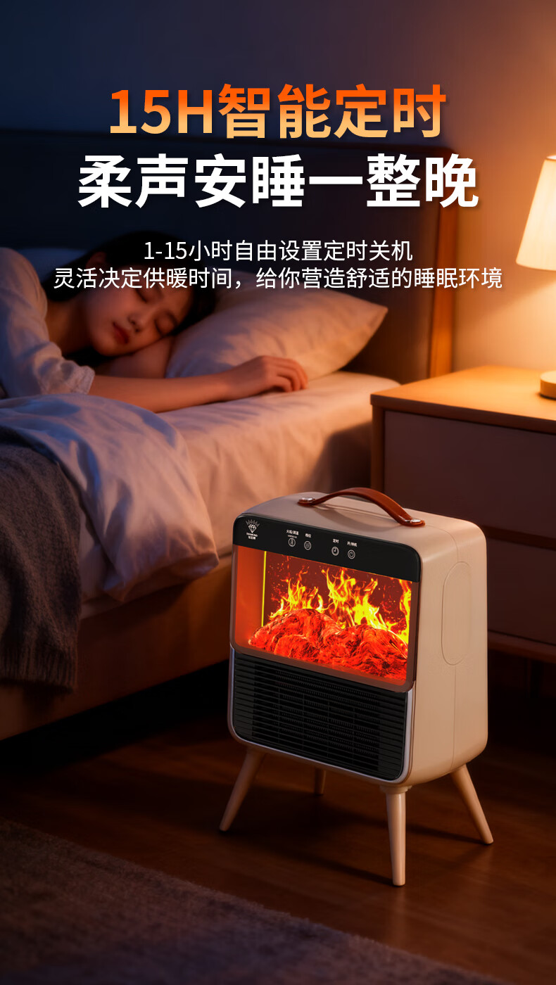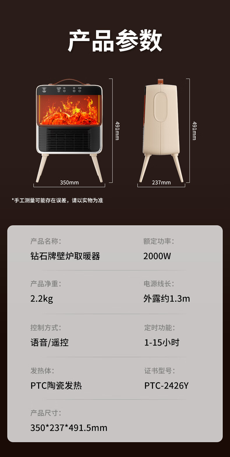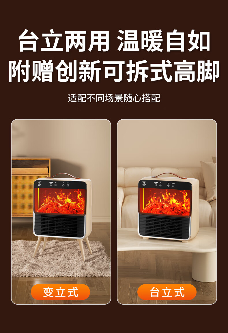 钻石牌壁炉暖风机取暖器家用电热电暖器仿真炭火焰电暖气办公室烤火炉节能热风机 机械款【仿真火焰】