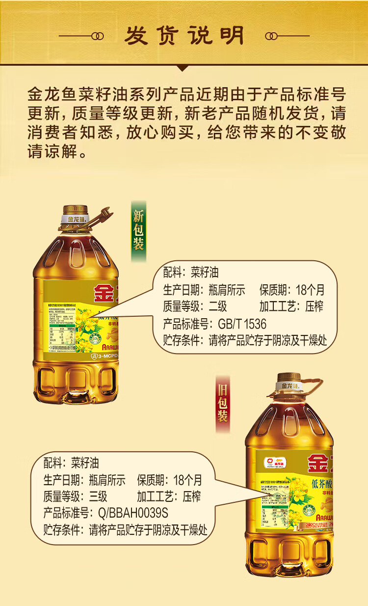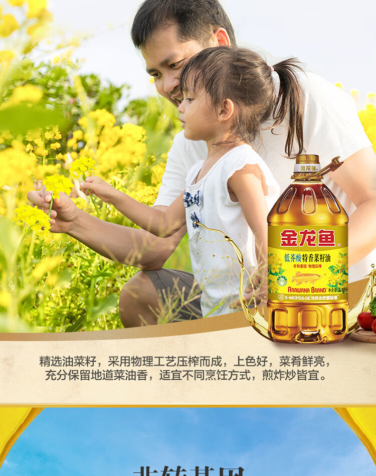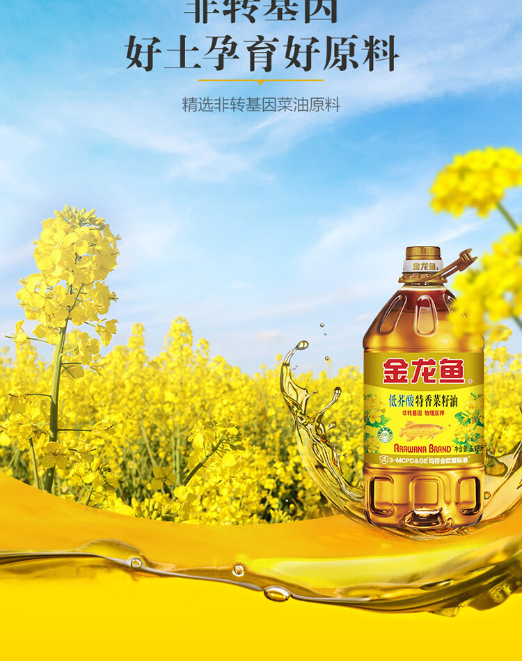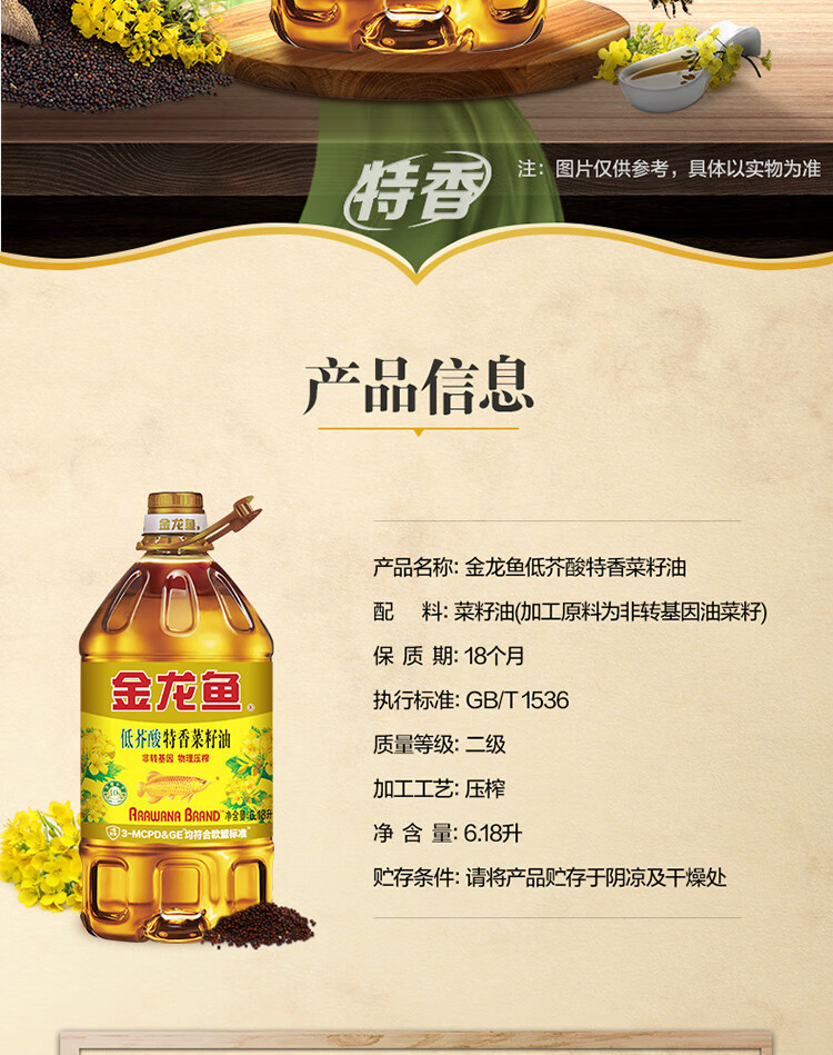 金龙鱼 食用油【保真菜籽油】非转基因 特香低芥酸菜籽油6.18L