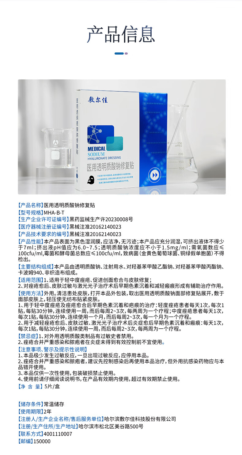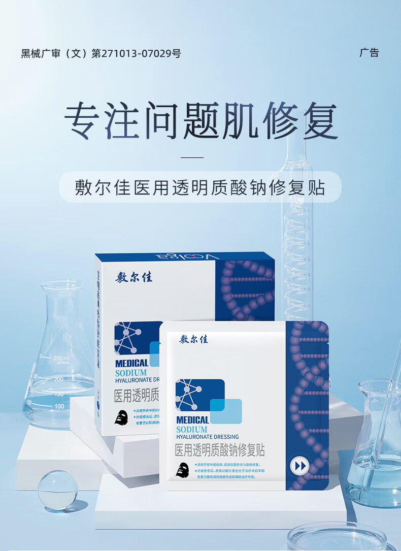 敷尔佳医用透明质酸钠修复贴 黑膜2片试用旅行装 MHA-B-T
