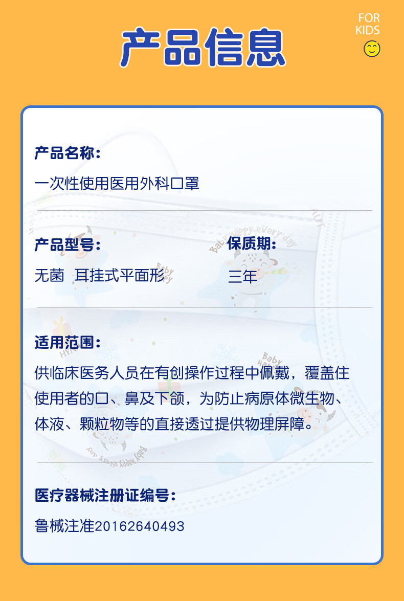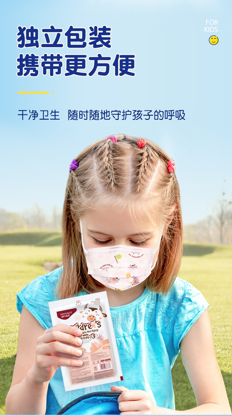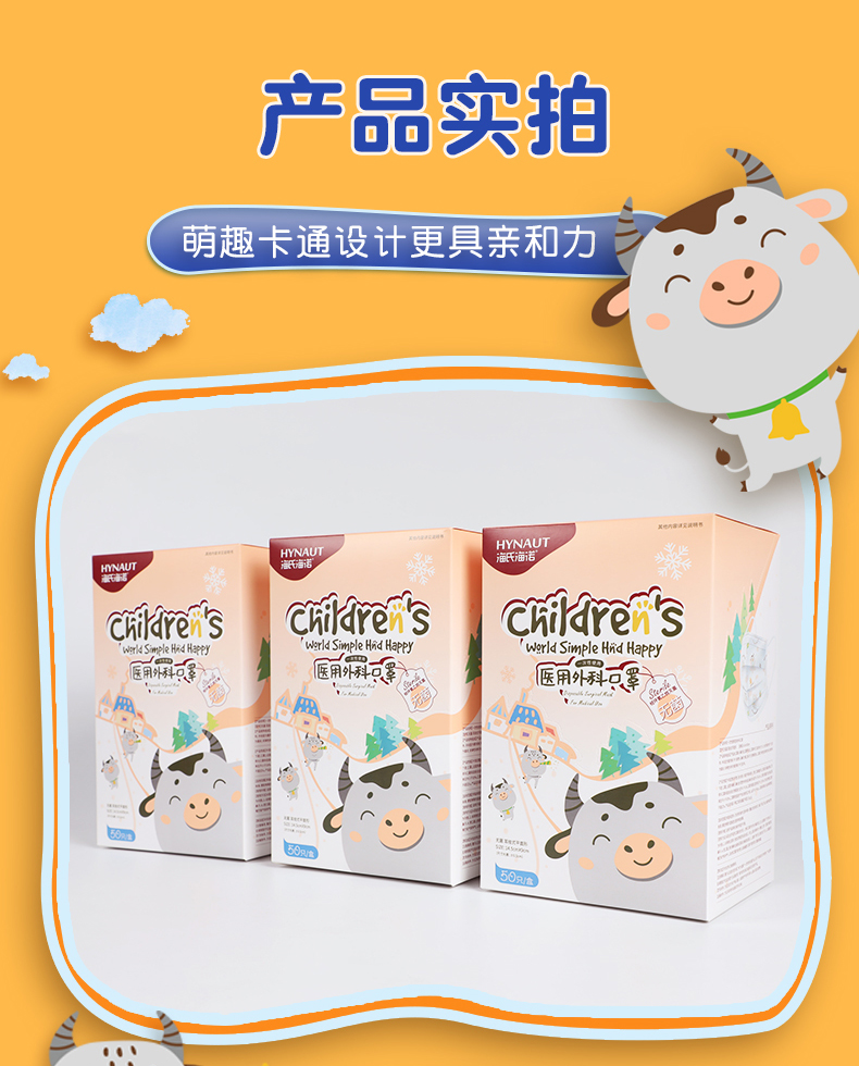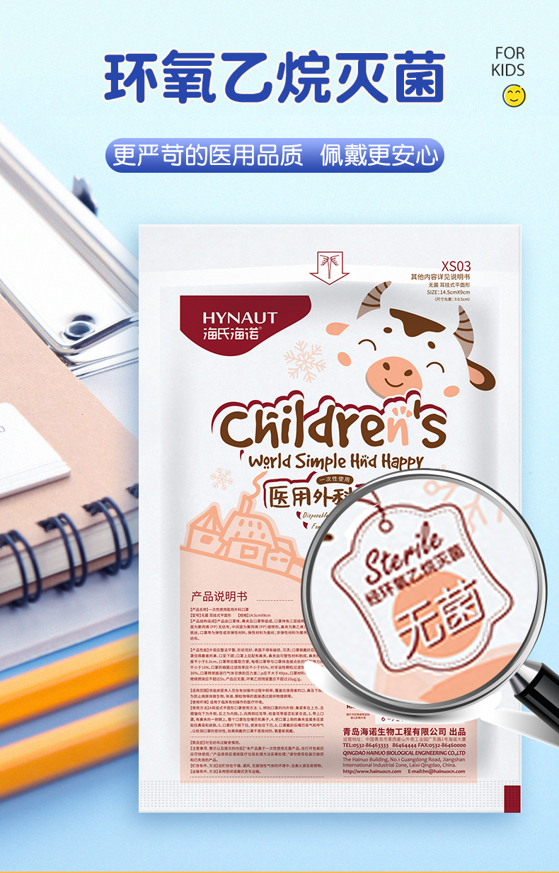 海氏海诺一次性儿童医用外科口罩6-12岁灭菌级口罩独立包装一只一袋防尘50
