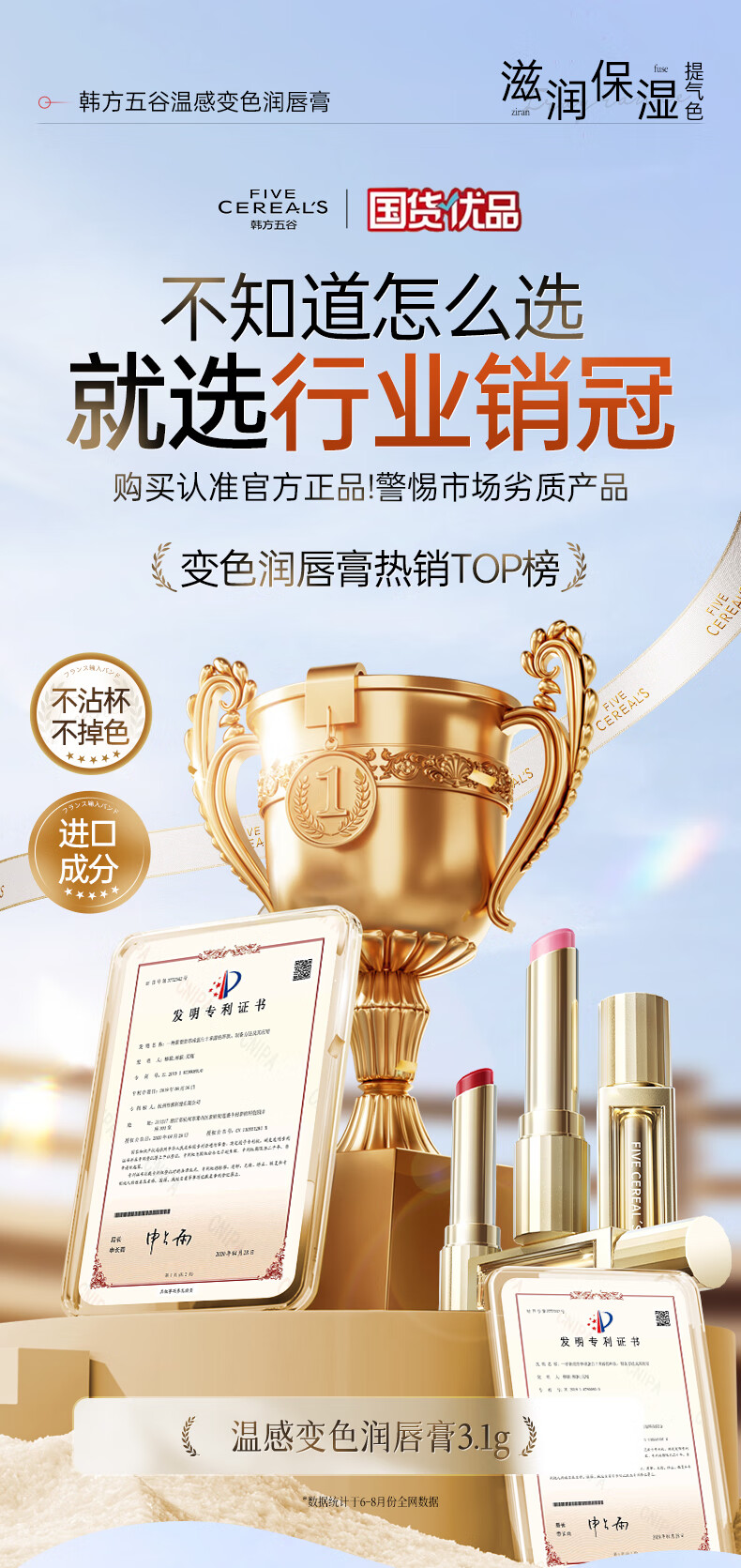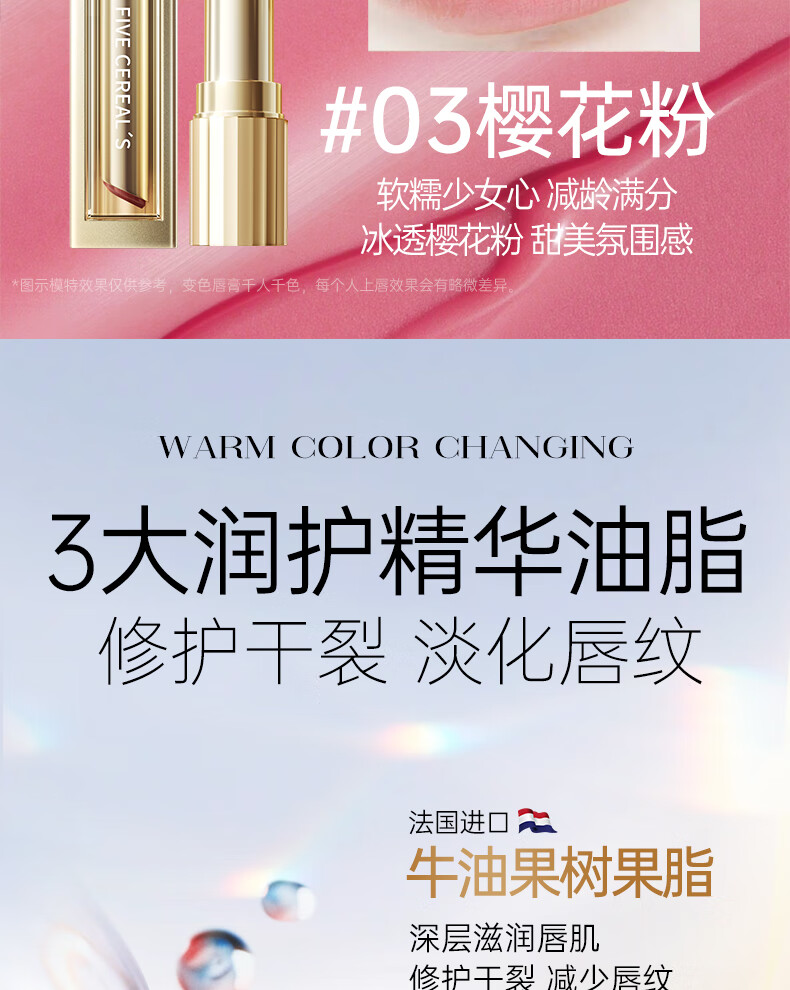 韩方五谷变色润唇膏女士凡士林保湿滋润嘴唇防干裂去死皮淡唇纹不沾杯口红