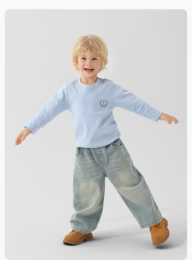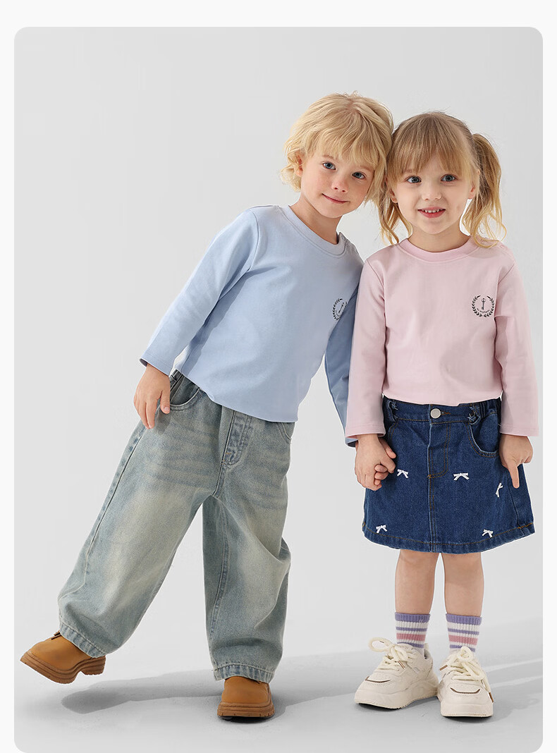 丽婴房儿童全棉长袖T恤男童女童航海风印花精梳棉长袖T恤2026春季新品 粉红 150 cm