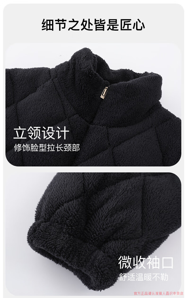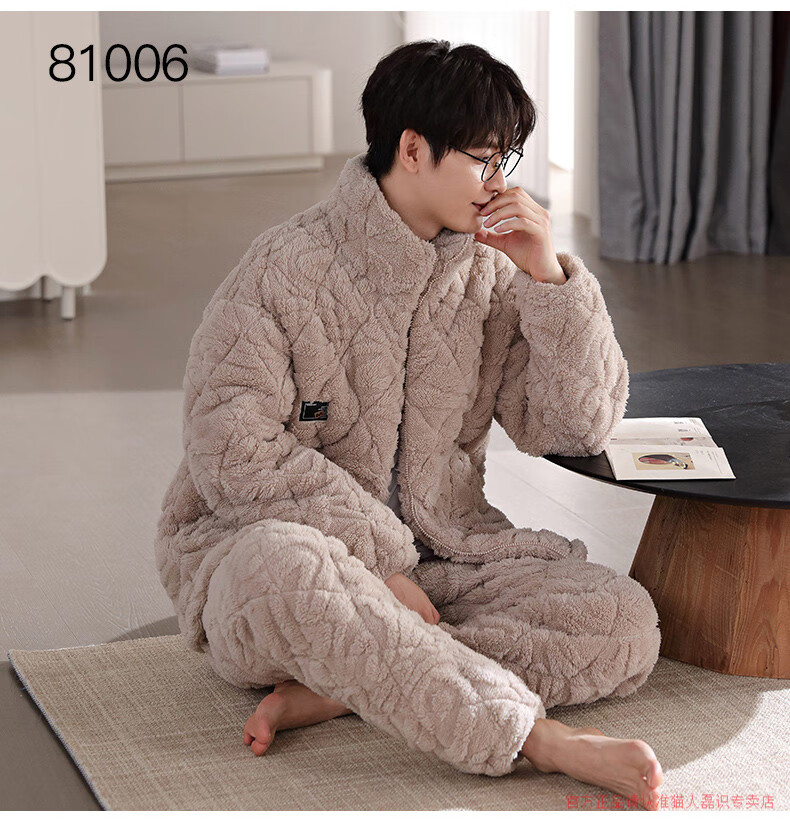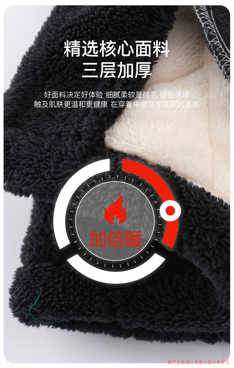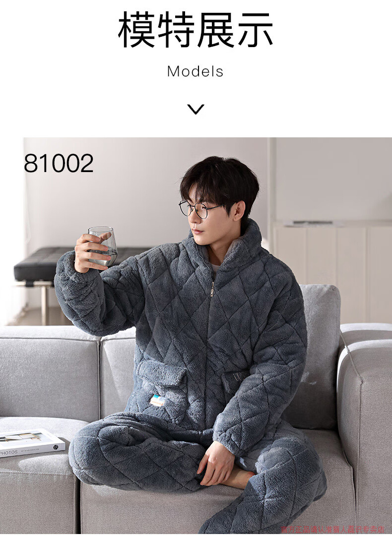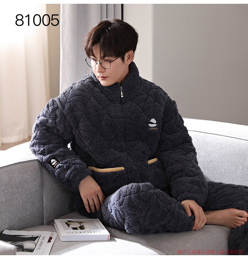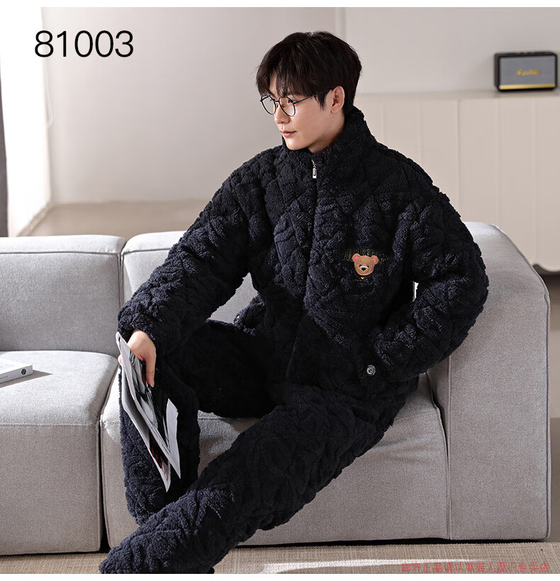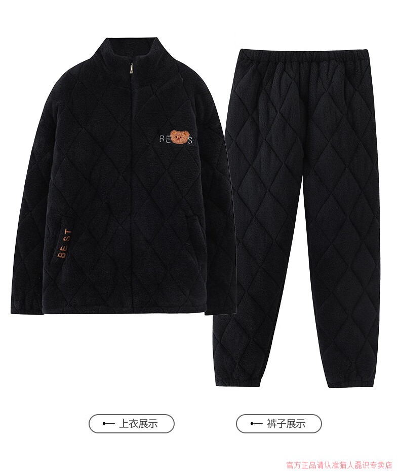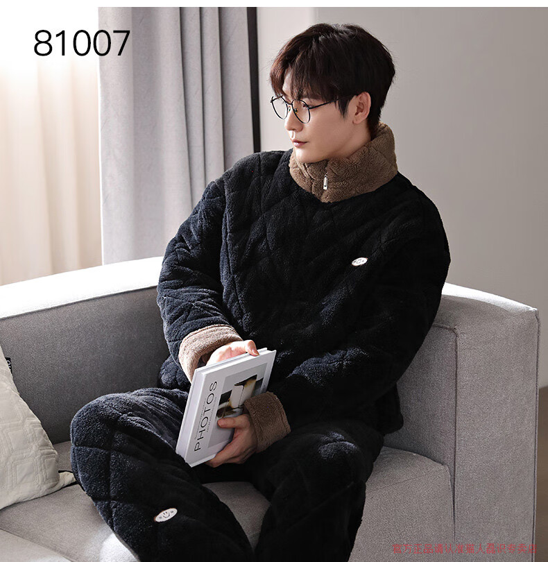 猫人(MiiOW)睡衣男秋冬季加绒加厚2025新款珊瑚绒保暖三层夹棉家居服套装 暗黑色 【三层加厚·蓄热保暖】 XL 【130-150斤】