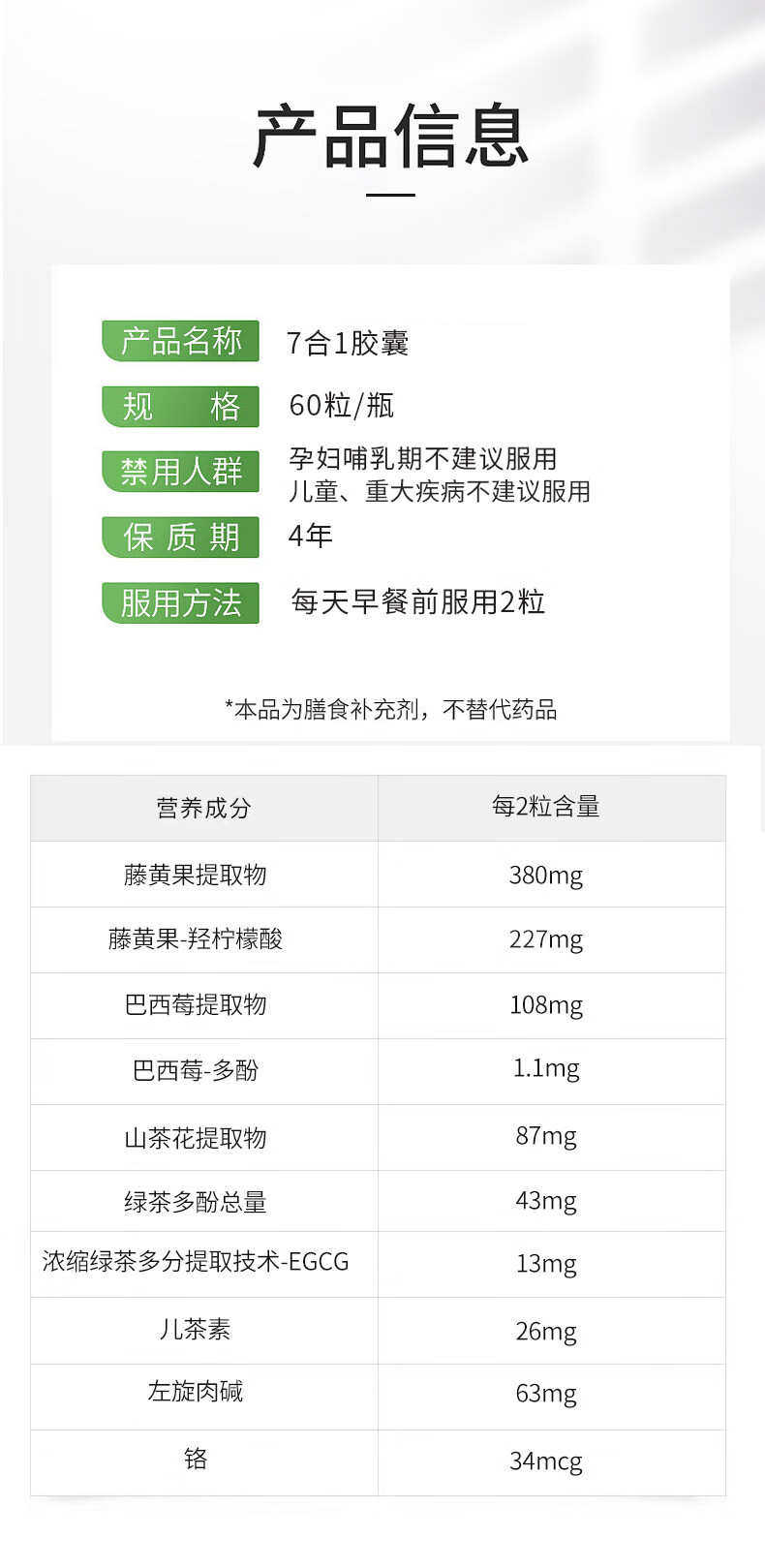 sotya七合一减肥胶囊60粒*1瓶 藤黄果阻断碳水控体瘦身燃脂快速瘦腰 60粒*1瓶