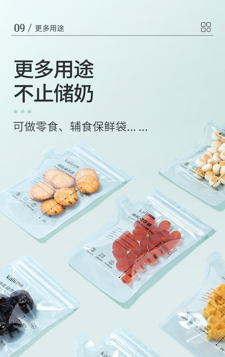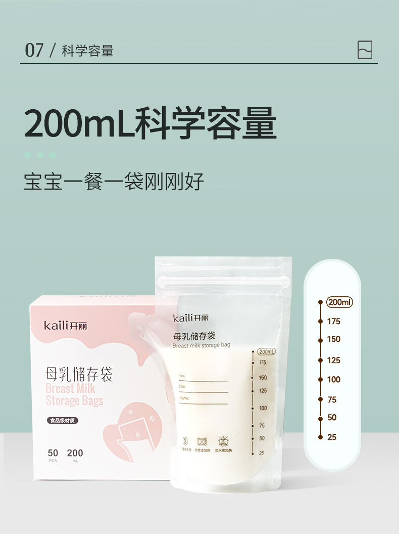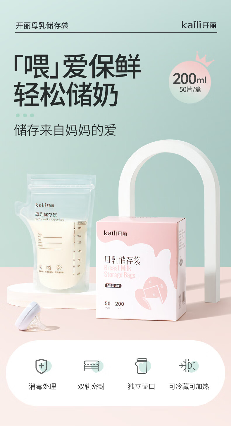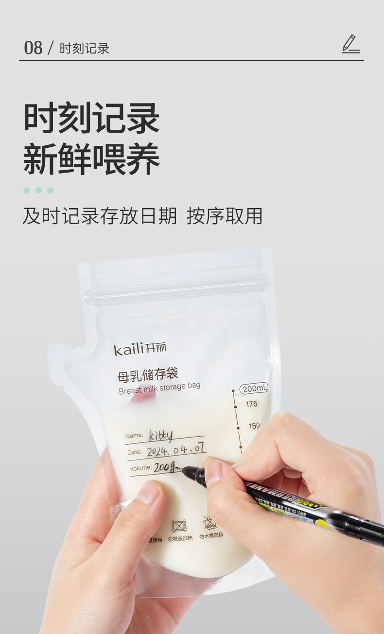 开丽储奶袋母乳保鲜袋存奶袋壶型小容量多功能储存袋 100片/200ml壶口款【送记号笔】