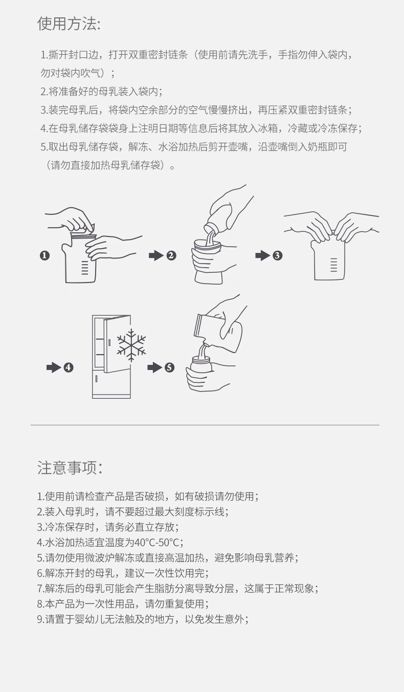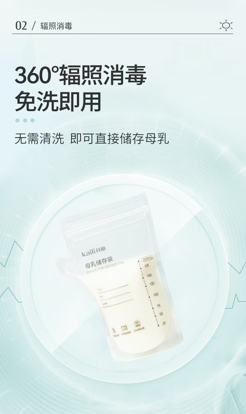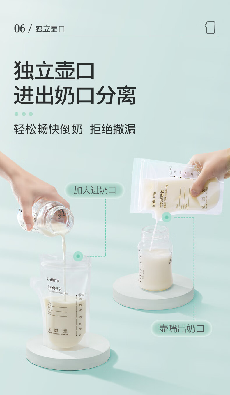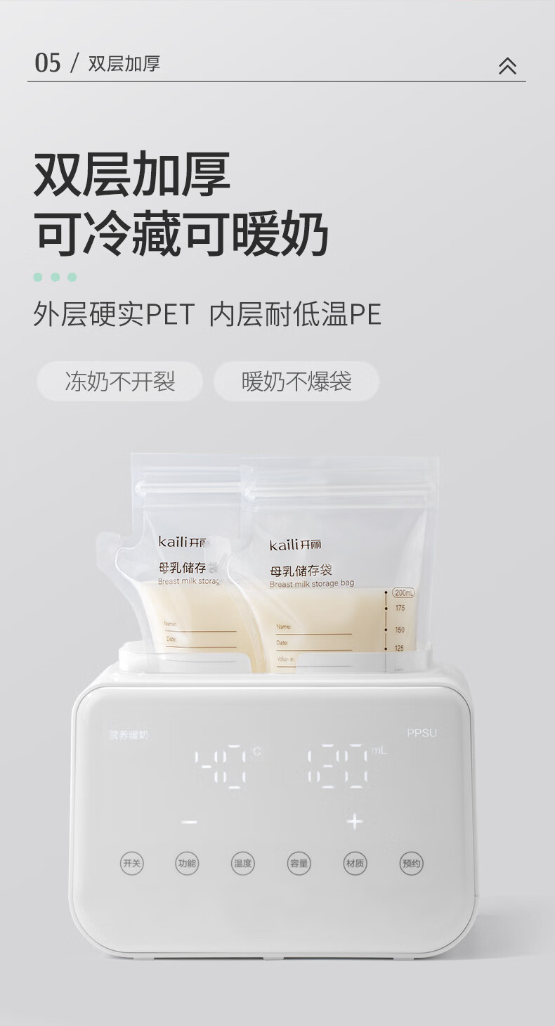 开丽储奶袋母乳保鲜袋存奶袋壶型小容量多功能储存袋 100片/200ml壶口款【送记号笔】