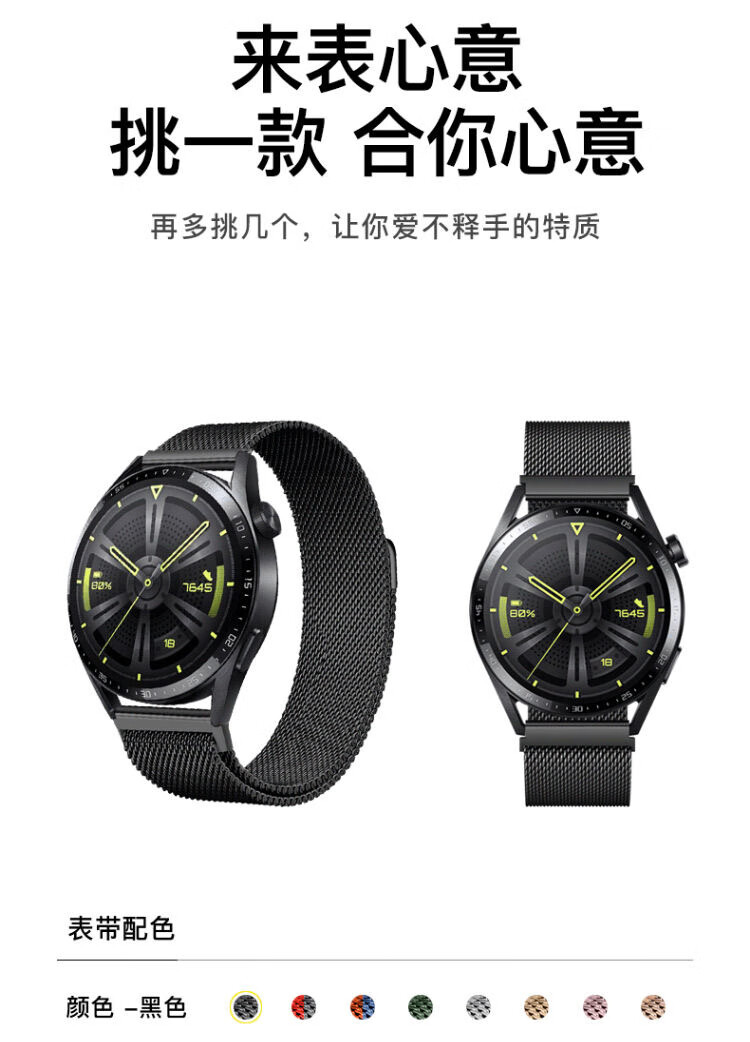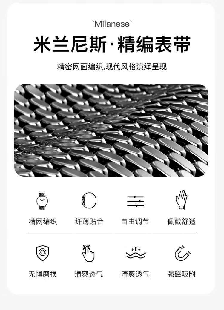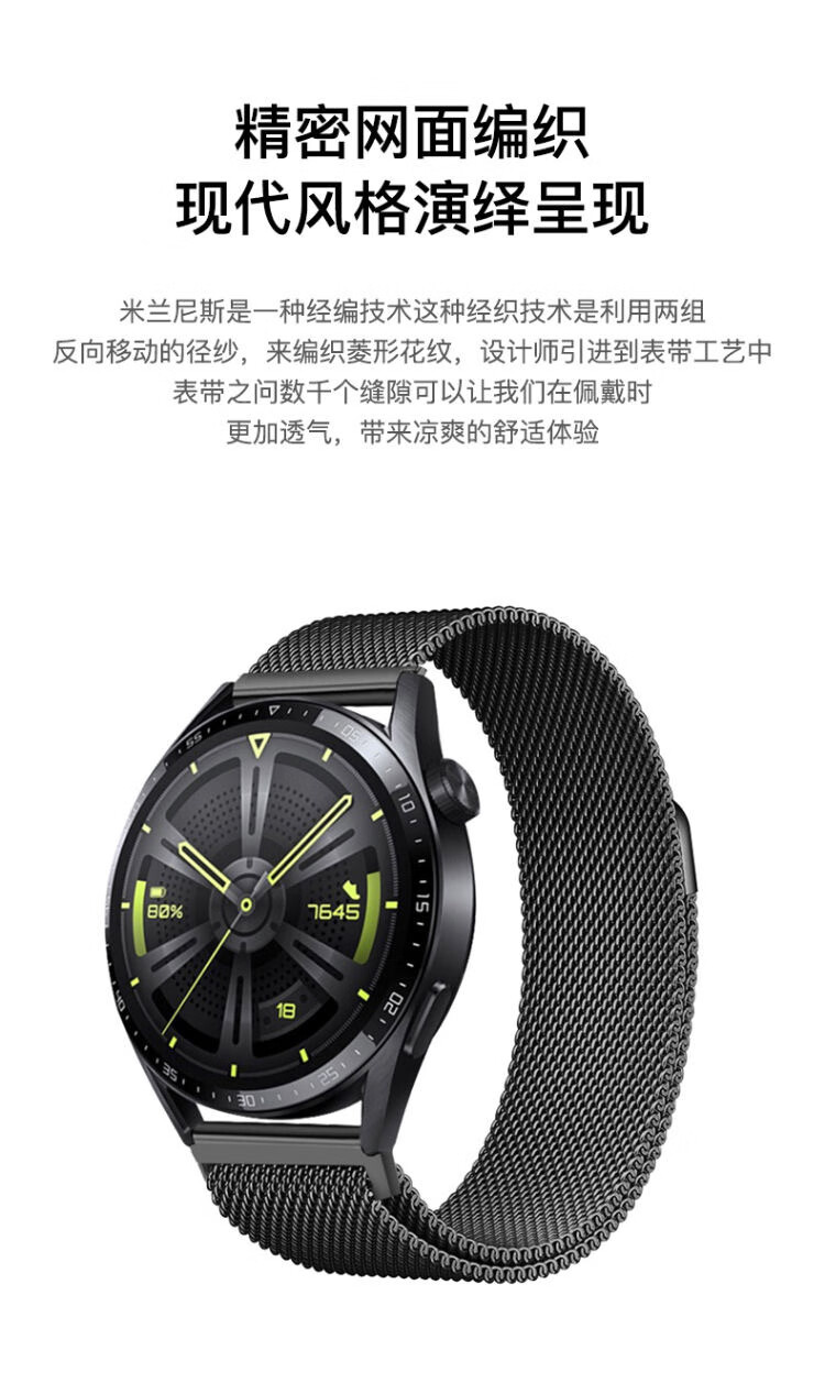 华为GT6pro表带watch5/GT3米兰尼斯磁吸透气watch4/gt4/gt5表链 卡扣款-银色 GTrunner(22mm)