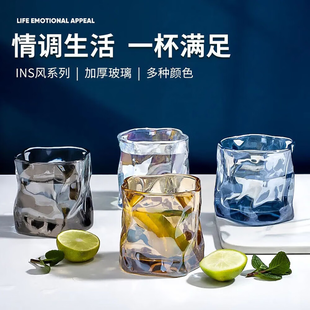 【严选好物】创意折纸杯扭扭杯酒吧威士忌啤酒杯玻璃杯水杯洋酒杯 透明 180ml