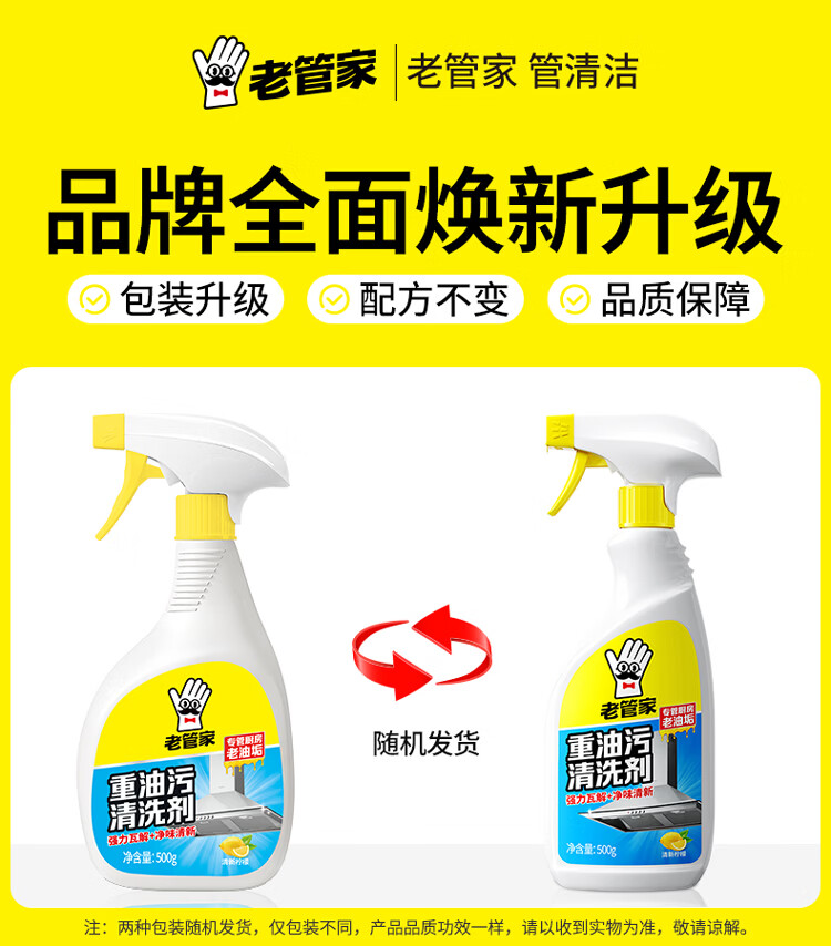 老管家重油污清洗剂500ml家用厨房油烟机清洁剂油污净强力去油污除油剂 500ml*2瓶量贩装【日常去油】