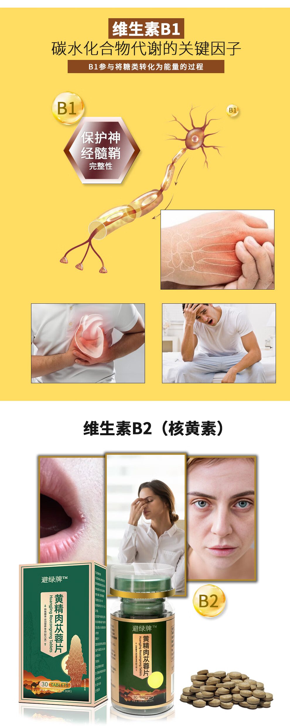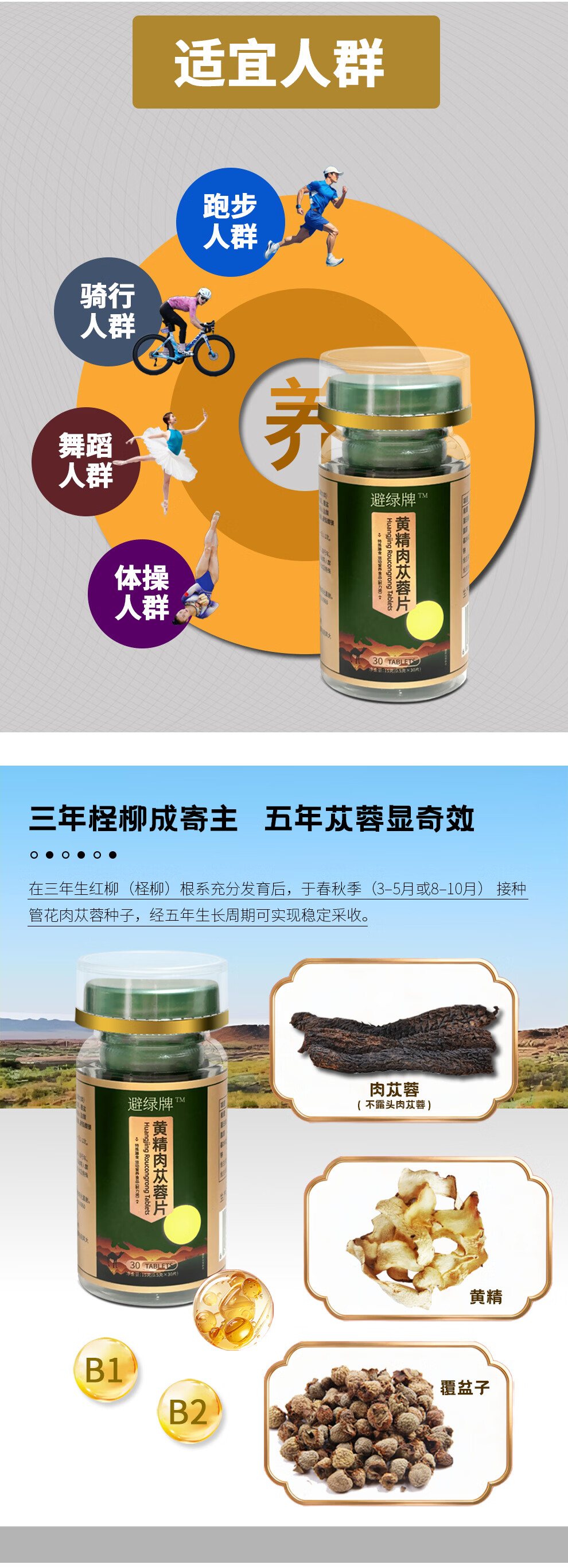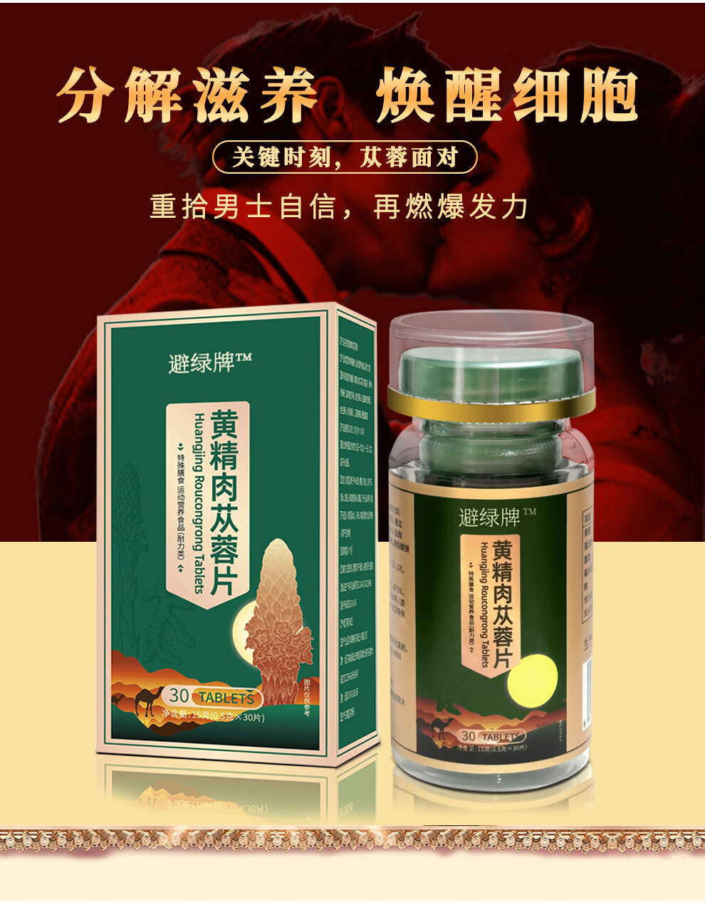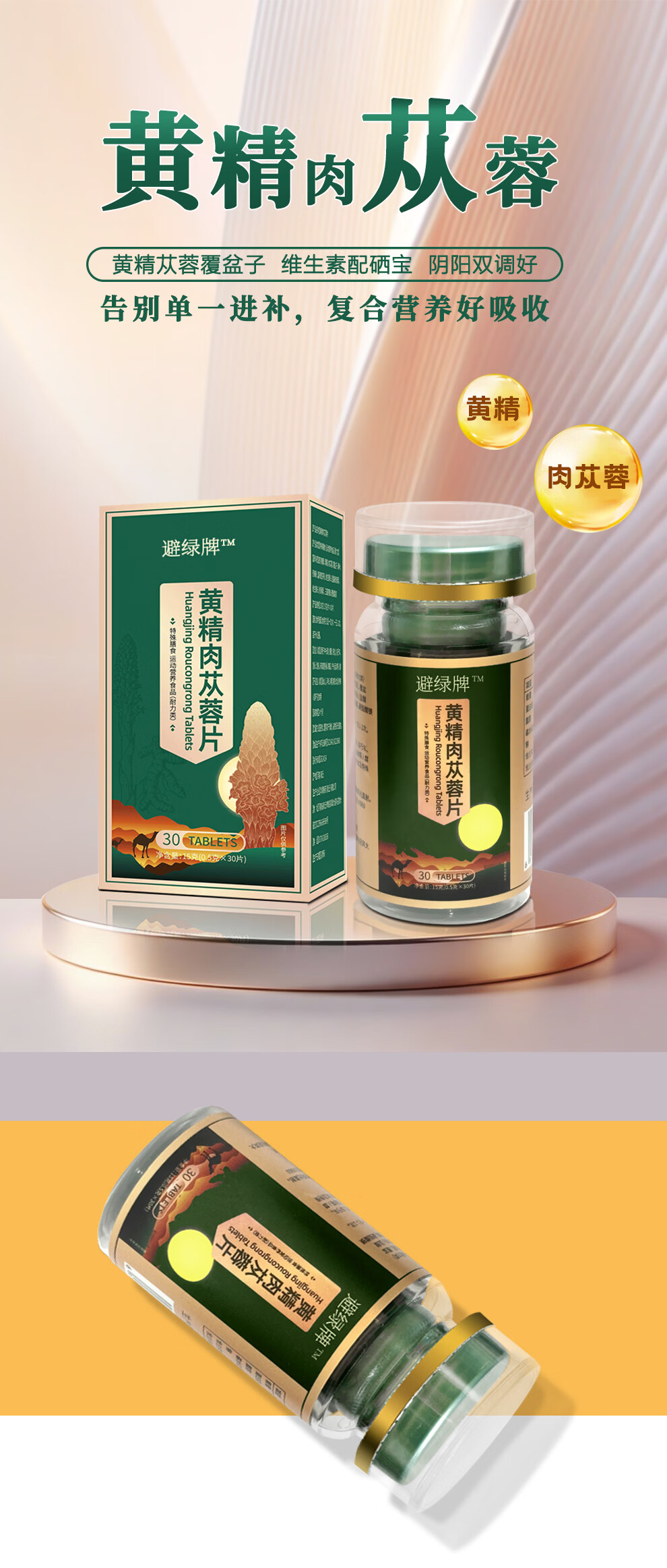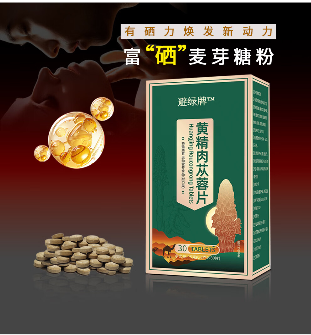华顺智高黄精肉苁蓉片特殊膳食运动营养食品耐力型正品保证成年男性养生 30片*3瓶 (男人臻选)