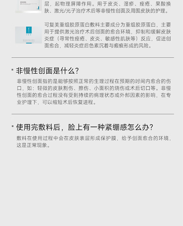 可复美医用皮肤液体敷料次抛状非面膜创面护理 医用敷料次抛7支/盒