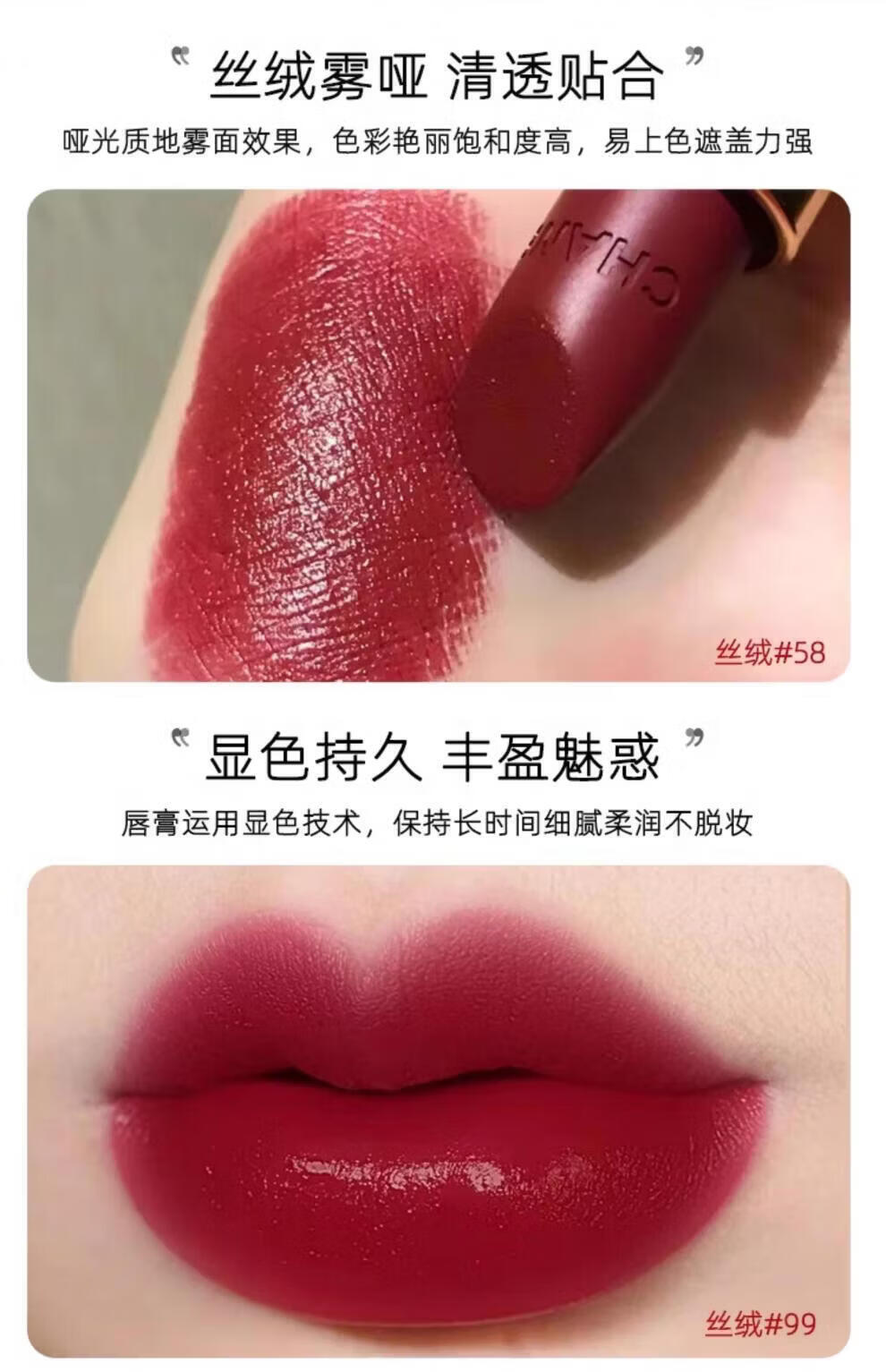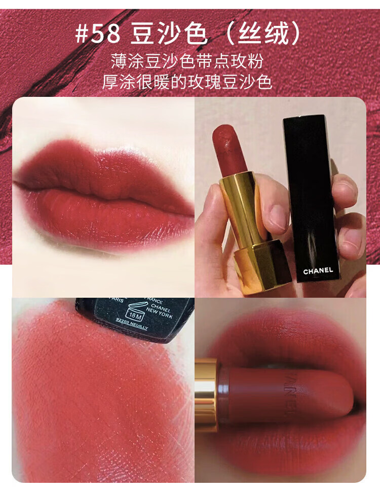 香奈儿CHANELCHANEL1口红58丝绒唇膏63 174双头唇釉女礼盒情人节限定 「魅力丝绒」#58覆古红棕 送专柜礼盒礼袋