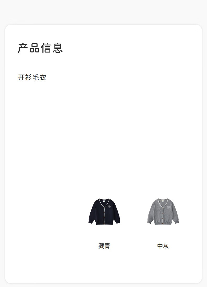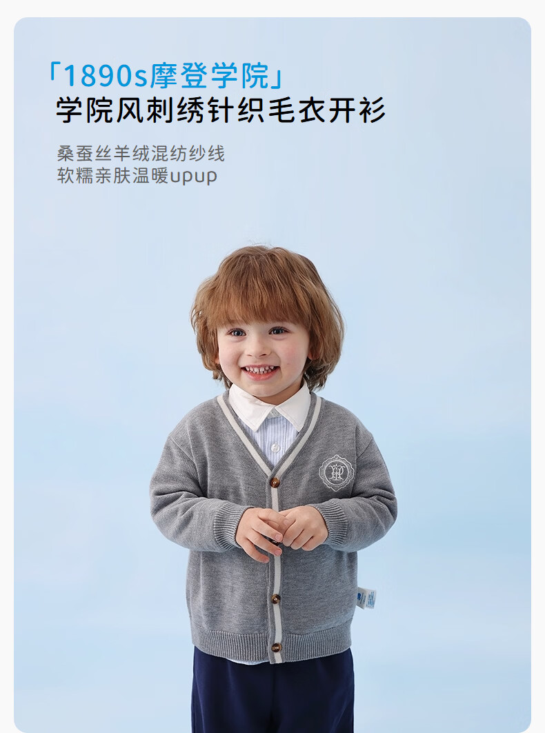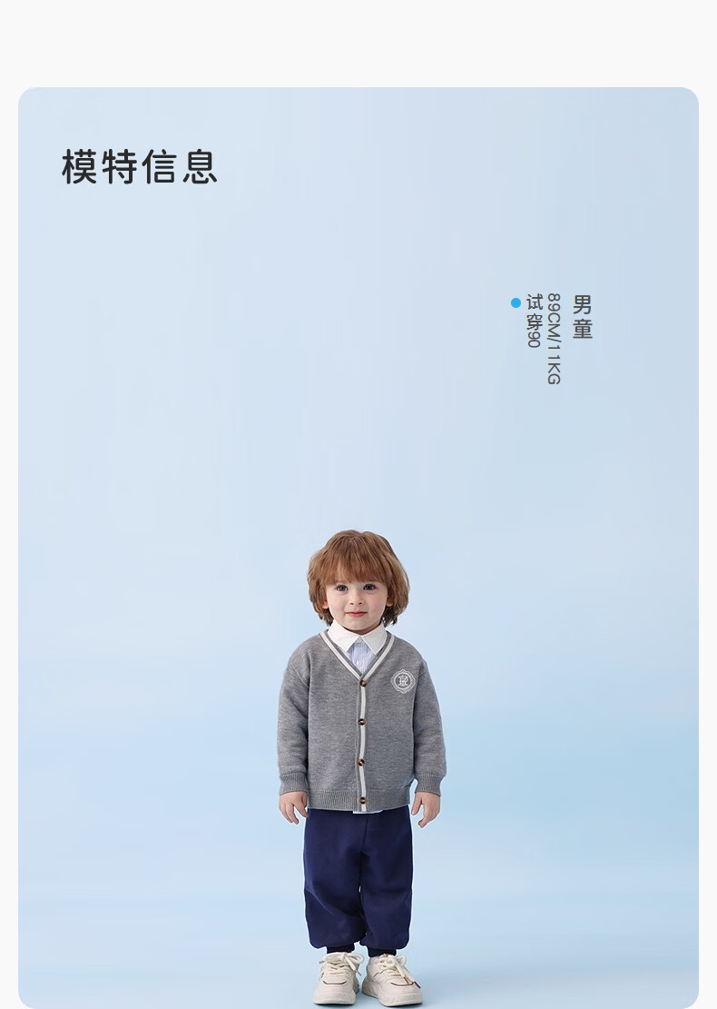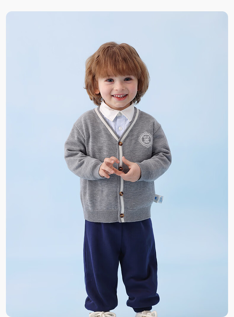 丽婴房儿童针织毛衣男童学院风针织开衫春季2026春新款 中灰 90 cm