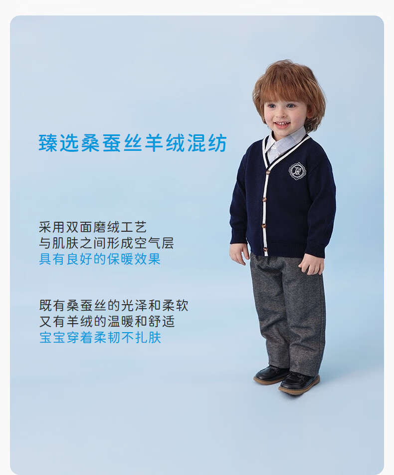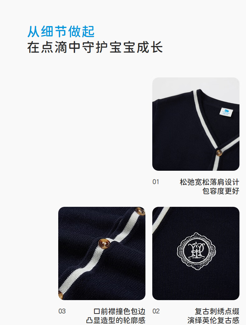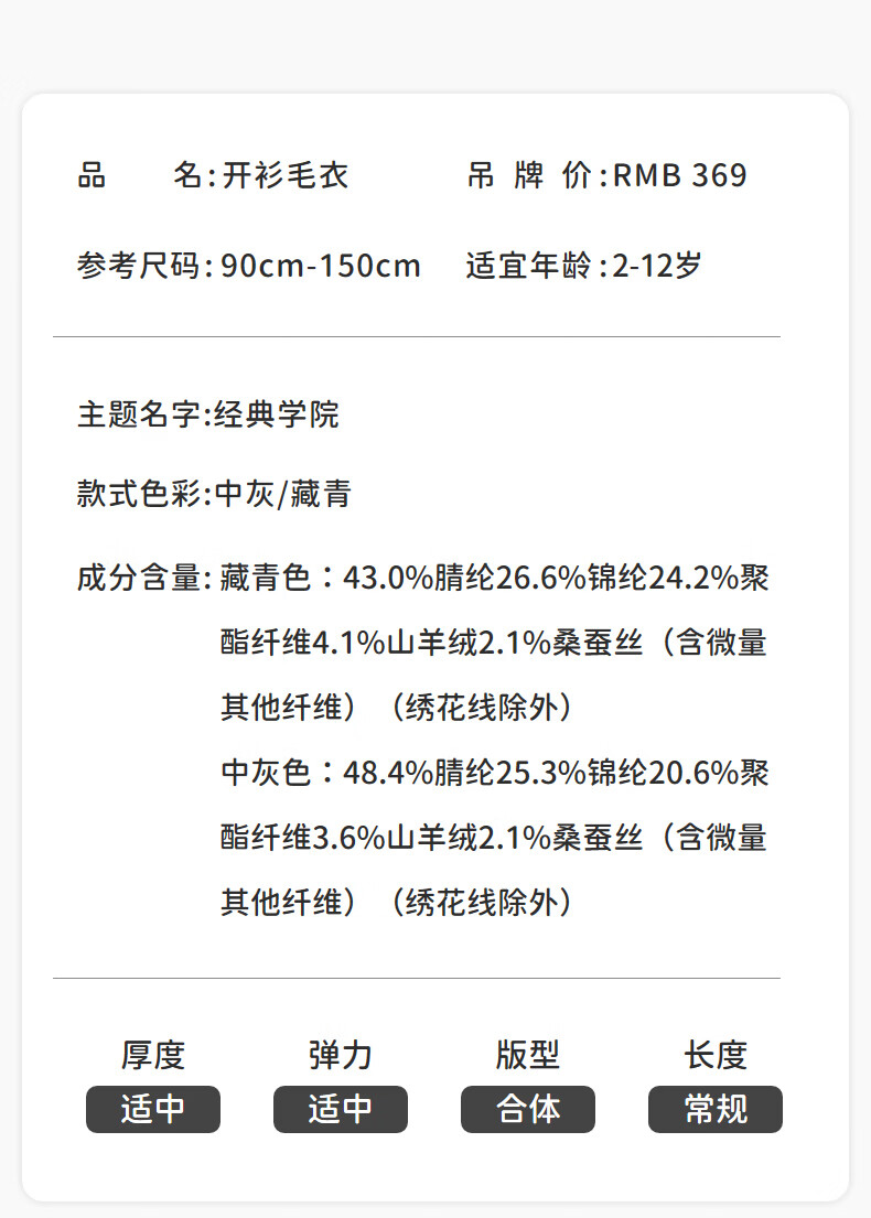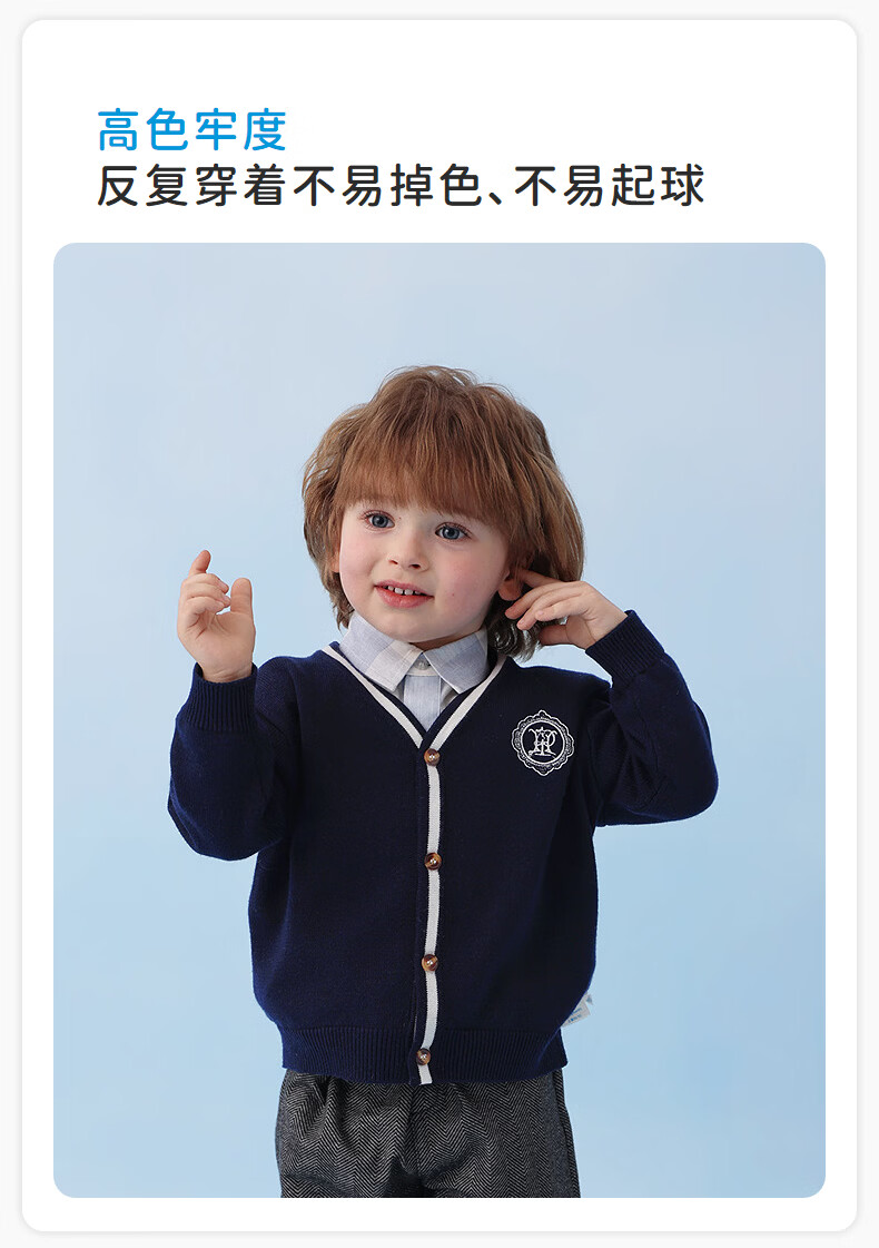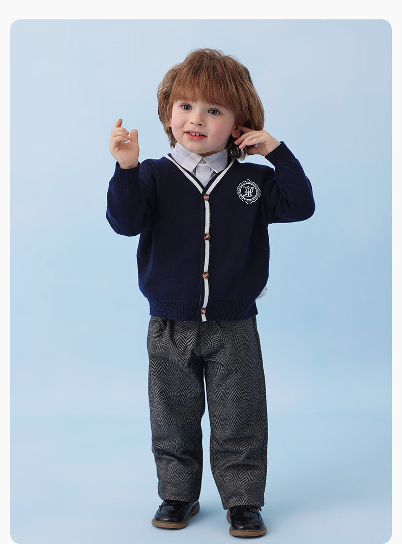 丽婴房儿童针织毛衣男童学院风针织开衫春季2026春新款 中灰 90 cm