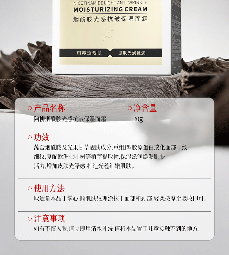 阿柳(aliu)烟酰胺光感抗皱保湿面霜女士提拉紧致面部淡纹护肤精华霜 烟酰胺光感抗皱紧致面霜30g