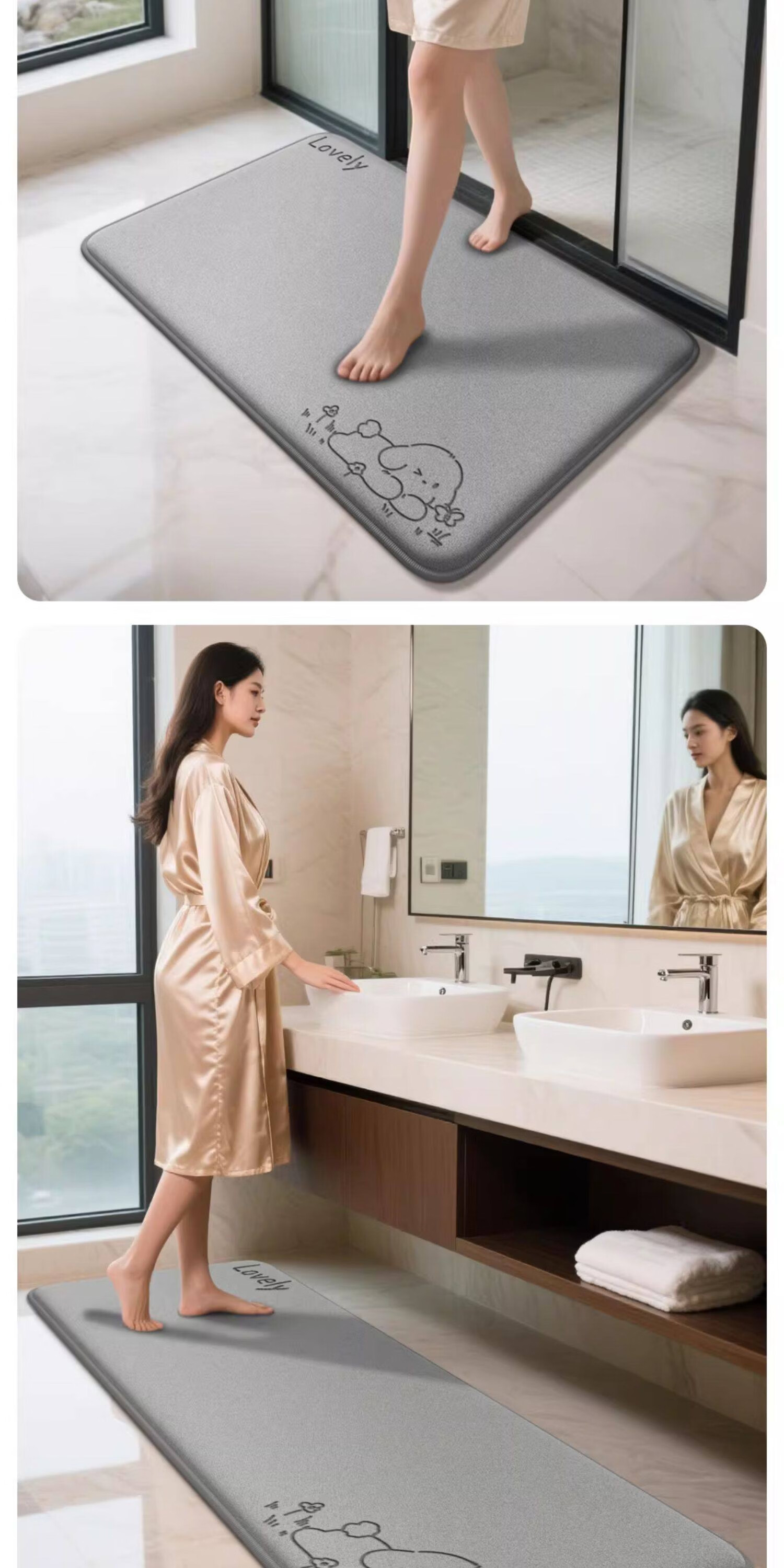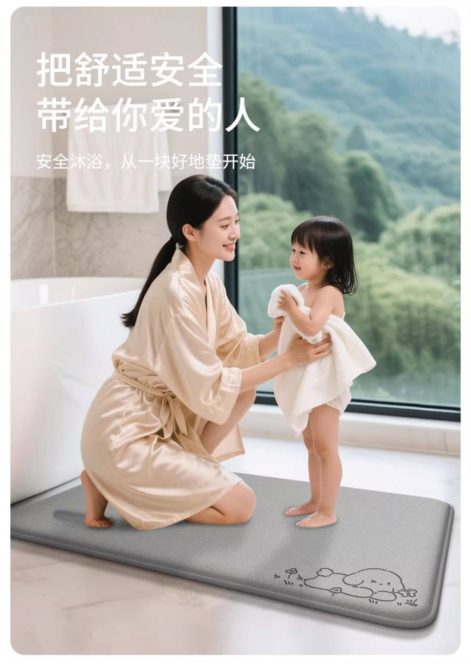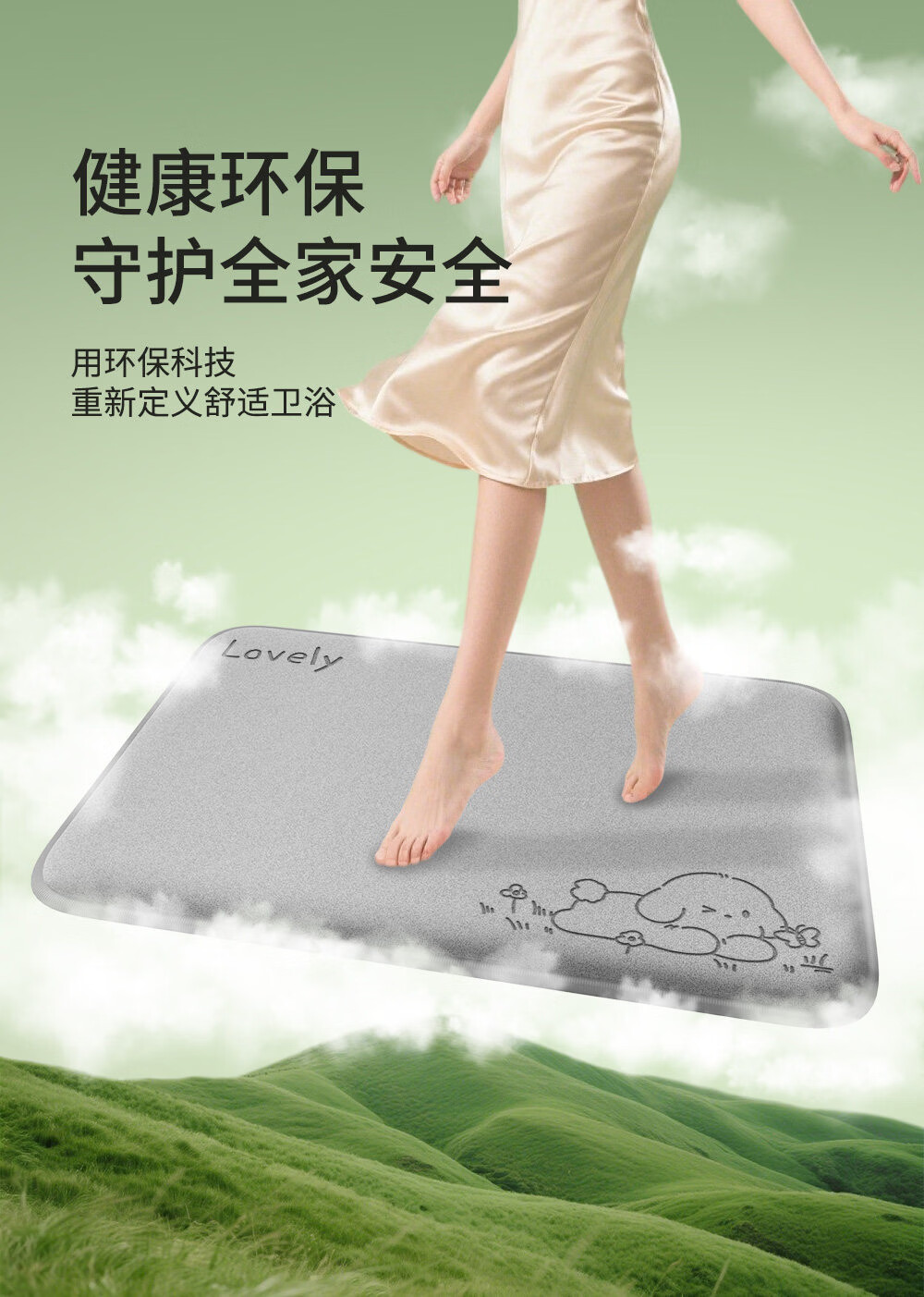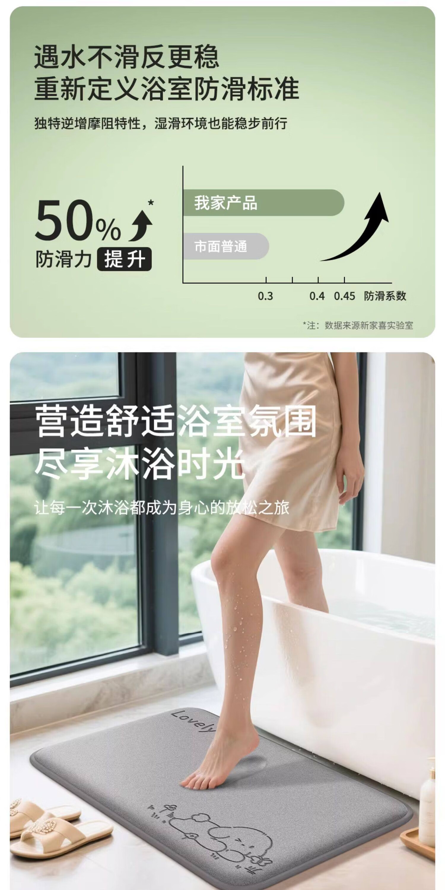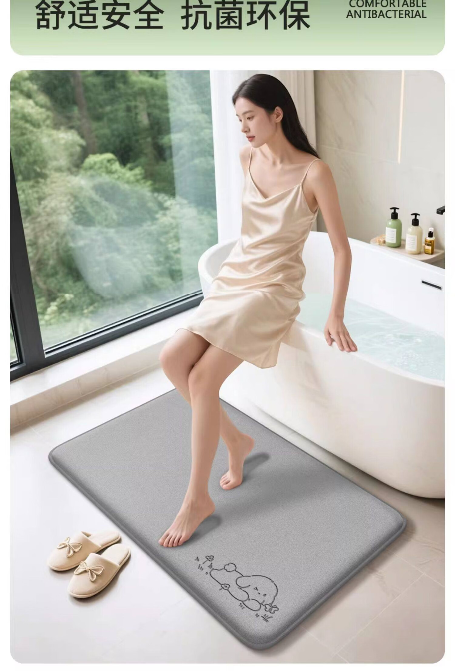 GERTHRON德国卫生间吸水地垫2026新款浴室脚垫防滑进门口加厚耐脏免洗垫子 幸运小狗-灰色【抗菌速干 超厚超吸水】 70cm*45cm