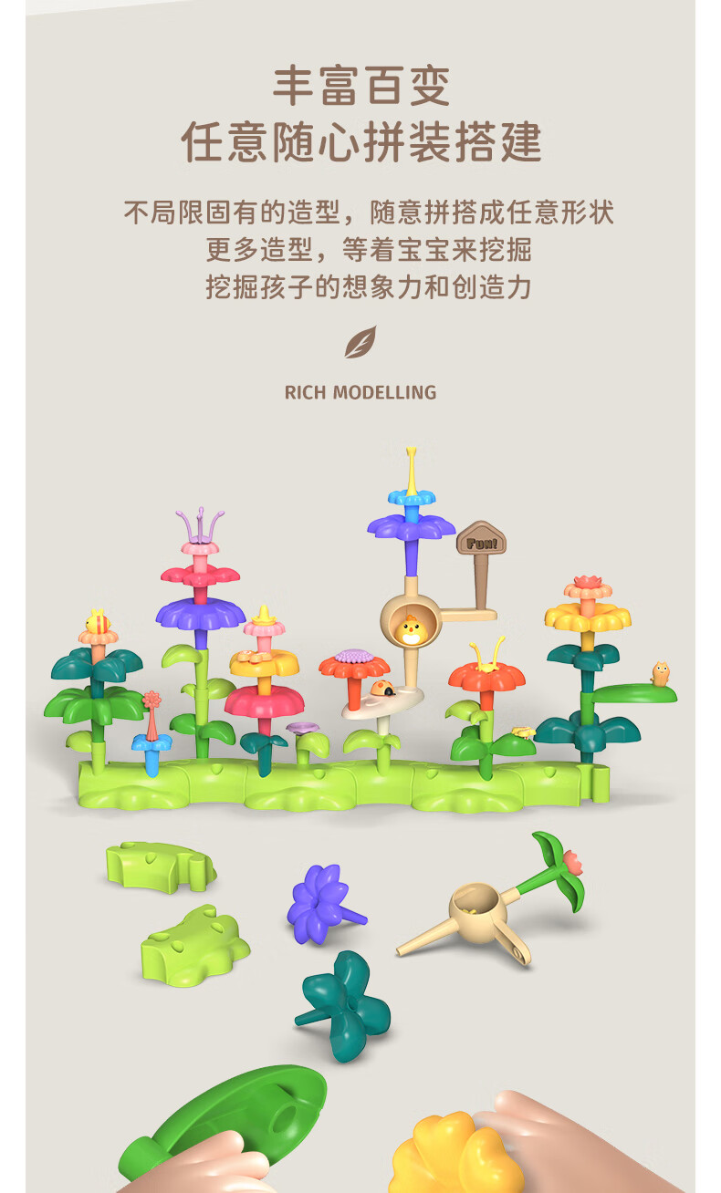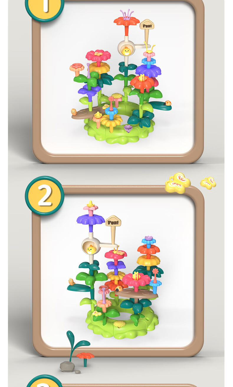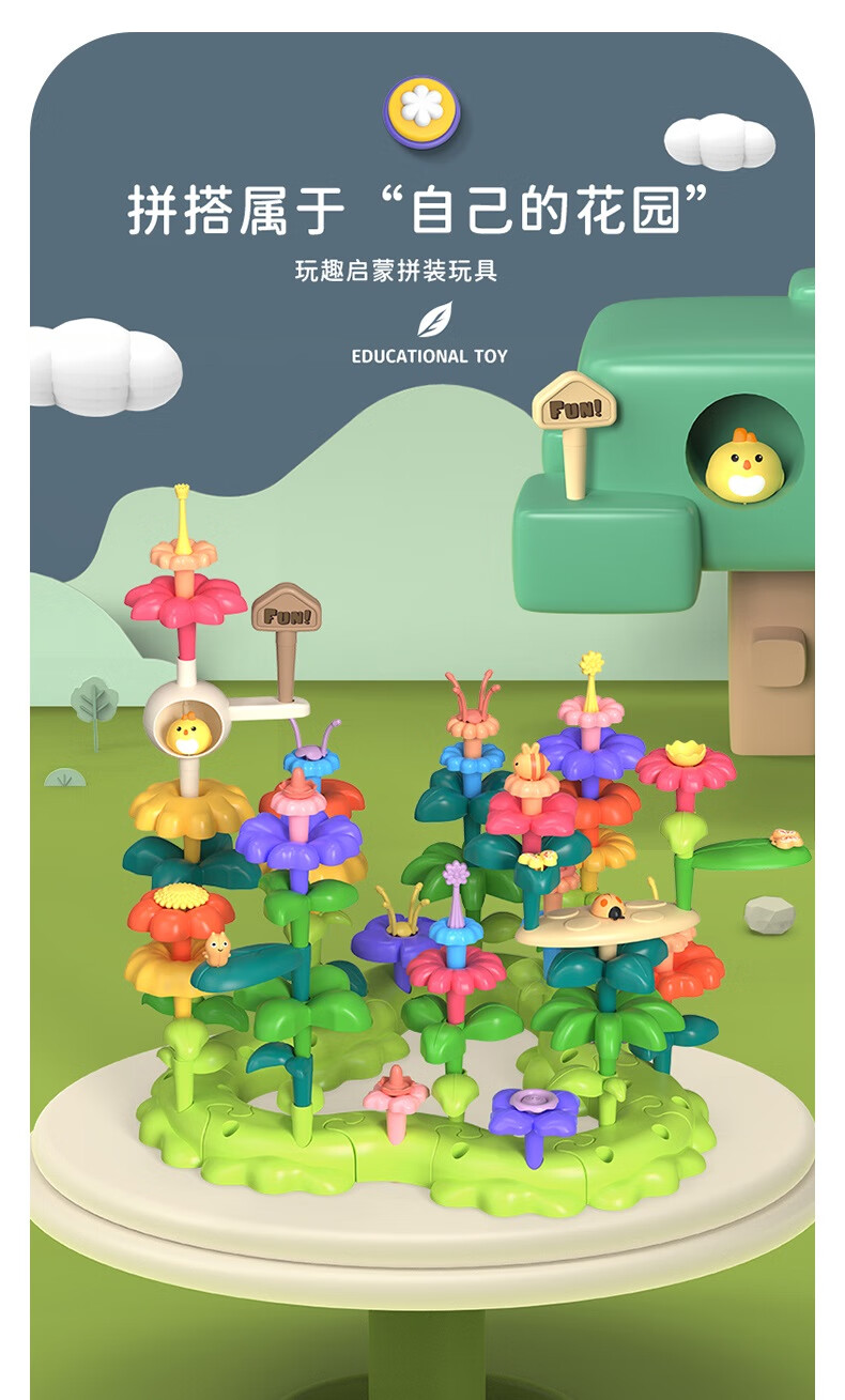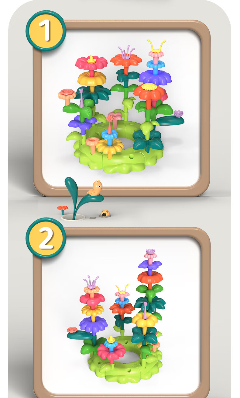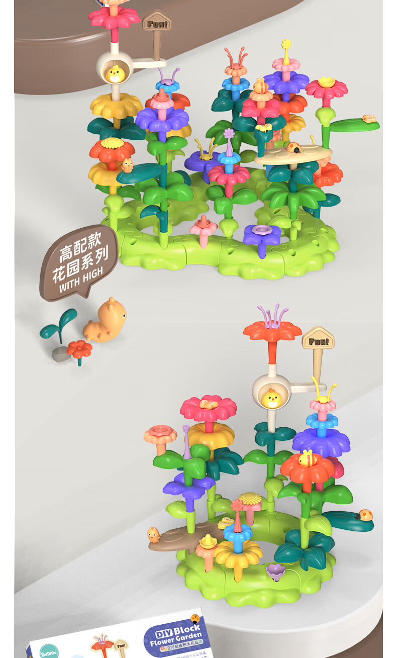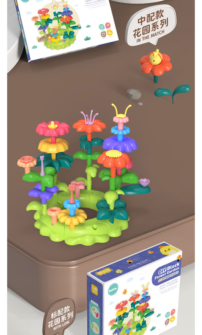 乐乐鱼(leleyu)拼装积木百变花园DIY插花大颗粒儿童玩具女男孩生日儿童礼物 【彩盒装】DIY积木花园(42片)