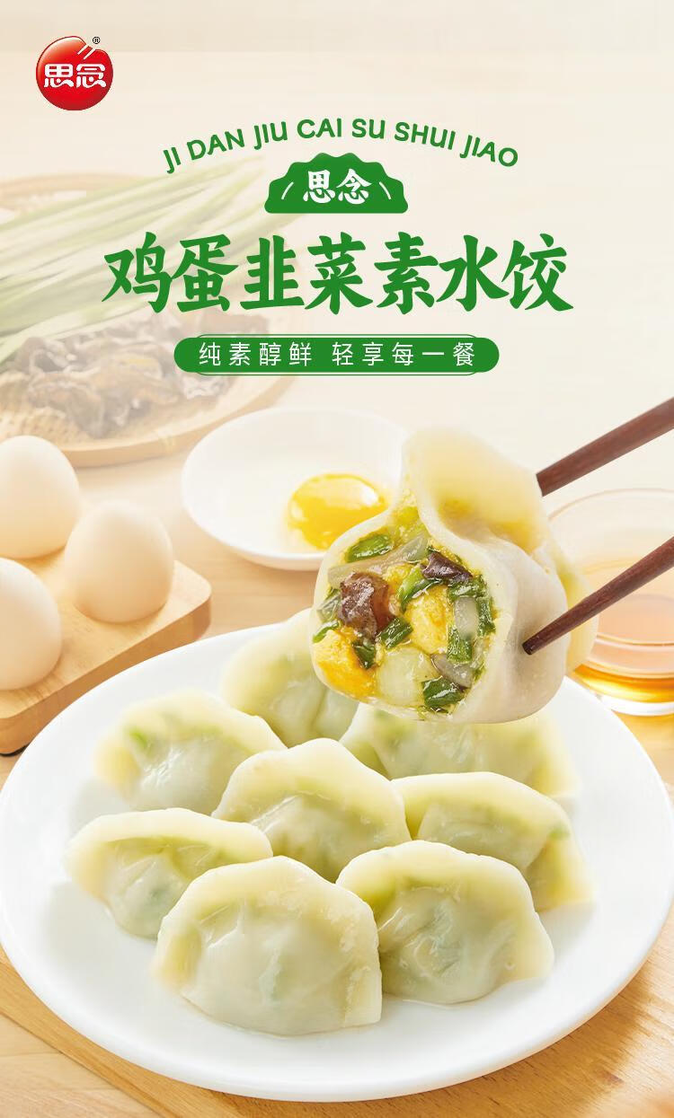思念素水饺韭菜鸡蛋粉条360g*4速冻水饺方便速食煎饺蒸饺囤货京东冷链 360g韭菜鸡蛋水饺*2+素三鲜*2