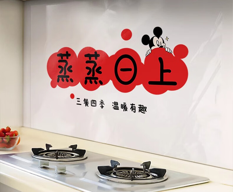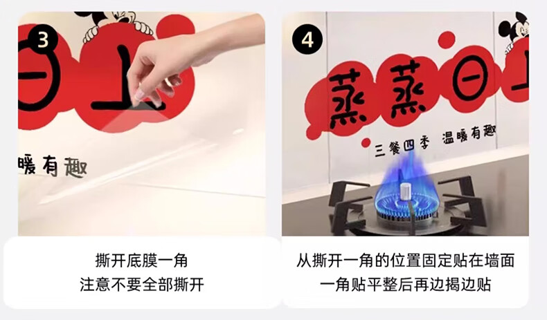 胖东来同款厨房贴纸 厨房防油贴纸蒸蒸日上灶台防水静电墙贴防火 静电款【蒸蒸日上A】撕下无胶耐高温 小号30cm X 90cm