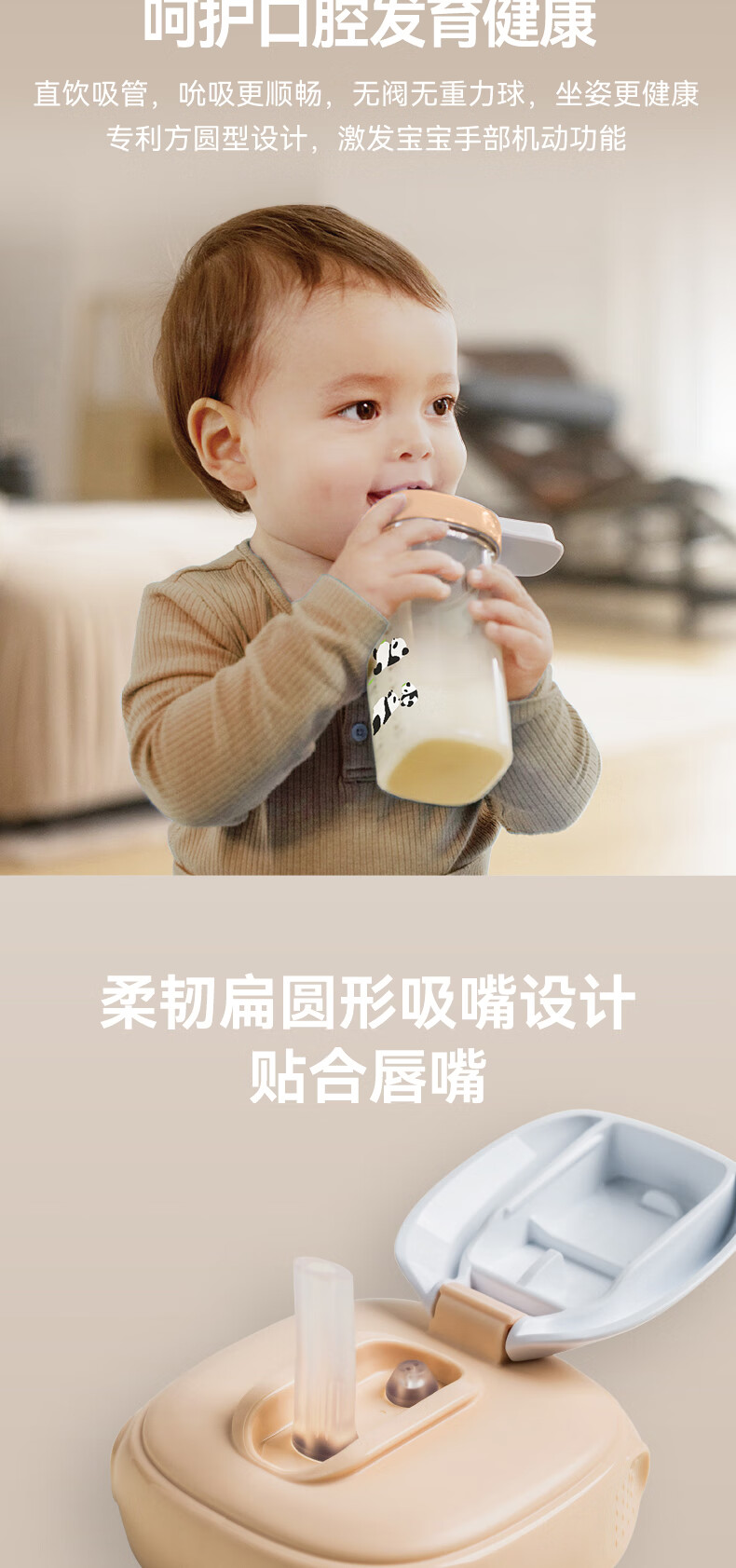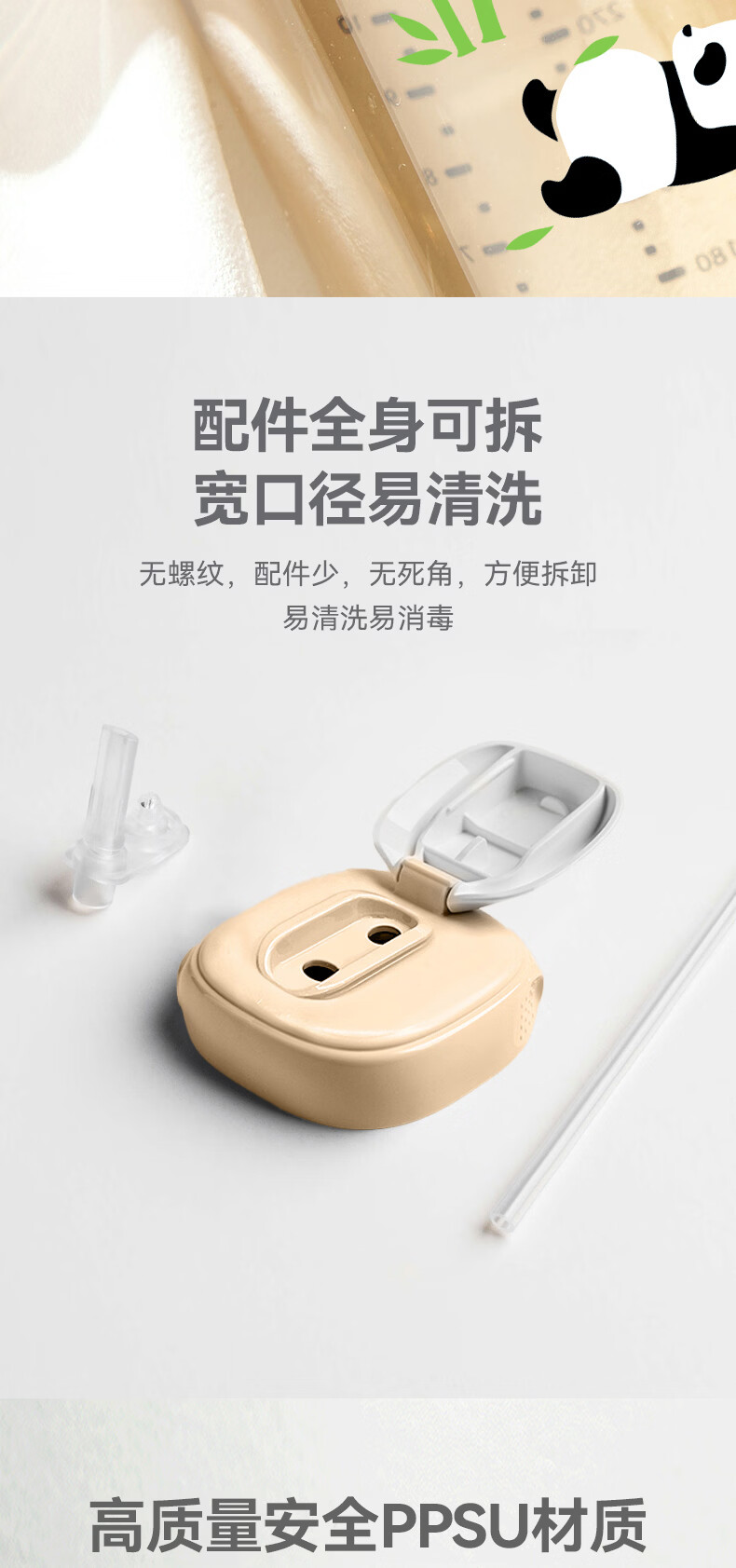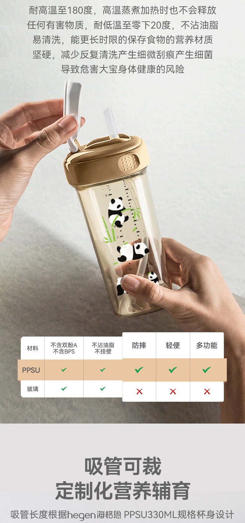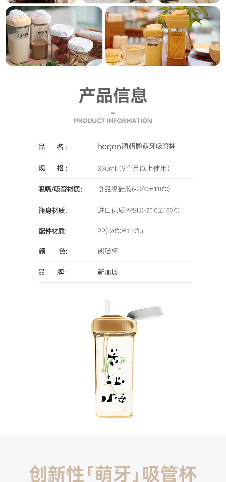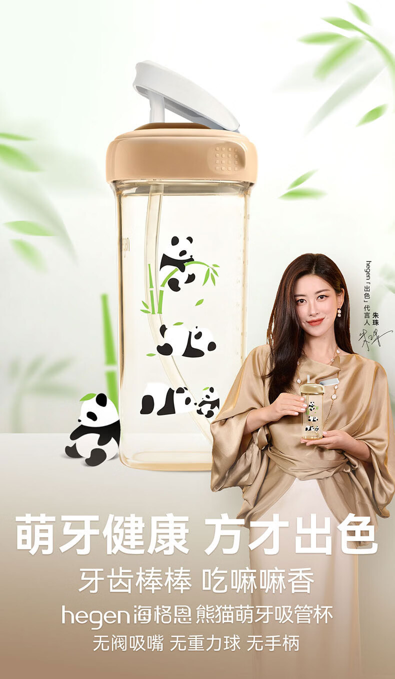 HEGEN海格恩熊猫萌牙吸管杯1-3岁330ml儿童PPSU多功能直饮喝水杯
