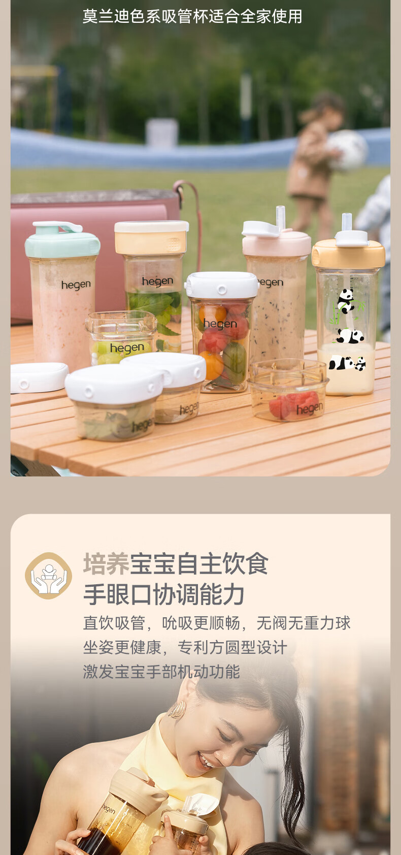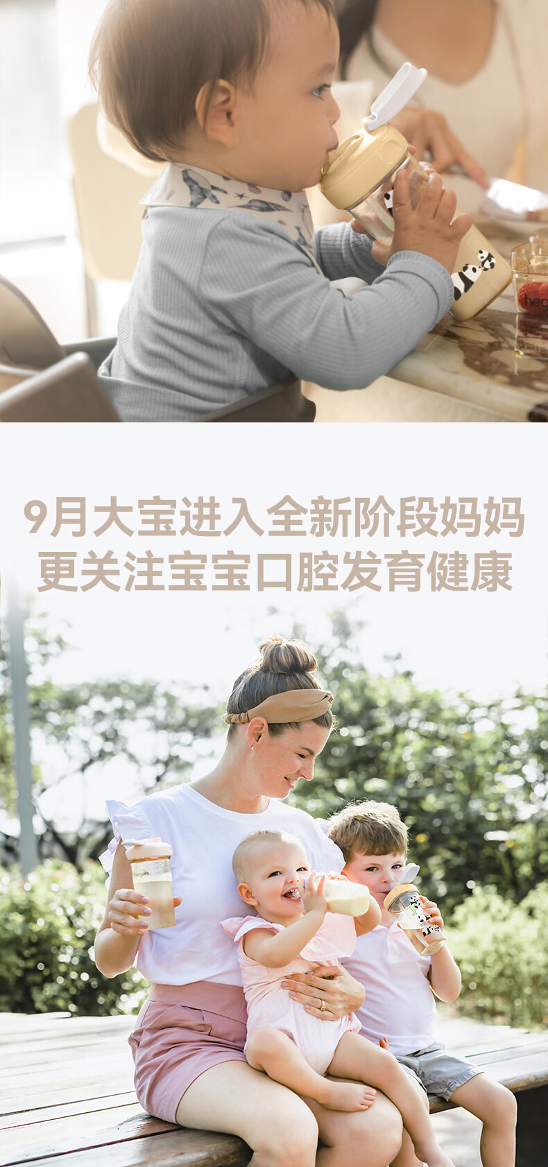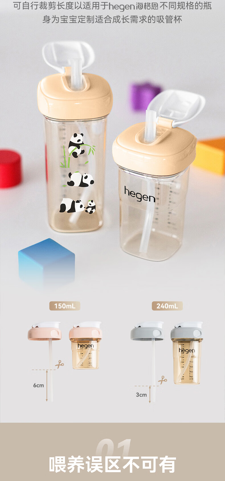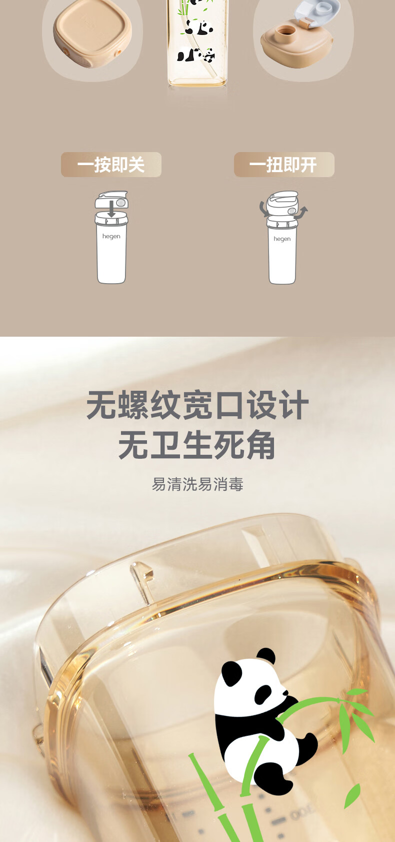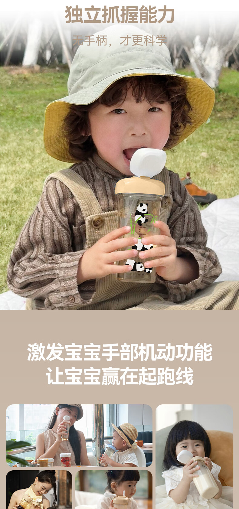 HEGEN海格恩熊猫萌牙吸管杯1-3岁330ml儿童PPSU多功能直饮喝水杯