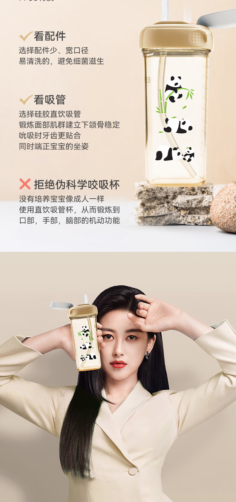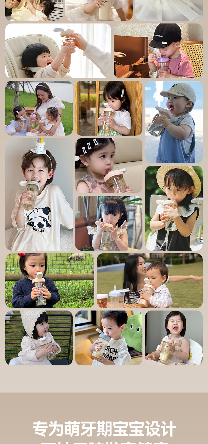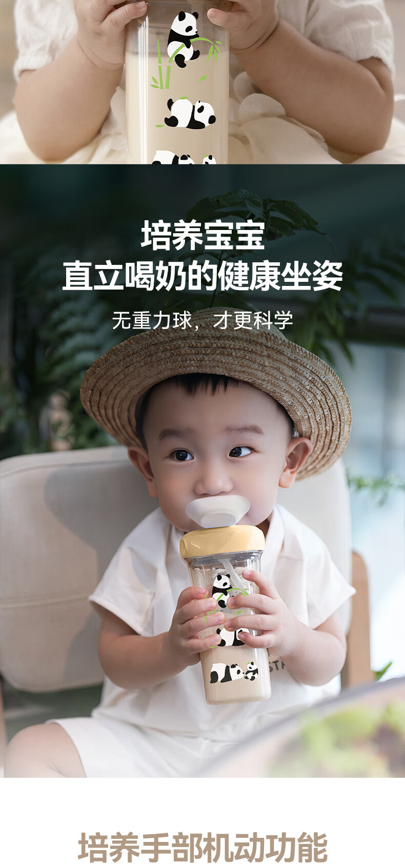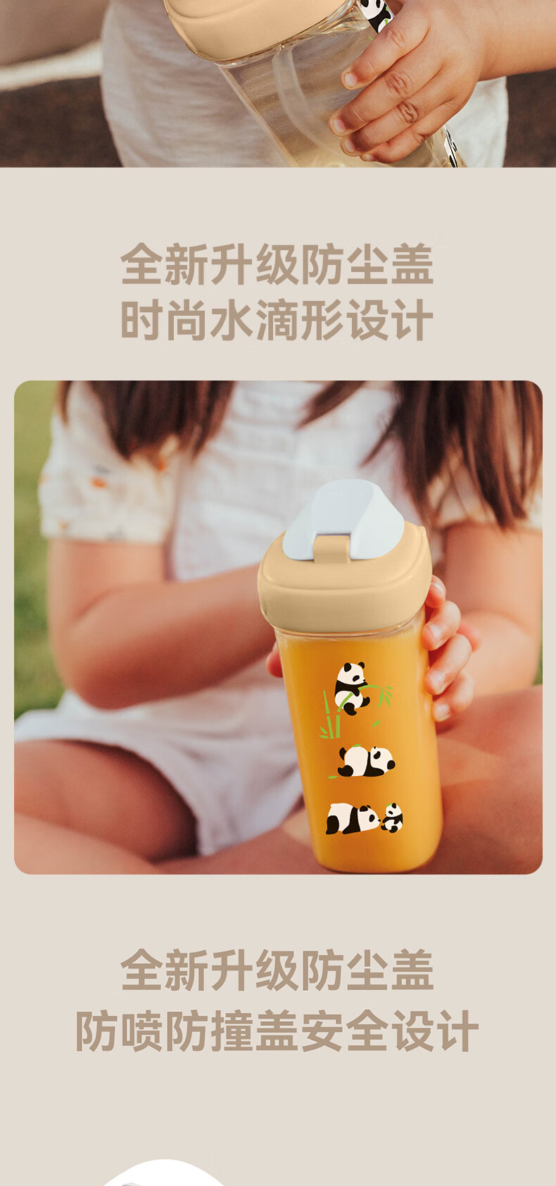 HEGEN海格恩熊猫萌牙吸管杯1-3岁330ml儿童PPSU多功能直饮喝水杯