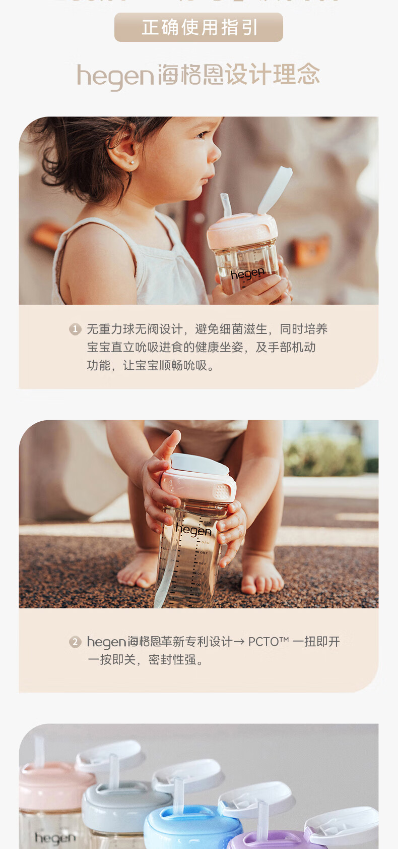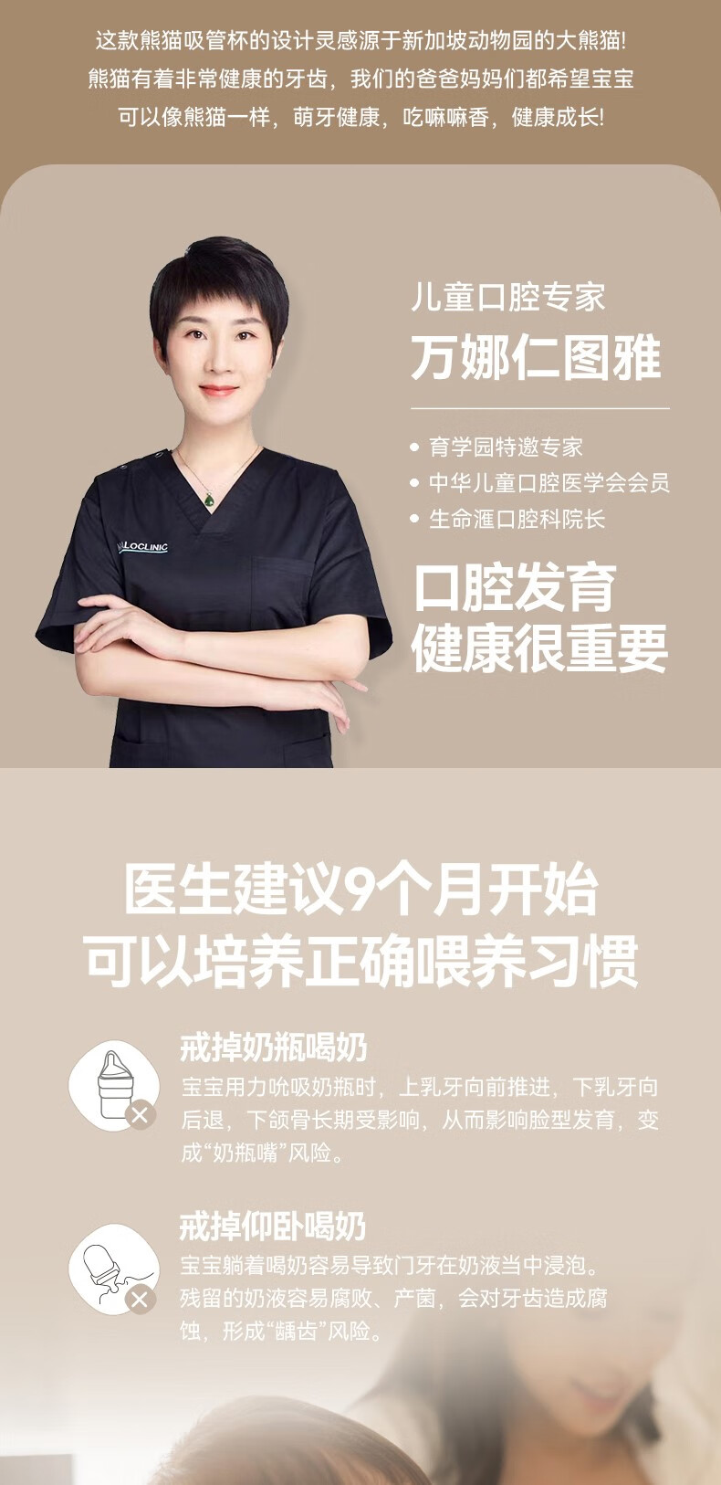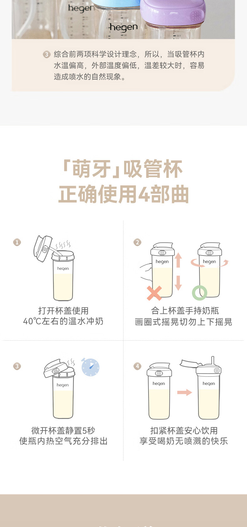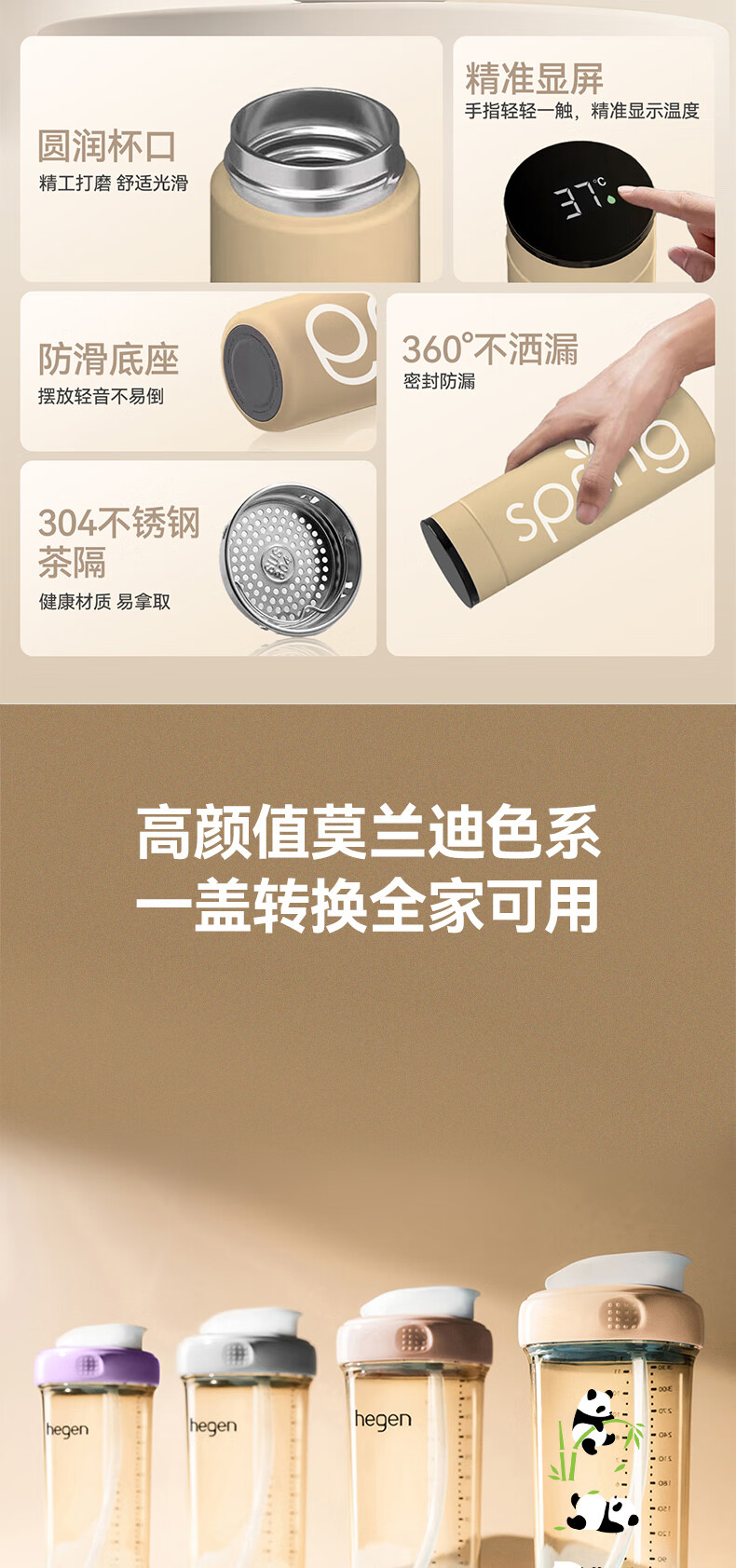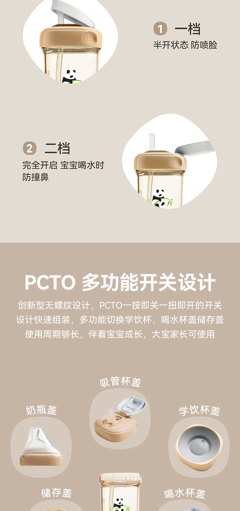 HEGEN海格恩熊猫萌牙吸管杯1-3岁330ml儿童PPSU多功能直饮喝水杯