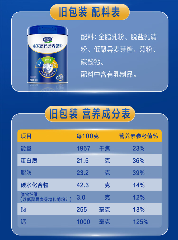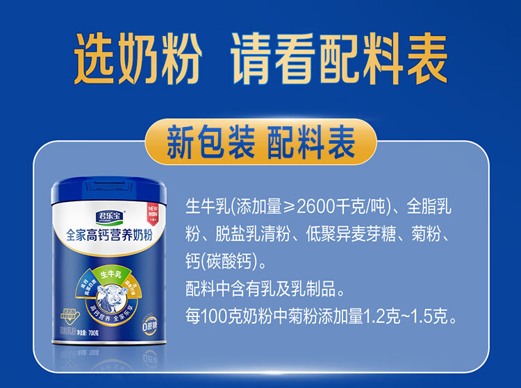 君乐宝全家营养成人学生高钙高蛋白质含膳食纤维中老年奶粉礼盒700g*2