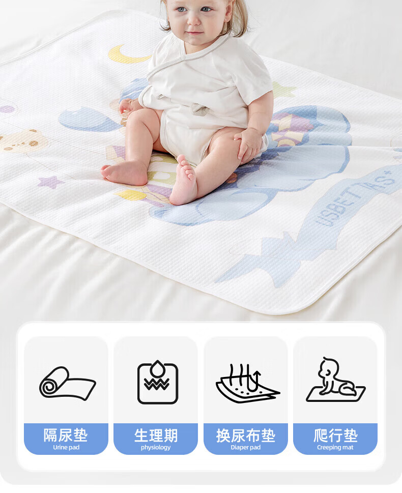 贝肽斯隔尿垫婴儿可水洗宝宝幼儿园纯棉隔尿床单护理垫防水透气 布朗象【双面纯棉款】 45x30cm