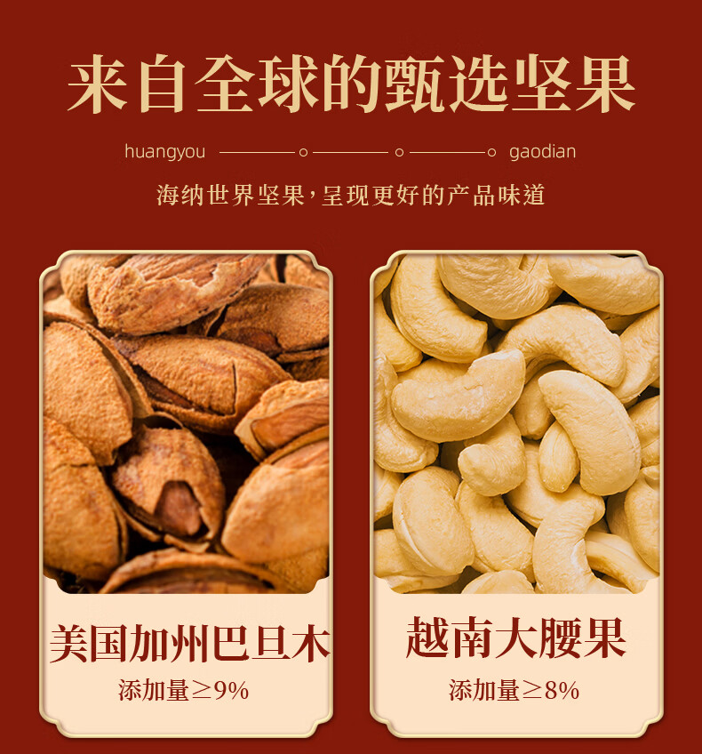 华味亨桶装混合坚果1kg 坚果炒货开心果腰果年货礼盒送礼零食休闲小吃 500g夏威夷果+500g盐焗巴旦木