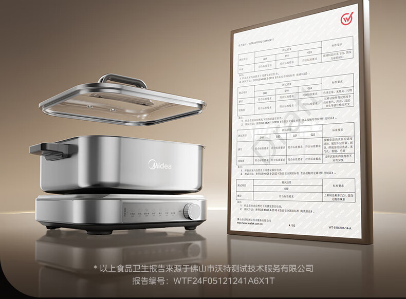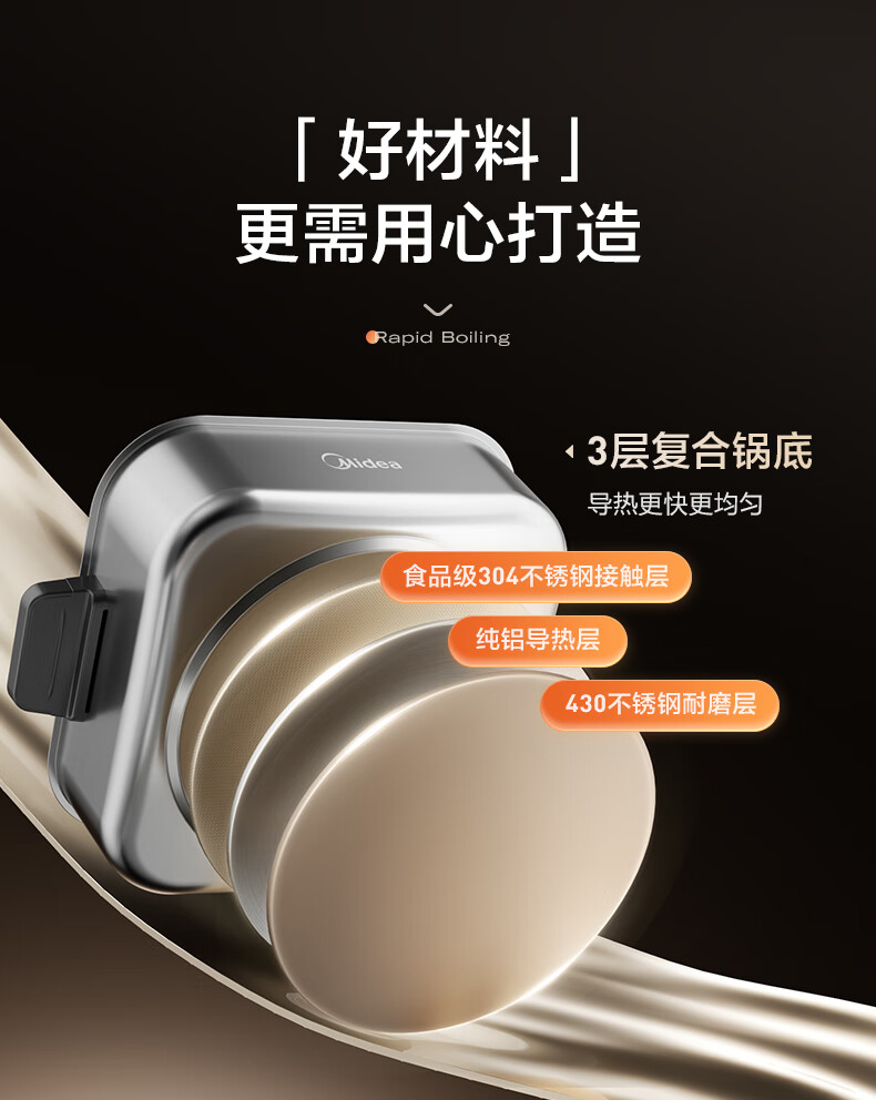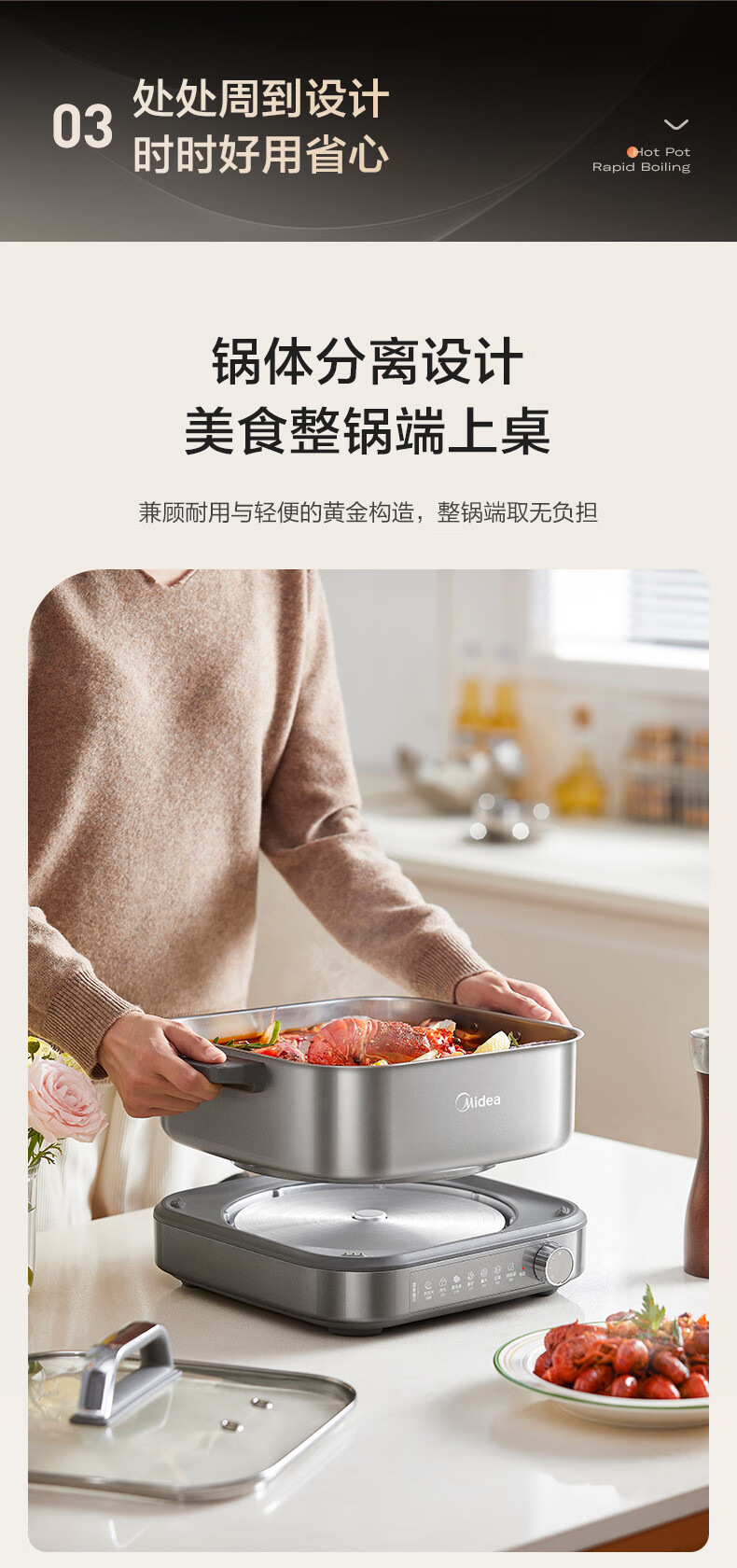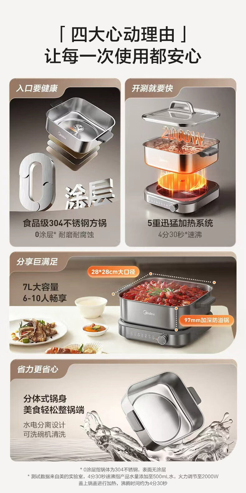 美的(Midea)0涂层电火锅电煮锅不锈钢速沸火锅专用锅分体可拆电热锅多功能锅7L多功能锅HGS3030G3