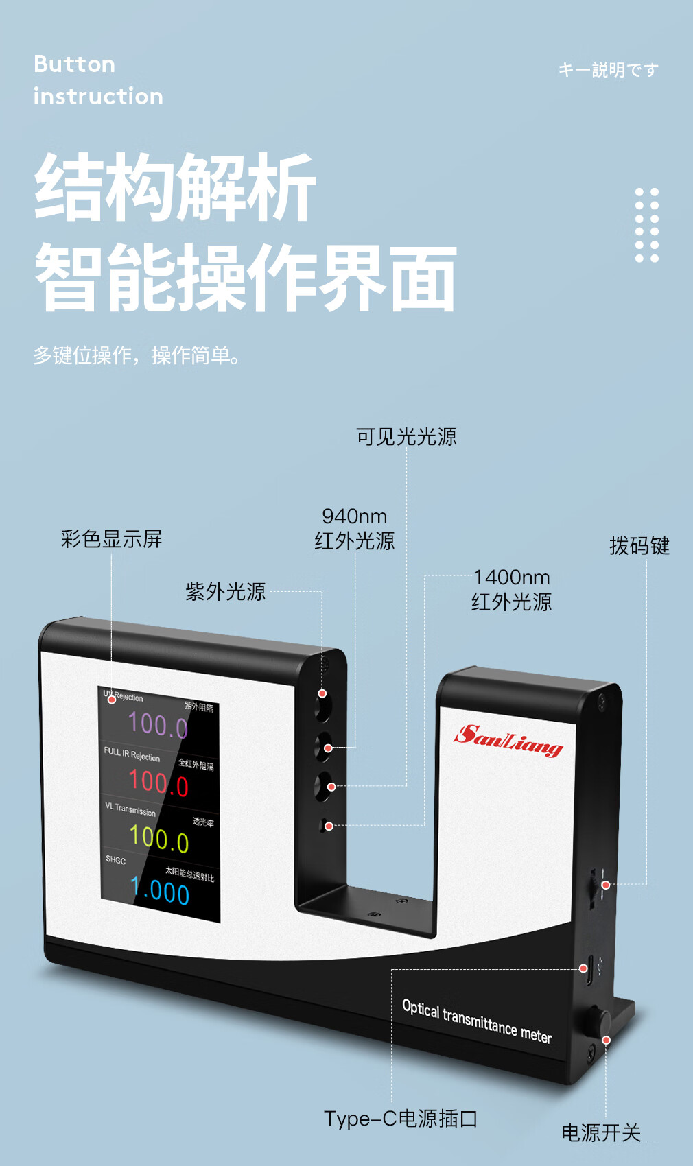 三量(sanliang)三量光学透过率仪油墨ir红外透光检测玻璃透光率计检测仪器 TM310(三光源,三功能,可充电) 无规格