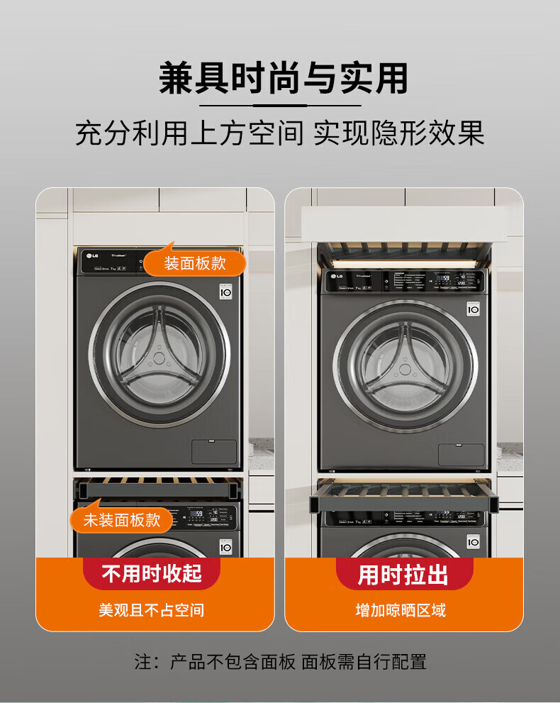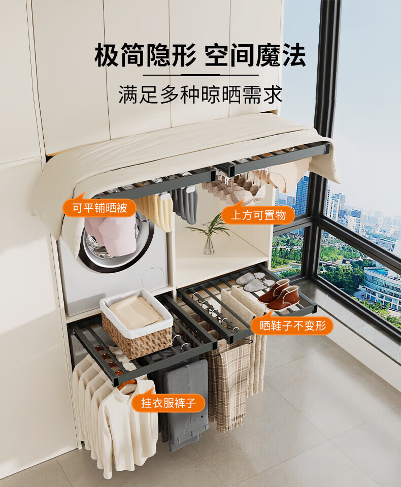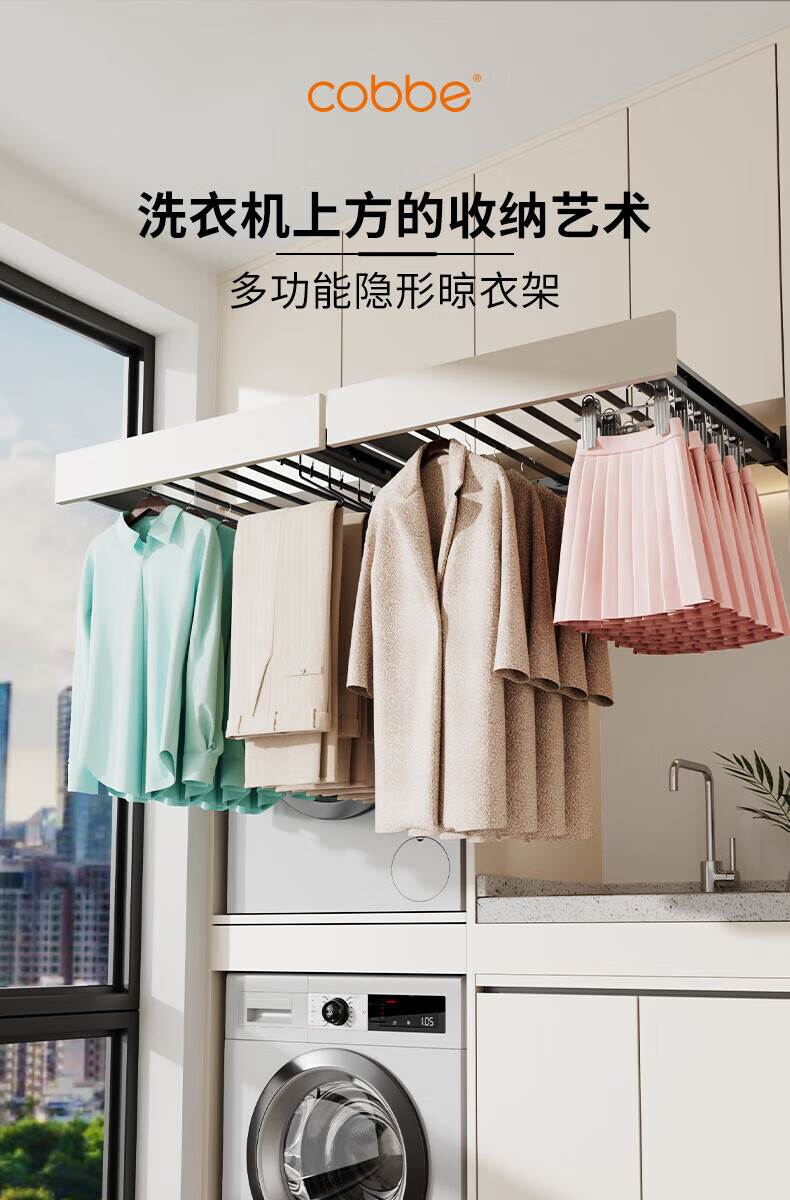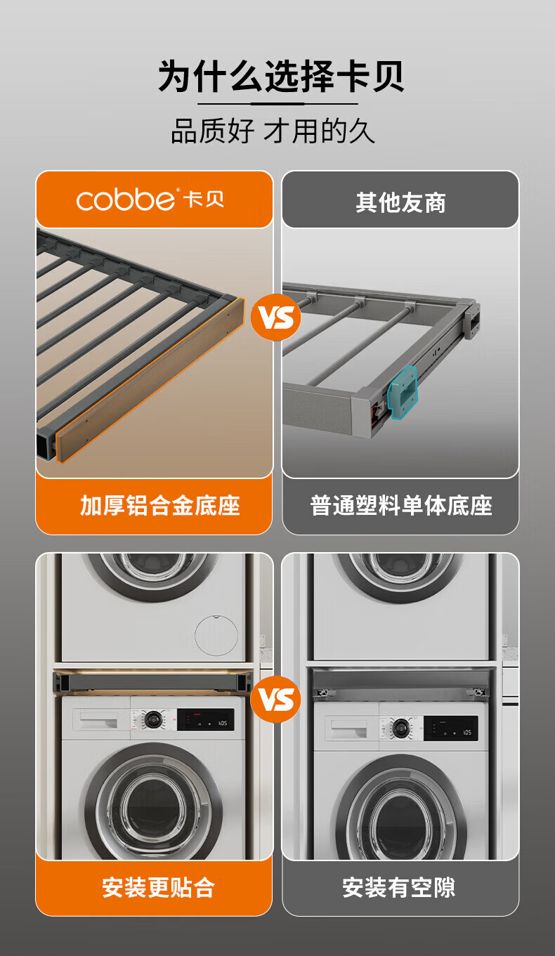 卡贝(cobbe)洗衣机隐形晾衣架抽拉式伸缩收纳架洗烘套装上方阻尼加深裤架 灰色阻尼【安装:宽56.4-61.4,深≥47】 (安装:高≥5)【极窄款】可装面板