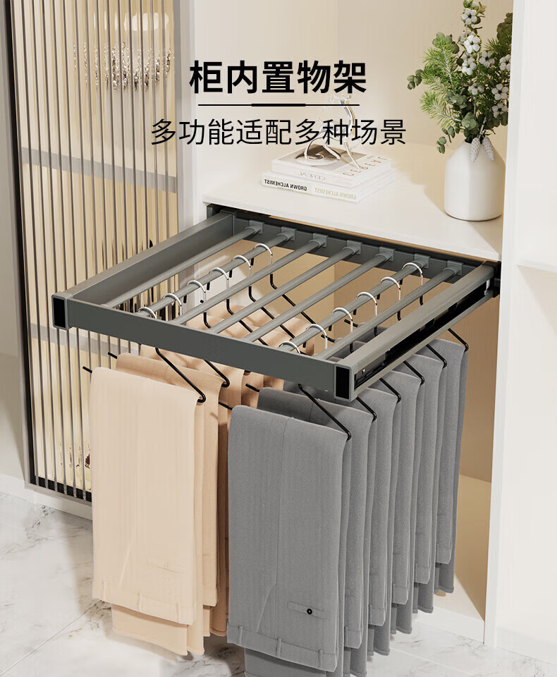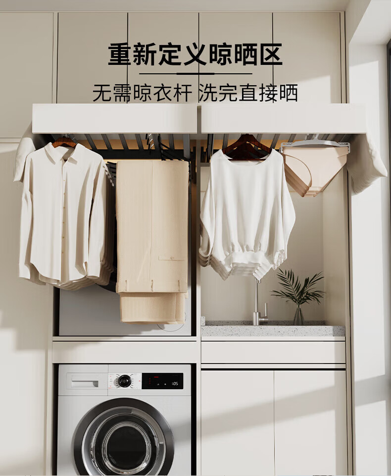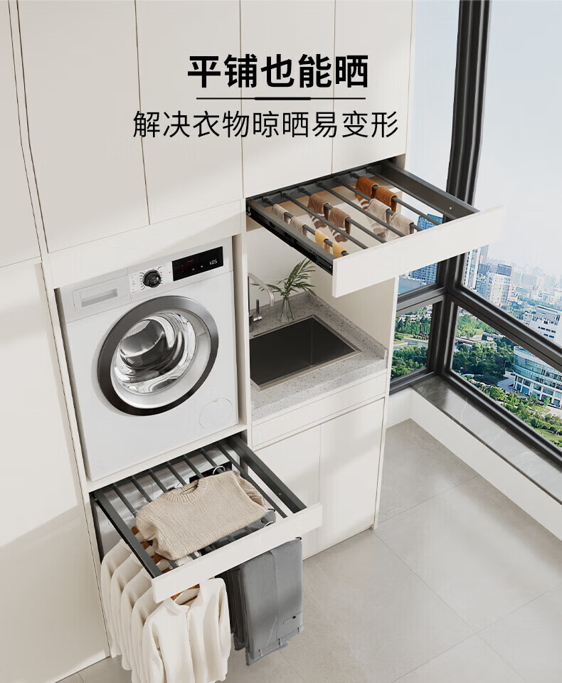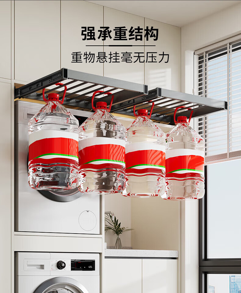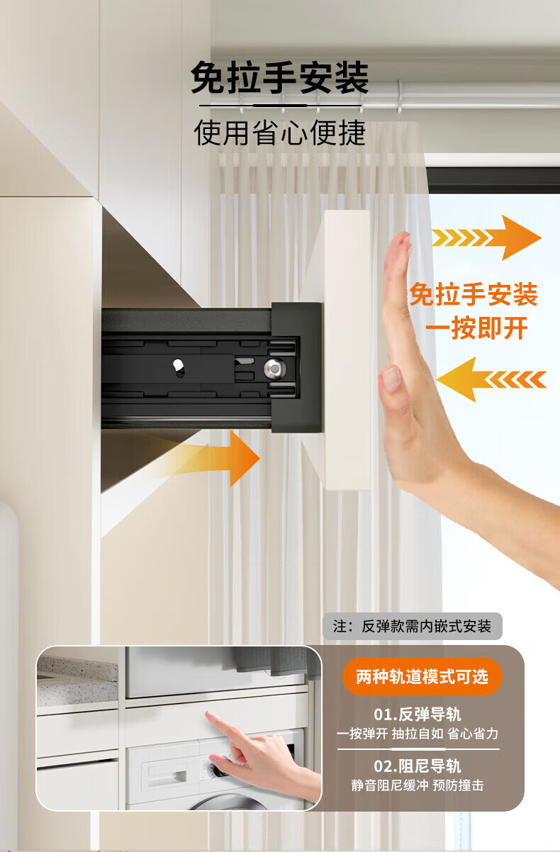卡贝(cobbe)洗衣机隐形晾衣架抽拉式伸缩收纳架洗烘套装上方阻尼加深裤架 灰色阻尼【安装:宽56.4-61.4,深≥47】 (安装:高≥5)【极窄款】可装面板