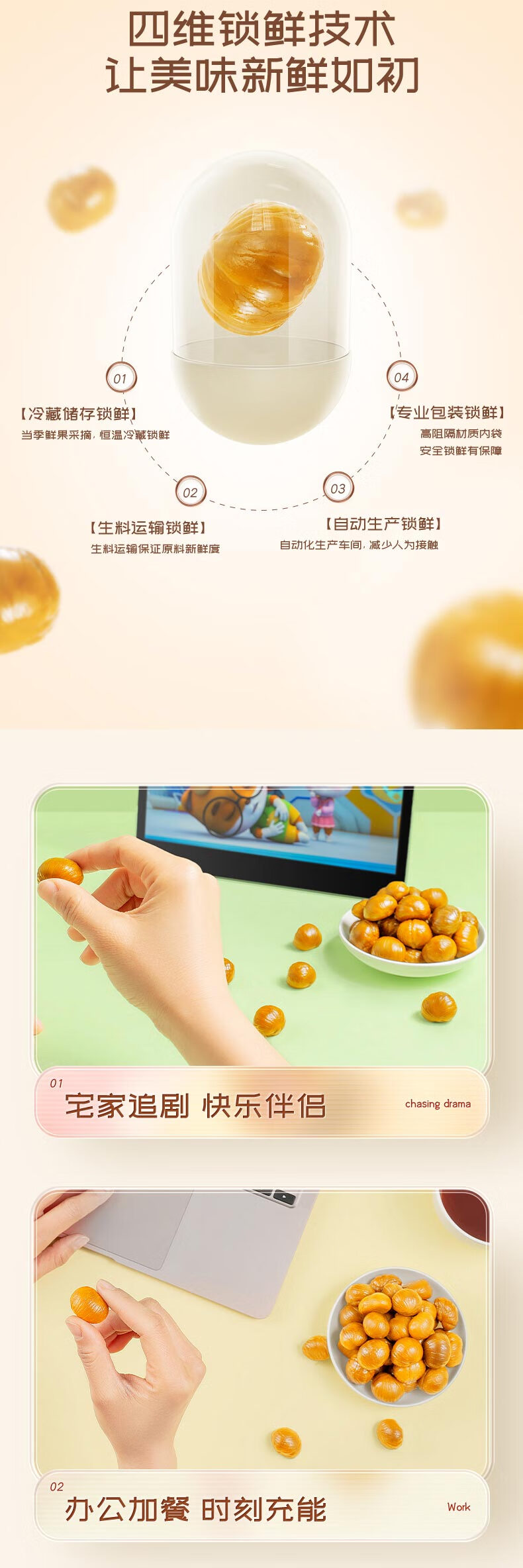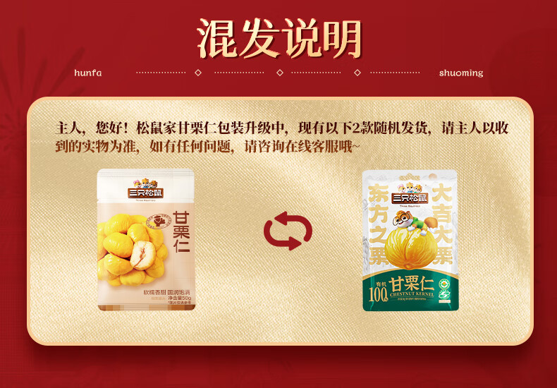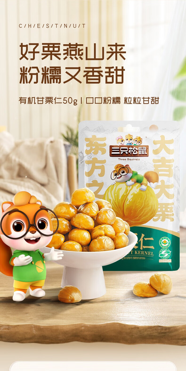三只松鼠甘栗仁50g*4袋 坚果炒货果仁休闲零食品栗子板栗