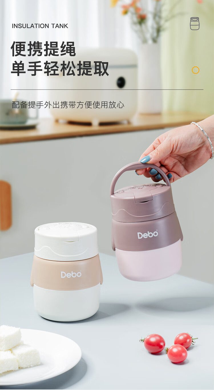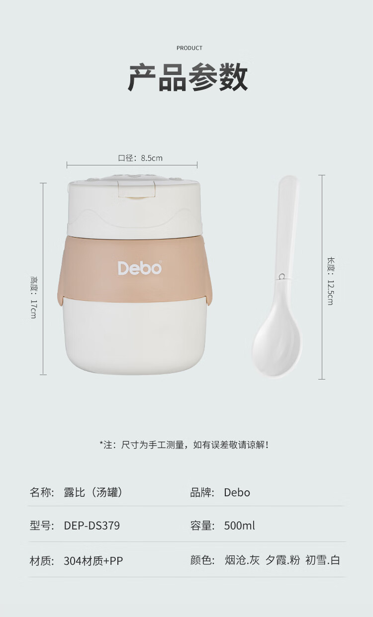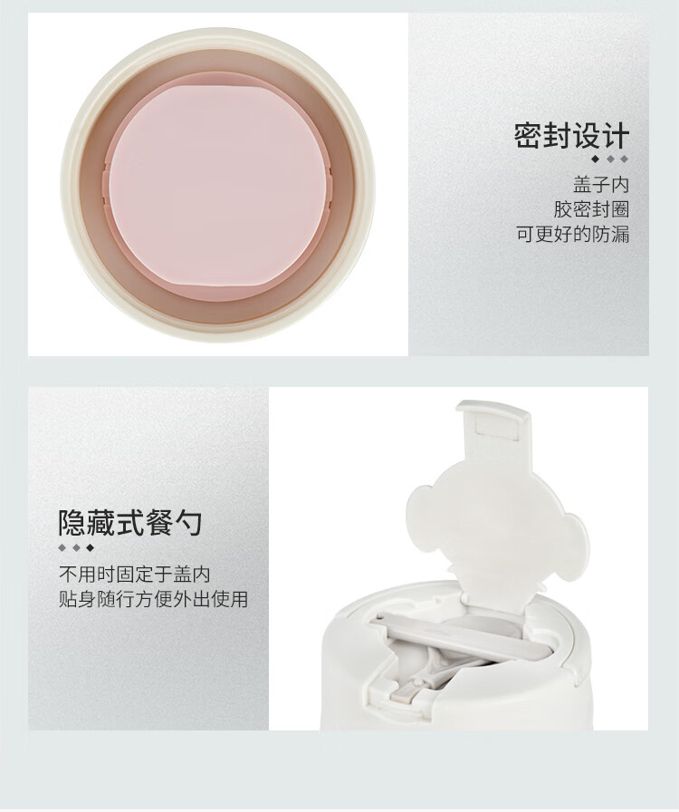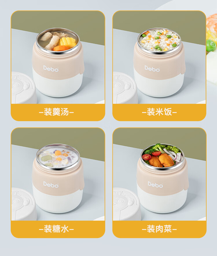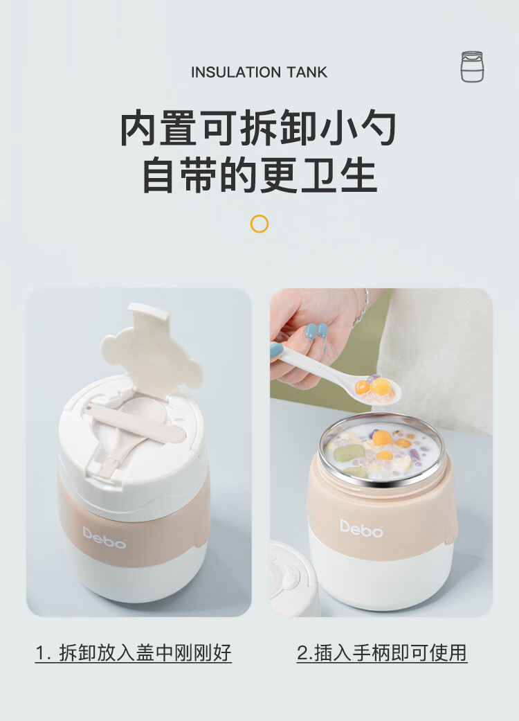 Debo德铂304不锈钢便携早餐杯汤杯带盖上班族餐盒汤罐 露比-灰色-500ml