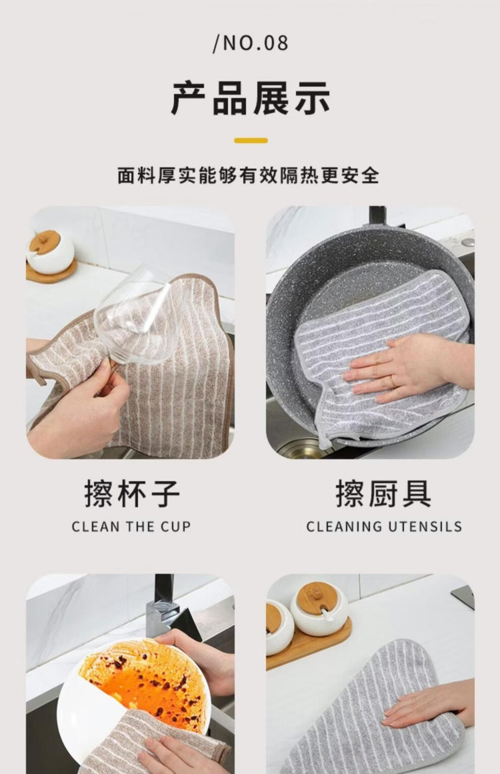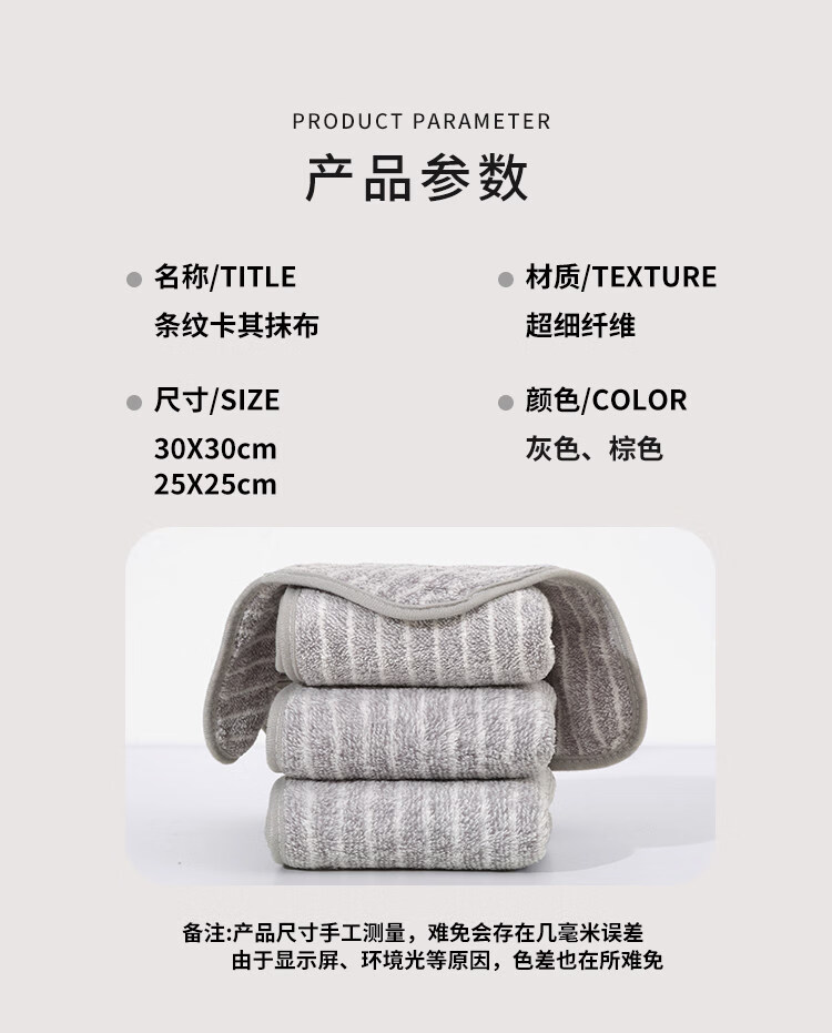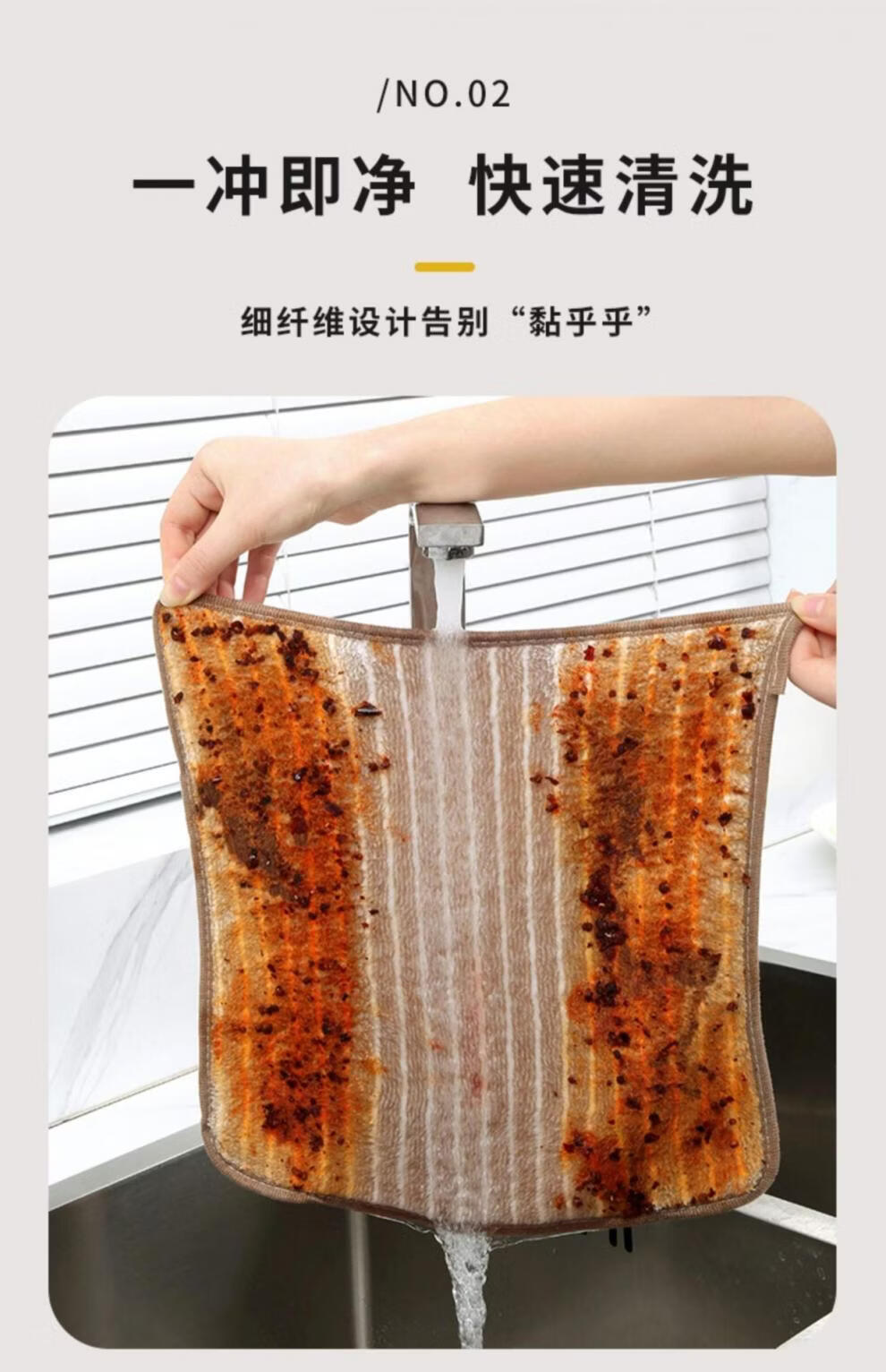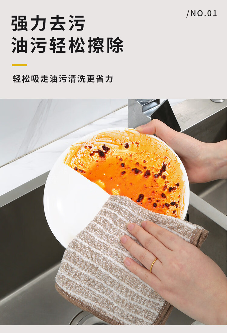 清洁C 石墨烯混色双面10条装 竹炭包边吸水纤维抹布25*25
