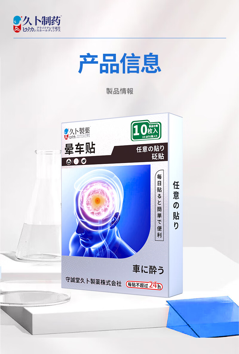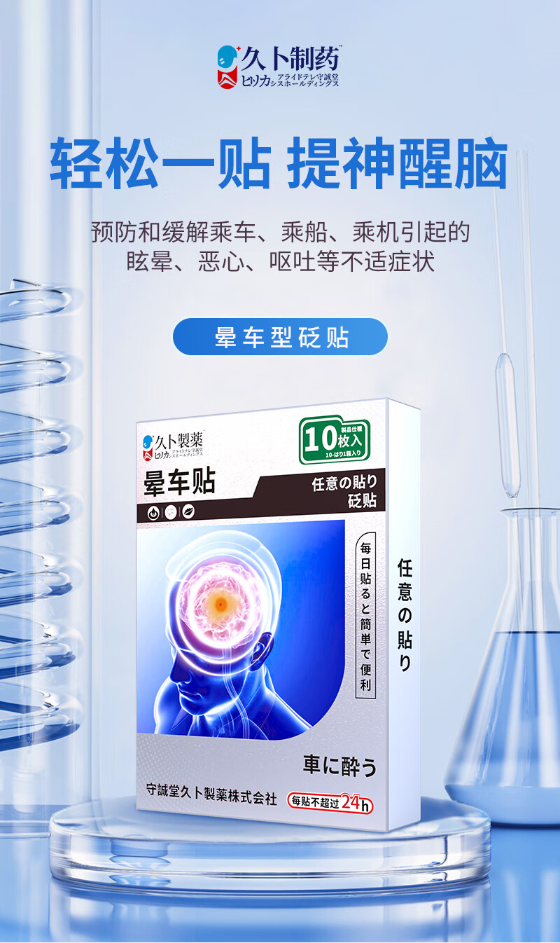 久卜制药晕车贴儿童成人搭配晕车药防恶心呕吐晕船晕机晕车神器 10贴