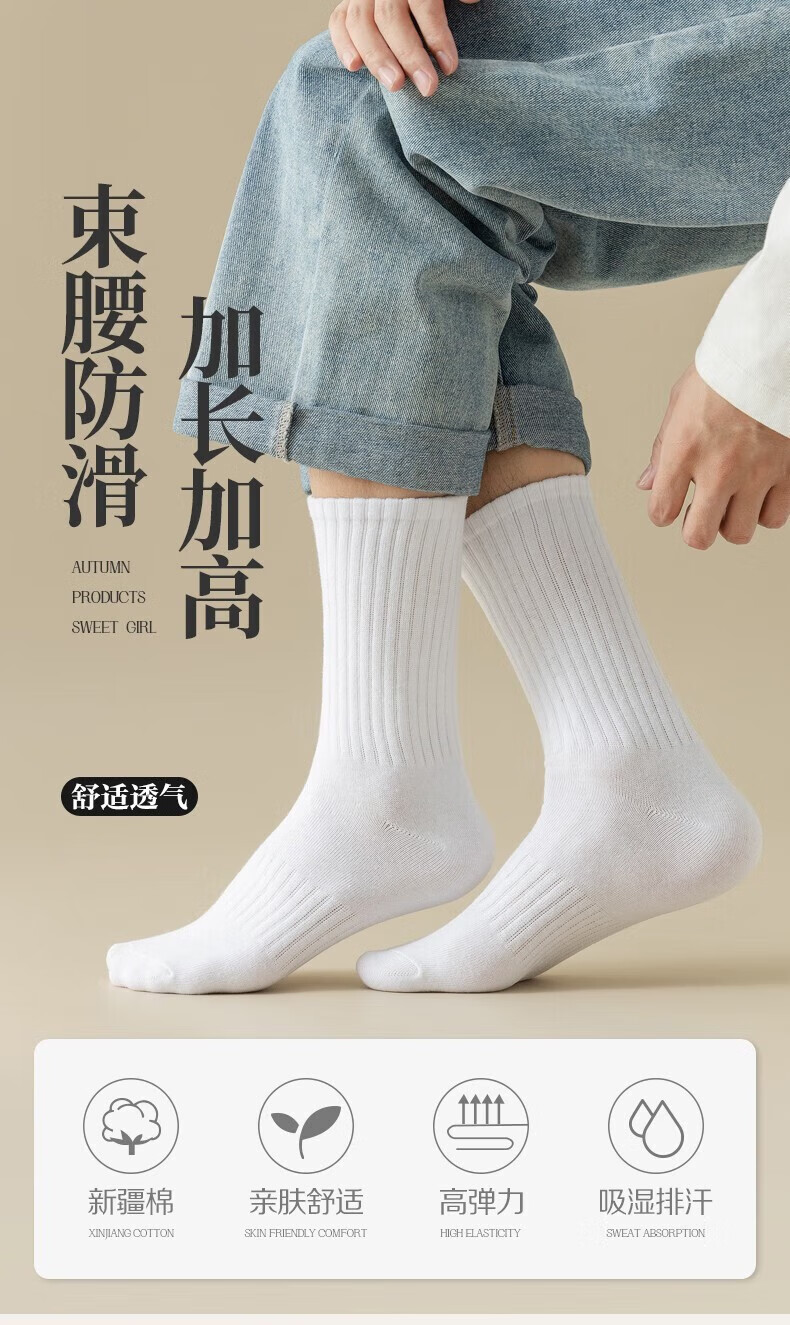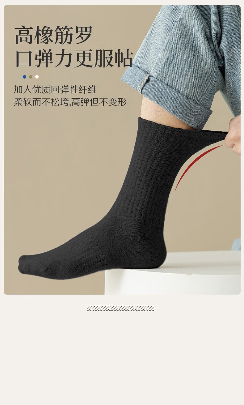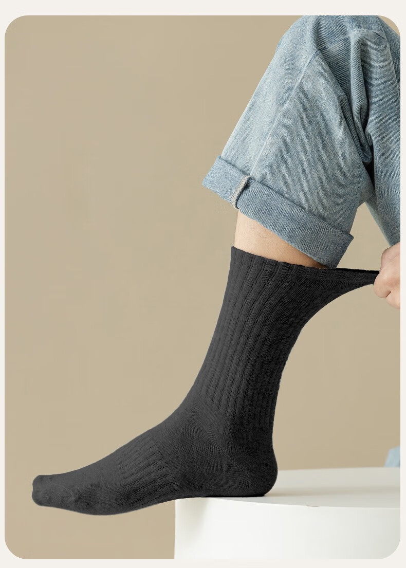 莫代尔5双袜子男长筒新疆棉秋冬10A防臭吸汗白色学生时尚中筒袜四季均码 【 短筒袜】黑色 5双