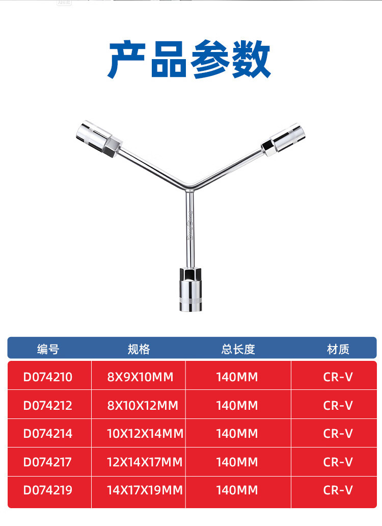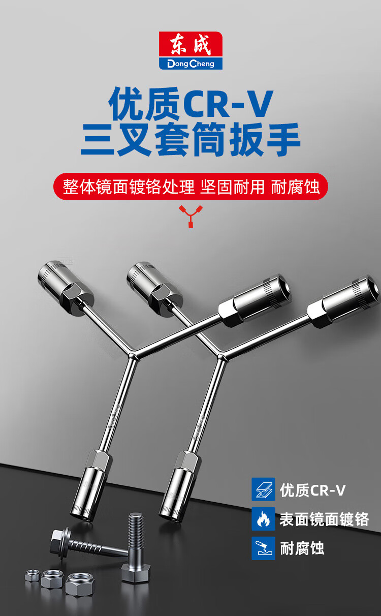 东成 三叉套筒扳手多功能汽修五金工具拆卸专用工具家用维修五金工具 8×9×10mm三叉套筒扳手D074210