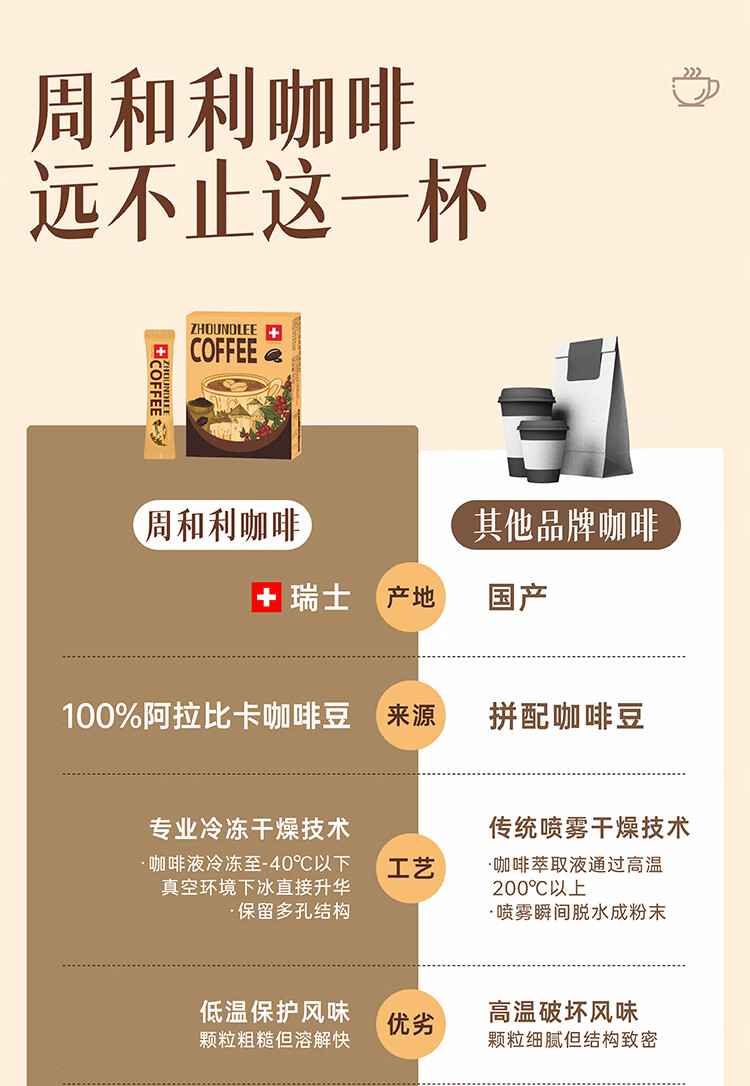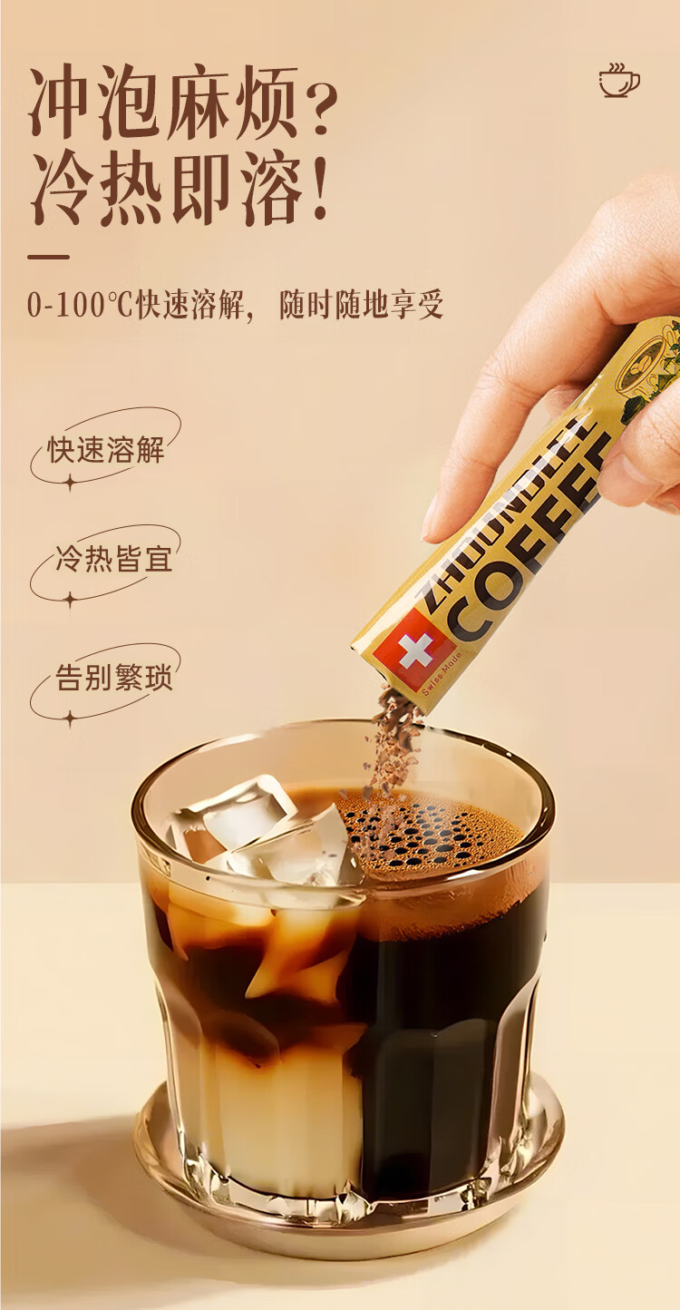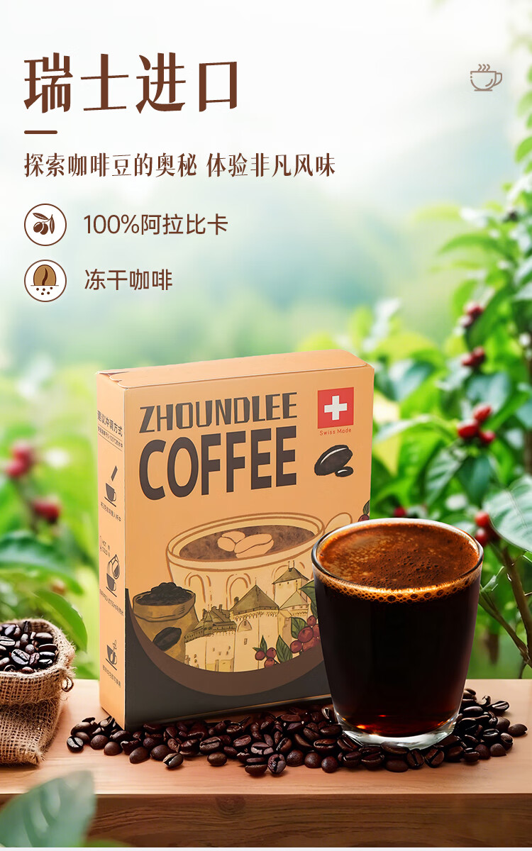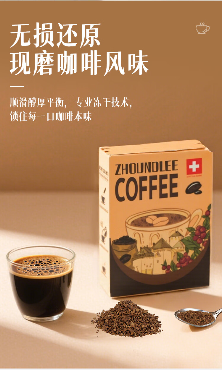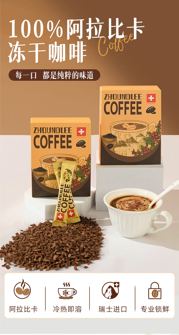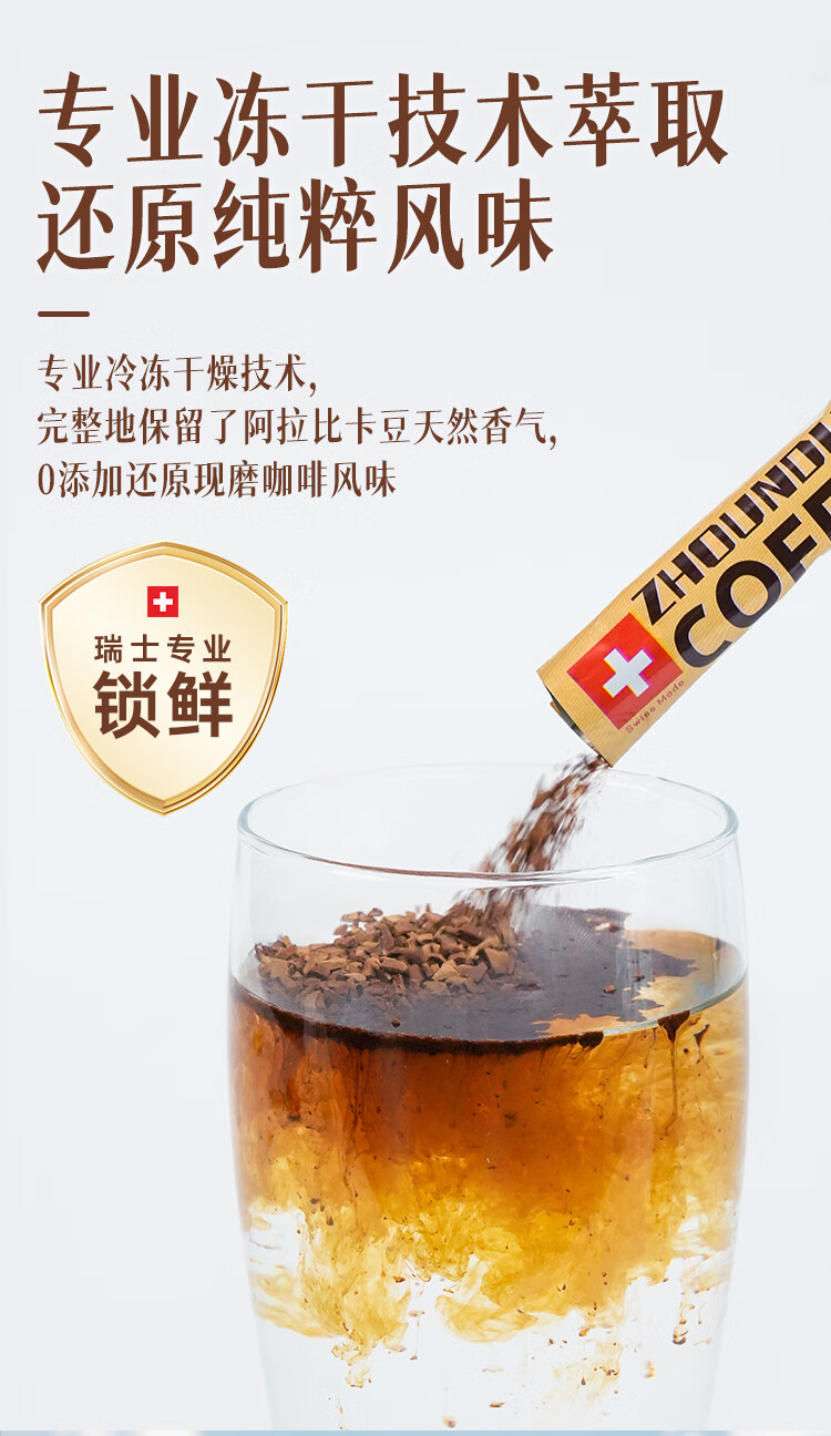 周和利瑞士进口100%阿拉比卡冻干速溶咖啡粉0添加糖美式黑咖啡 冷热即溶【2盒装】
