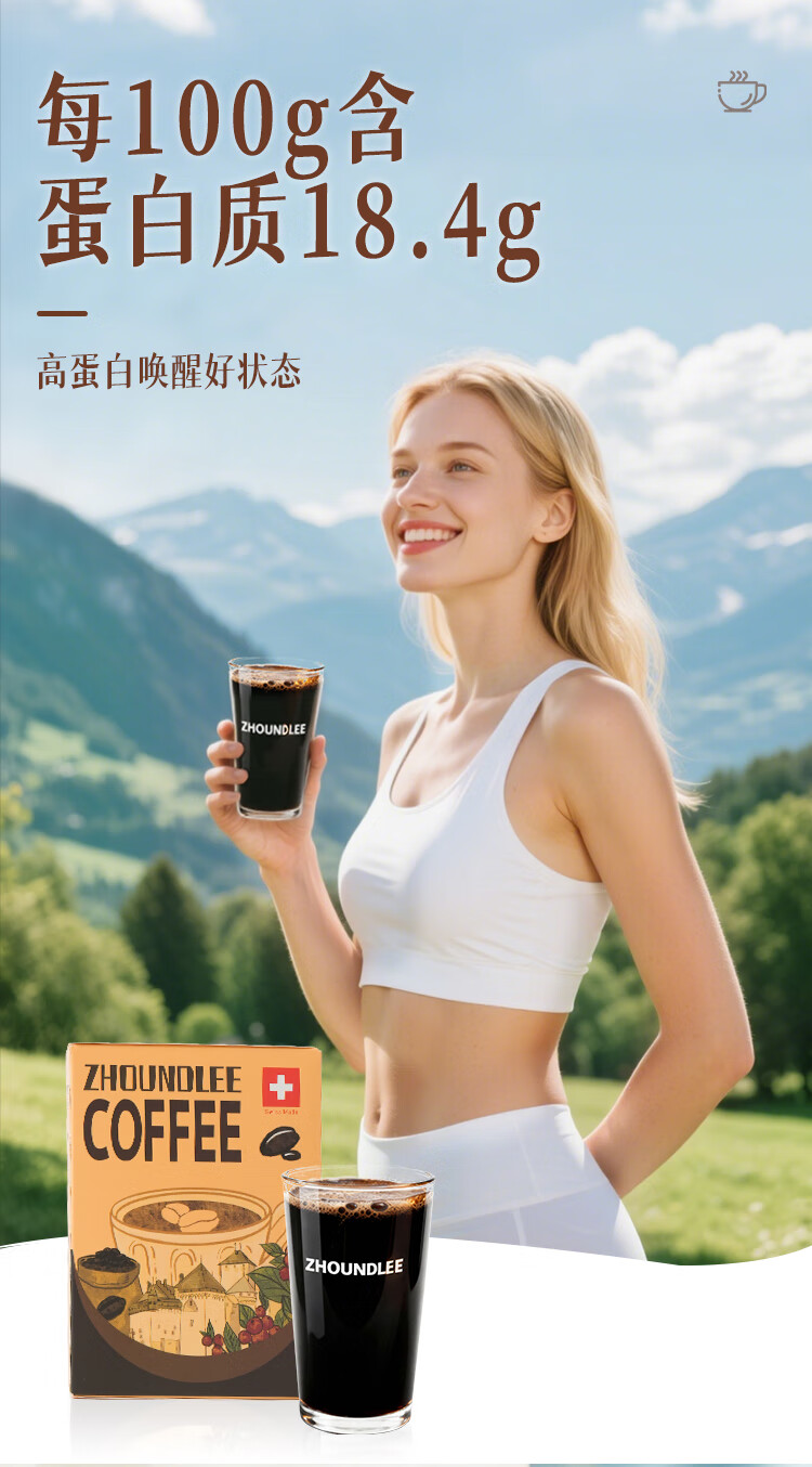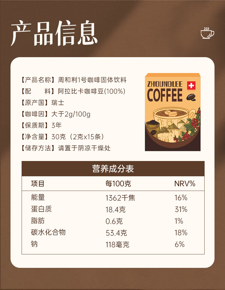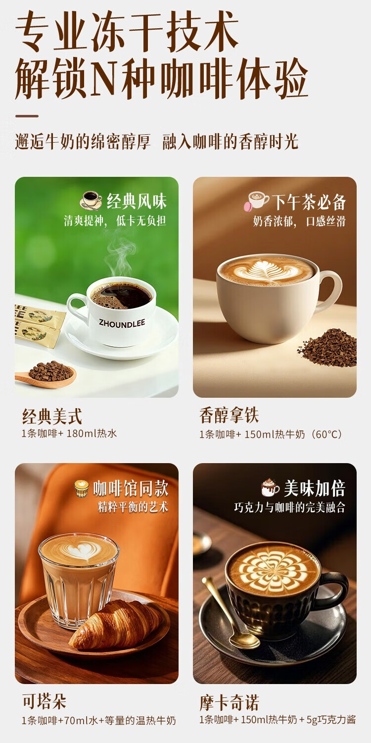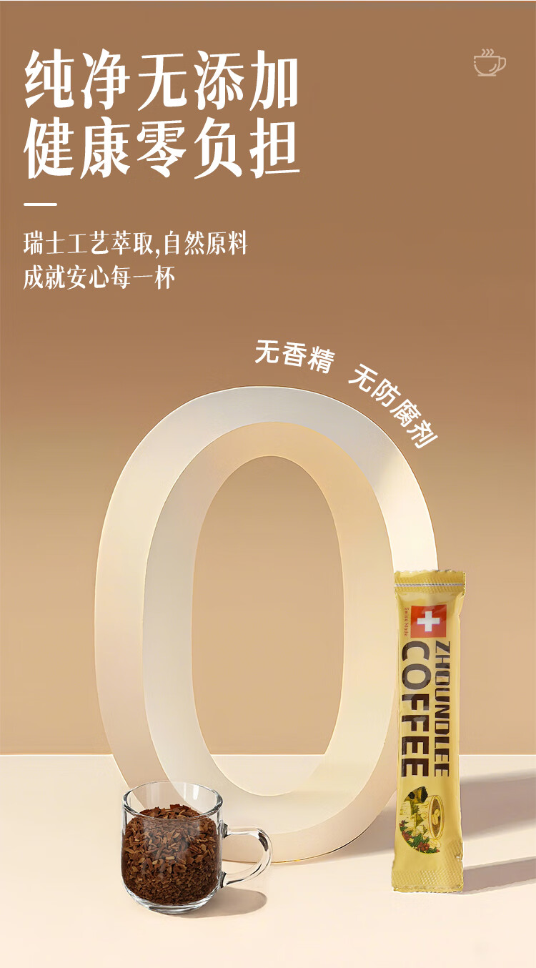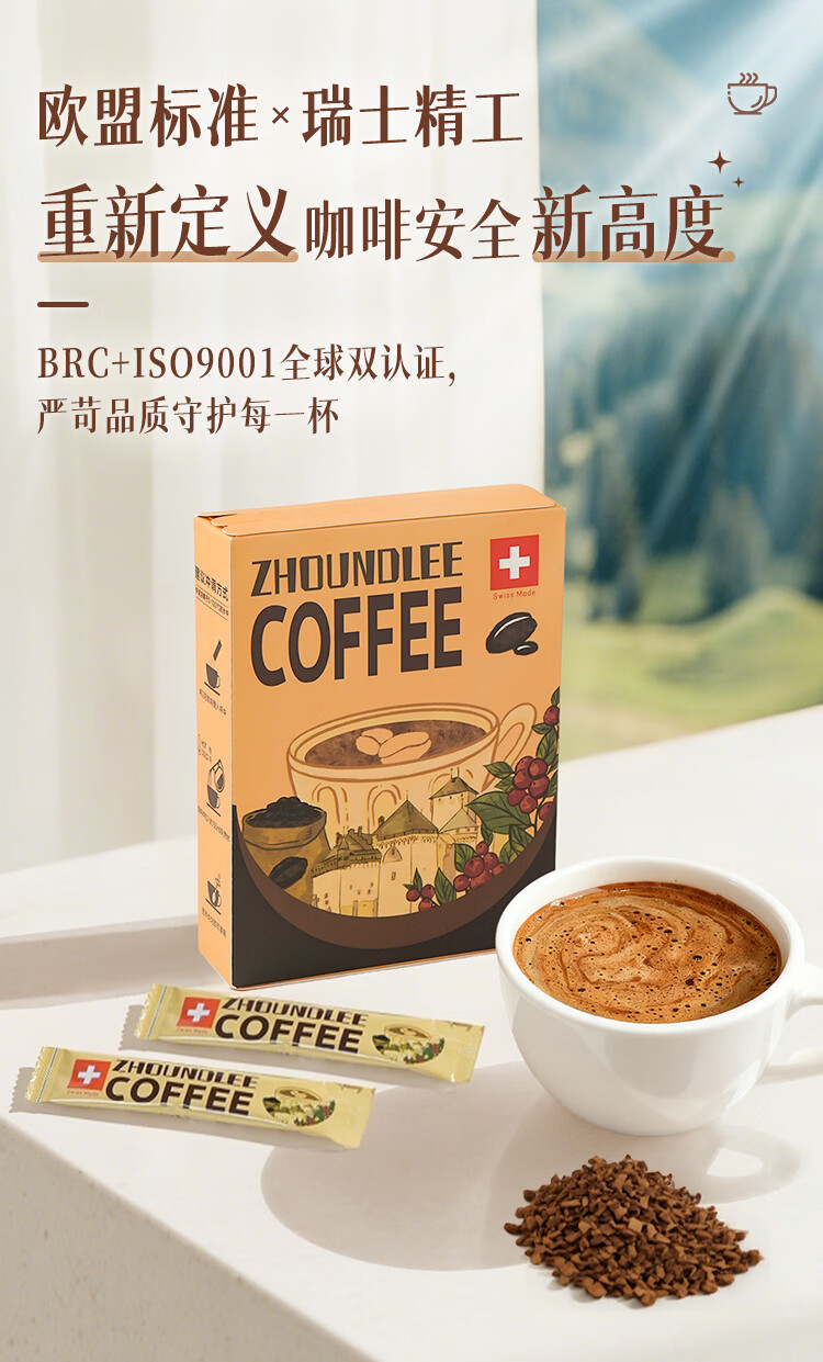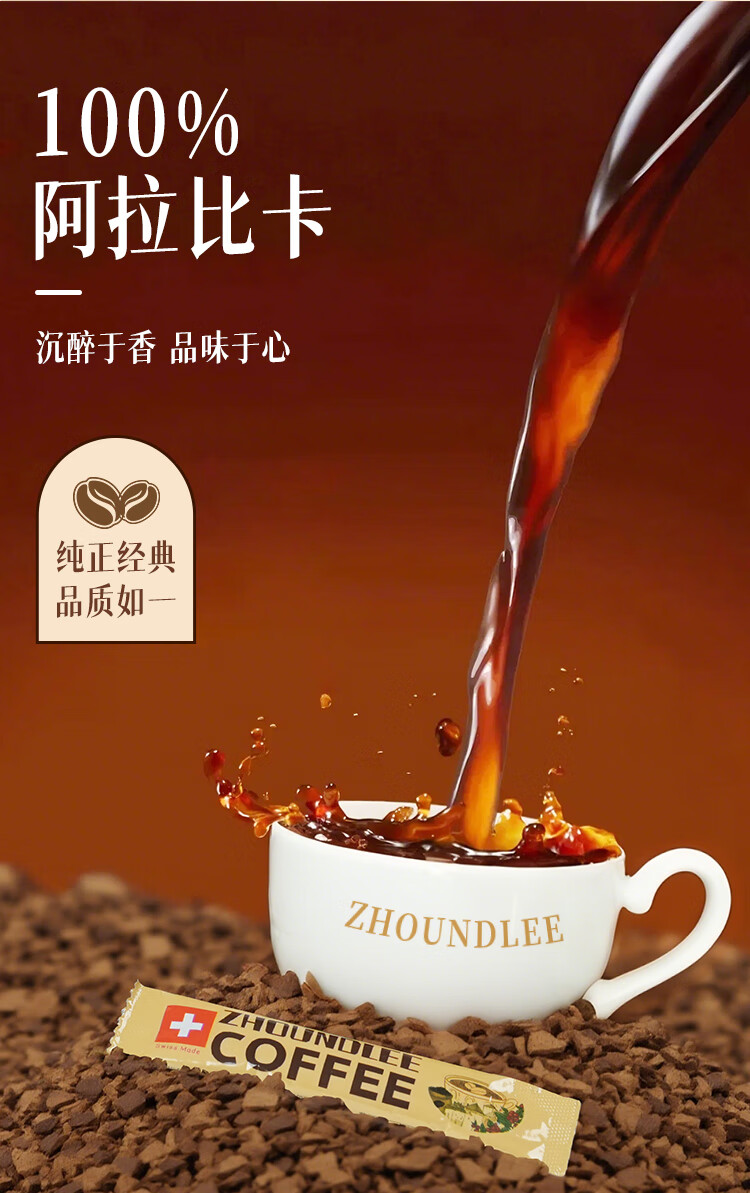 周和利瑞士进口100%阿拉比卡冻干速溶咖啡粉0添加糖美式黑咖啡 冷热即溶【2盒装】