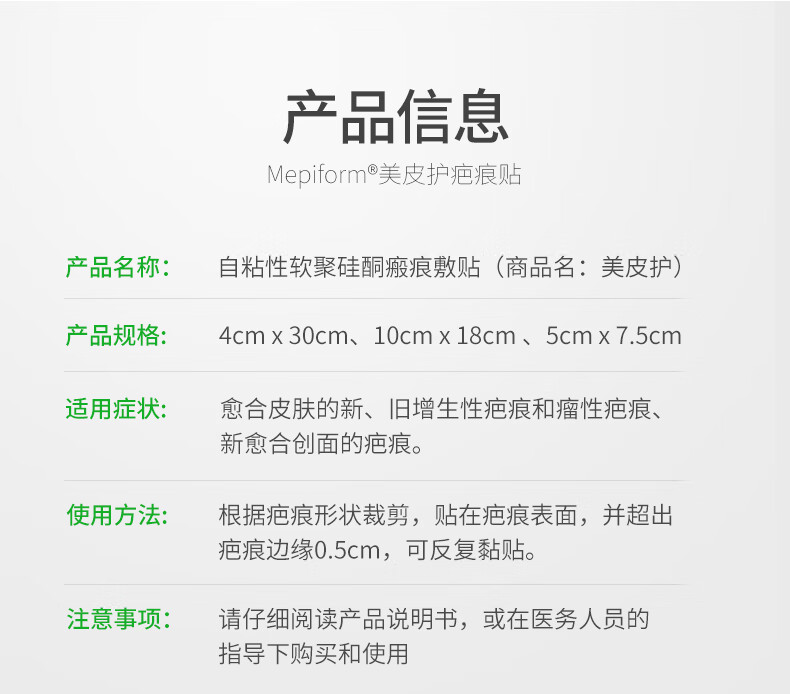 美皮护Mepiform美皮护疤痕贴祛疤痕专用剖腹产手术烧伤烫伤10*18cm