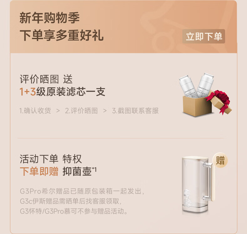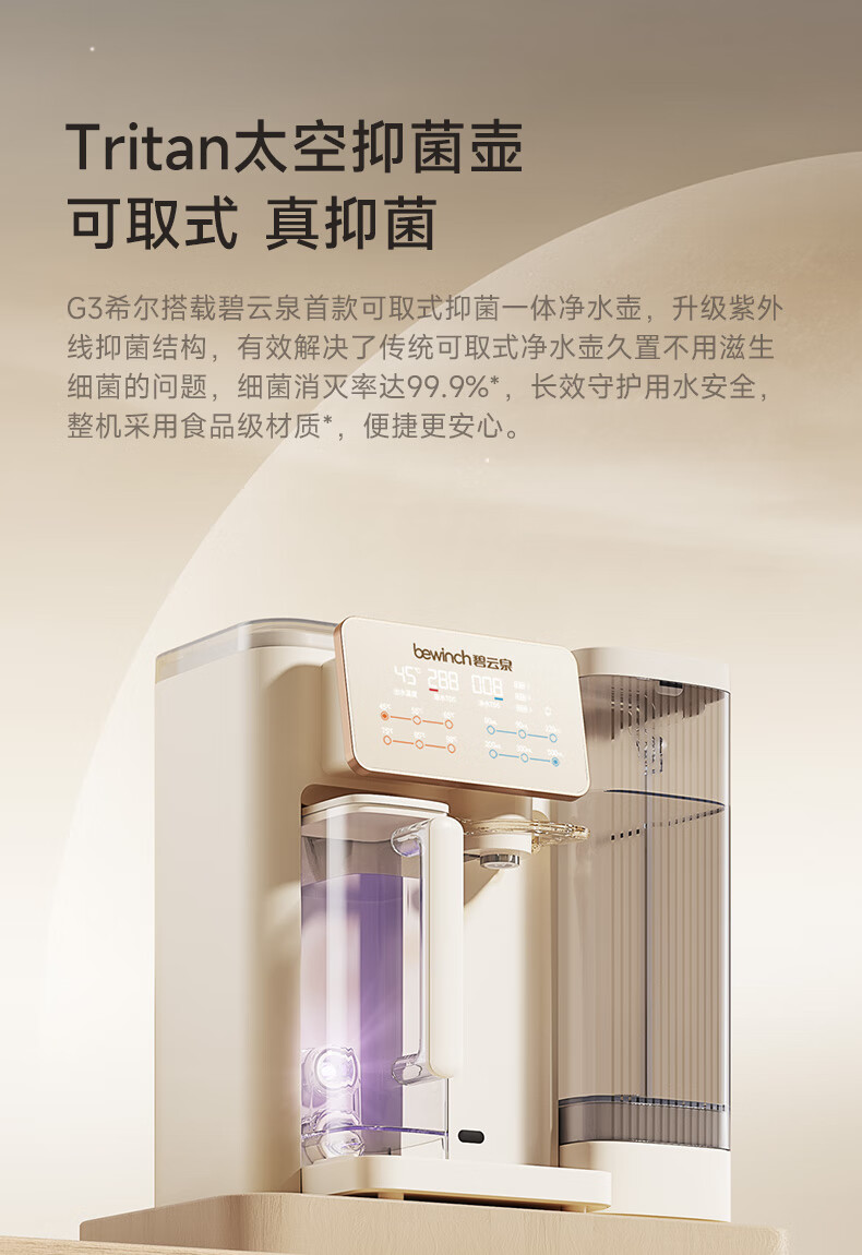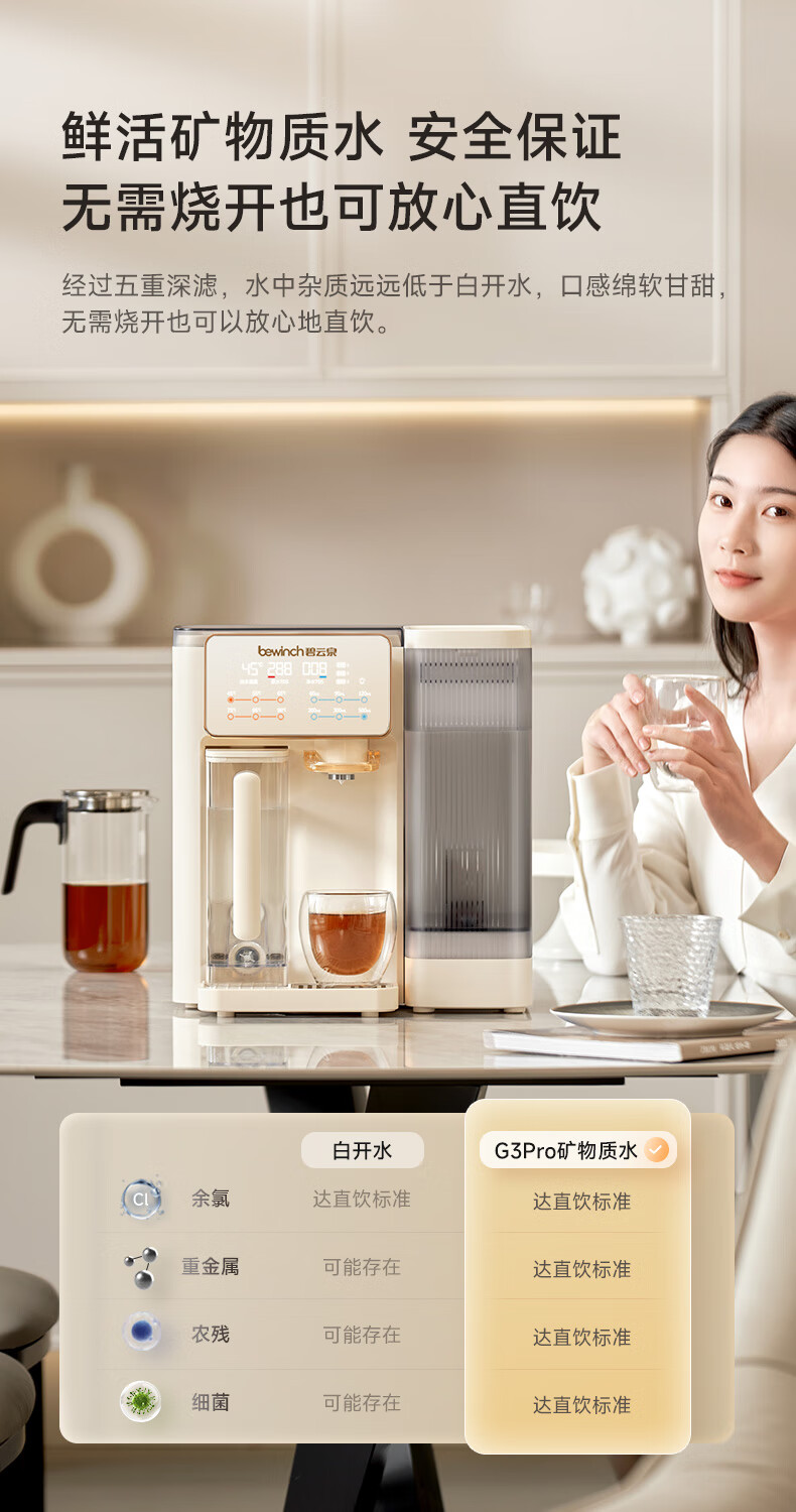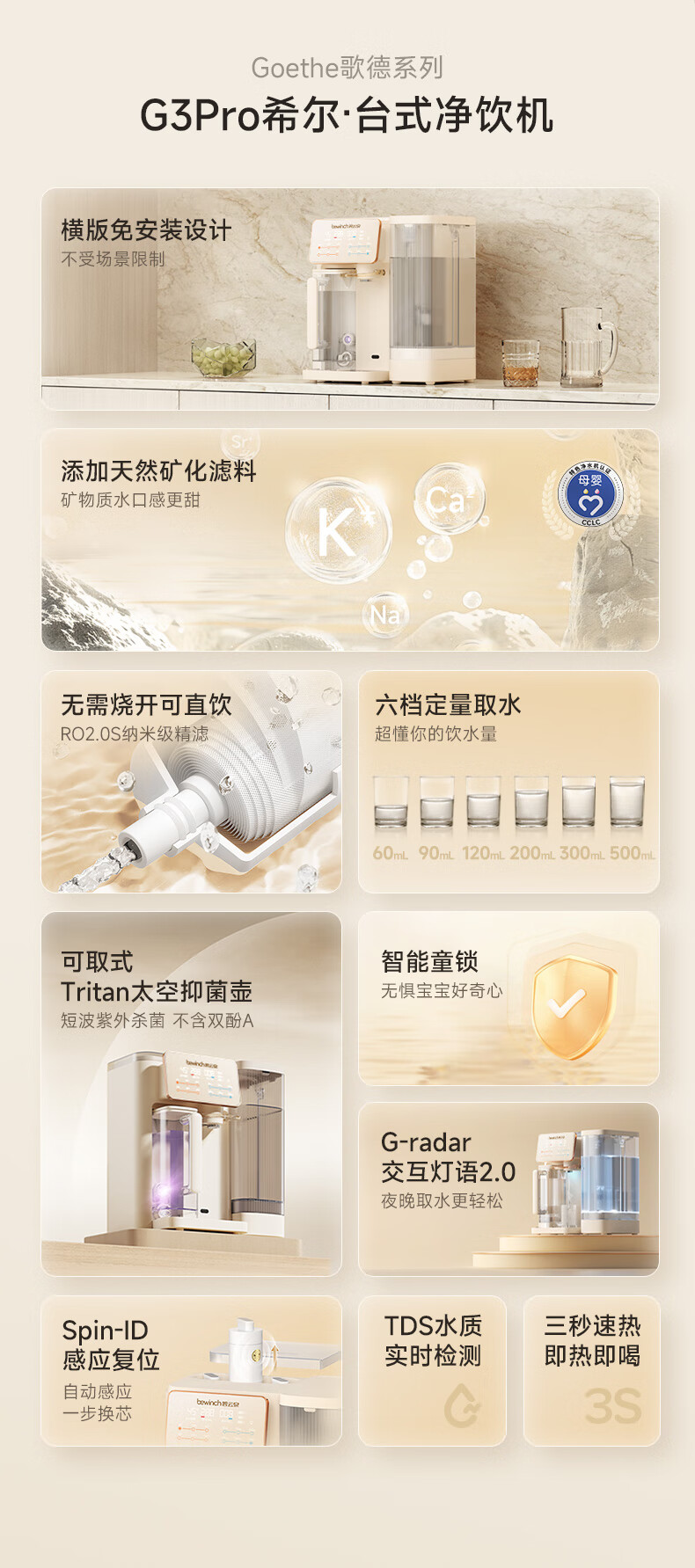 碧云泉G3矿物质净水器家用 直饮机加热RO反渗透过滤抑菌窄边免安装一体机 G3Pro-希尔: 升级版